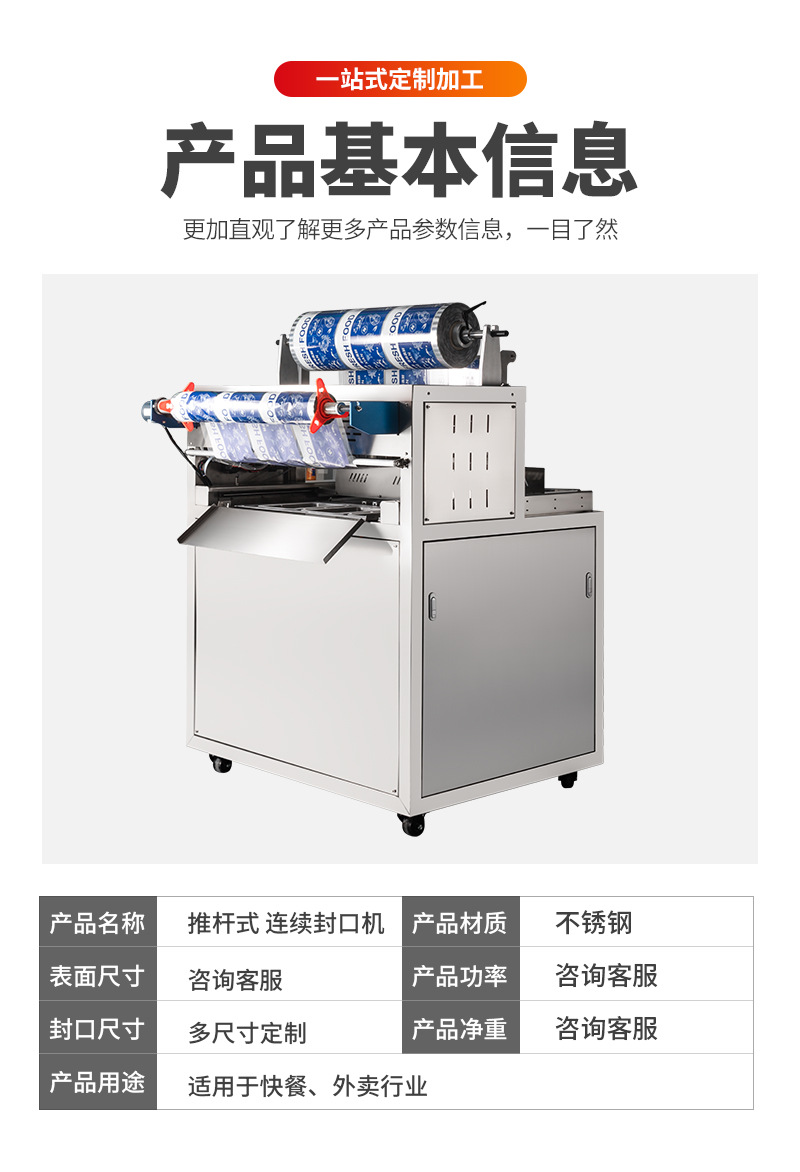 푸시로드 연속 밀봉기, 케이터링 신선도 유지 박스 라미네이팅 밀봉기, 소형 반자동 진공 포장기 공급스토어 가기