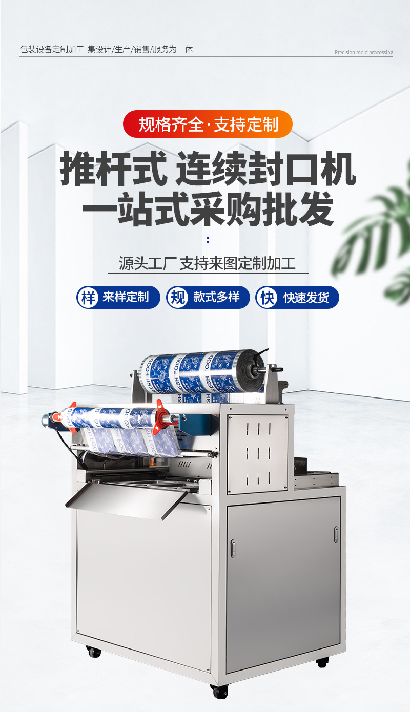 푸시로드 연속 밀봉기, 케이터링 신선도 유지 박스 라미네이팅 밀봉기, 소형 반자동 진공 포장기 공급