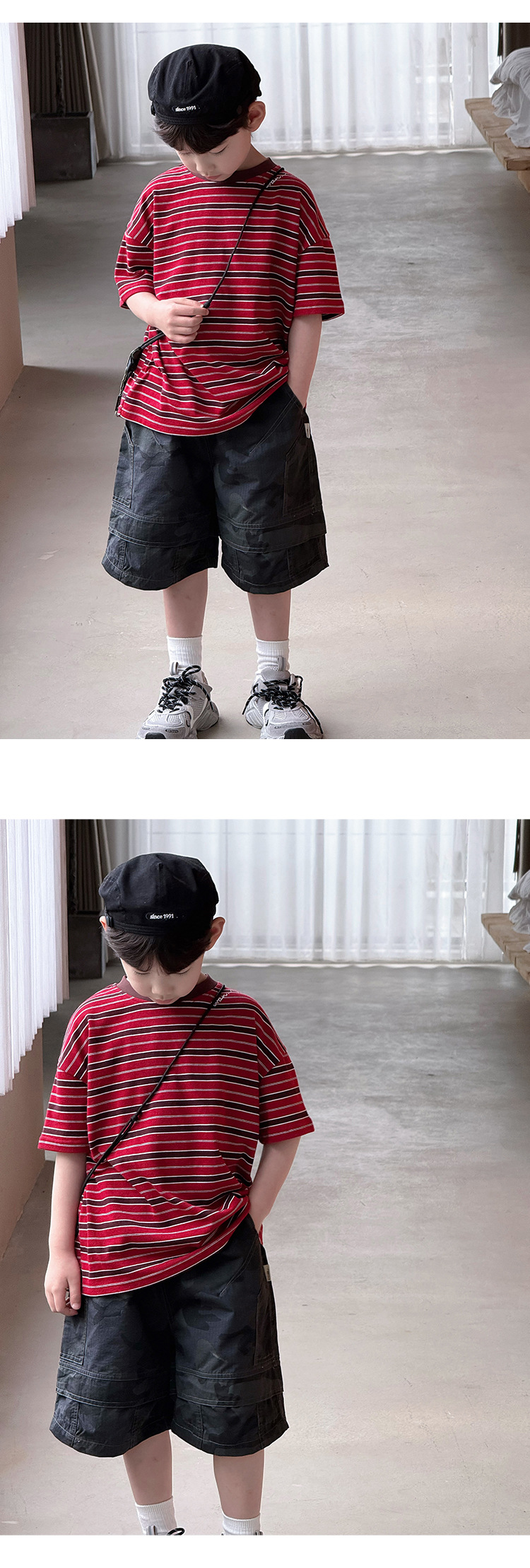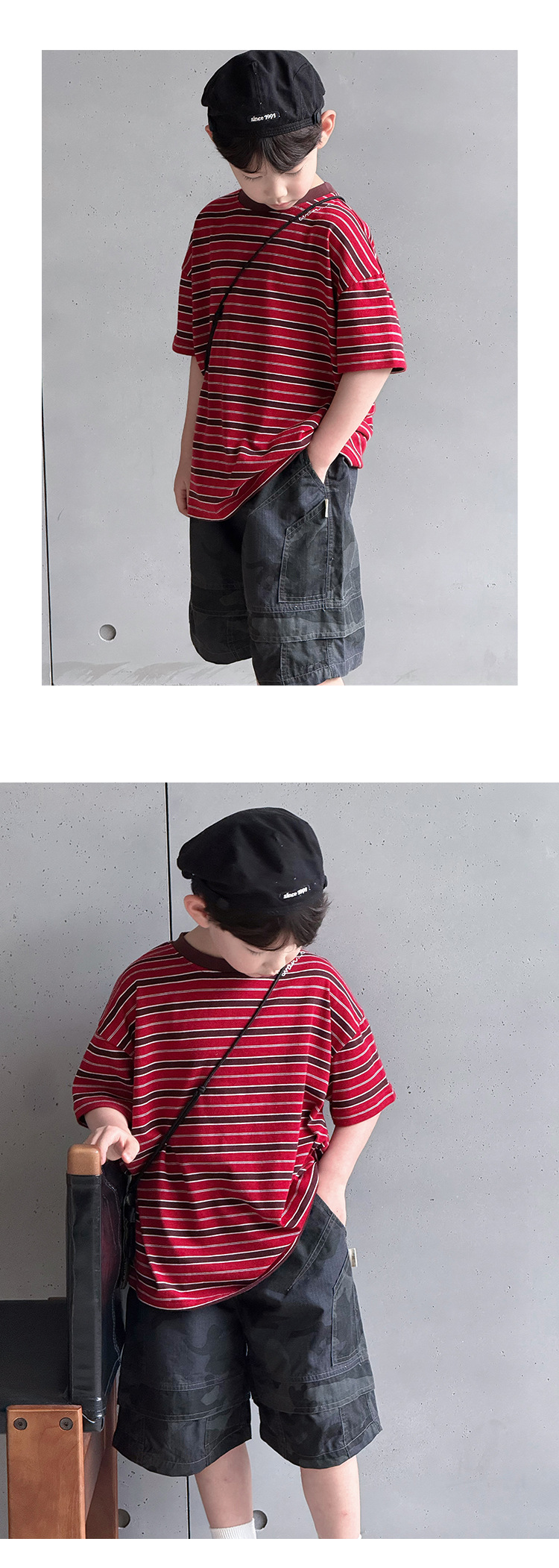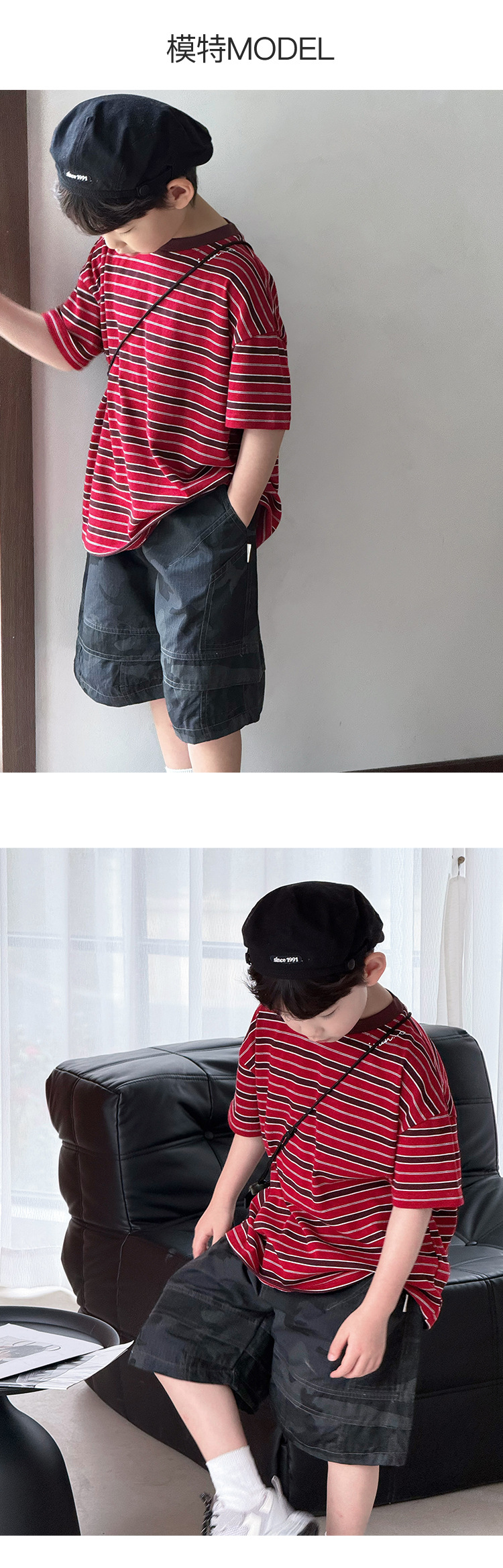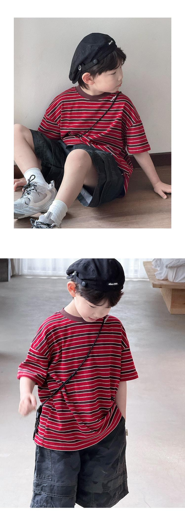 여름 신형 한국식 올매치 중견 어린이 여름착용 스트라이프 반팔 티셔츠 아동복 2025 소년 소녀를위한 트렌디 쿨탑스토어 가기