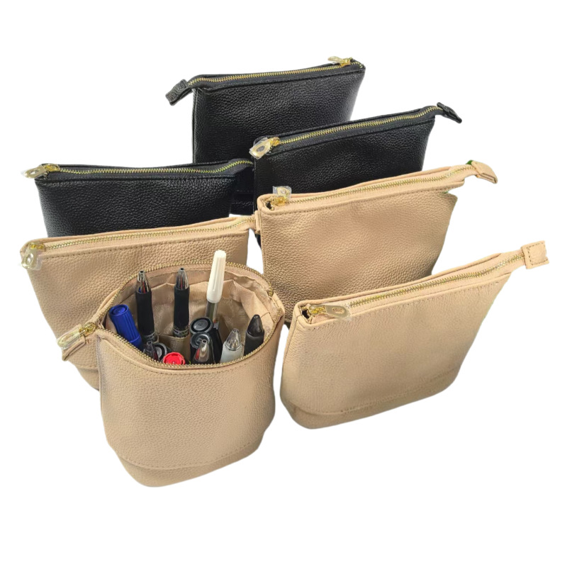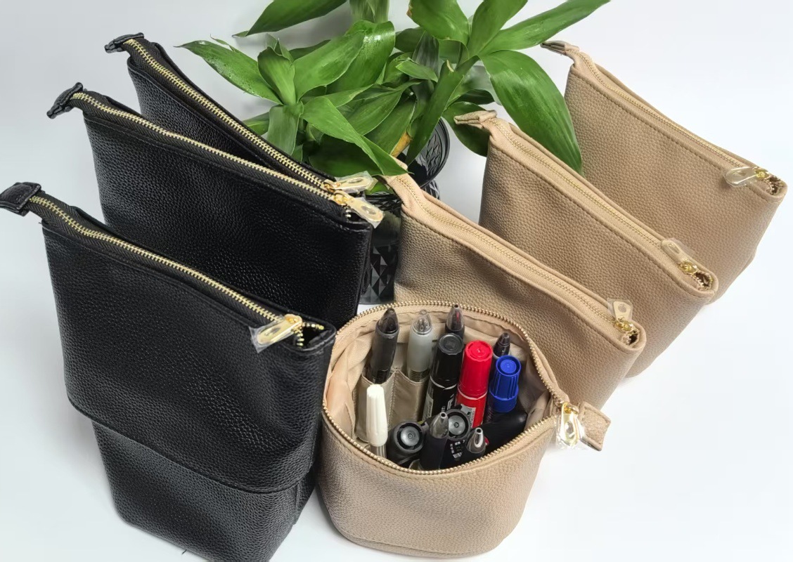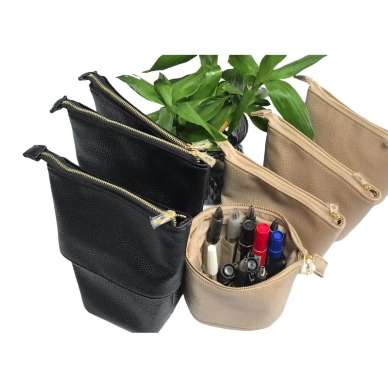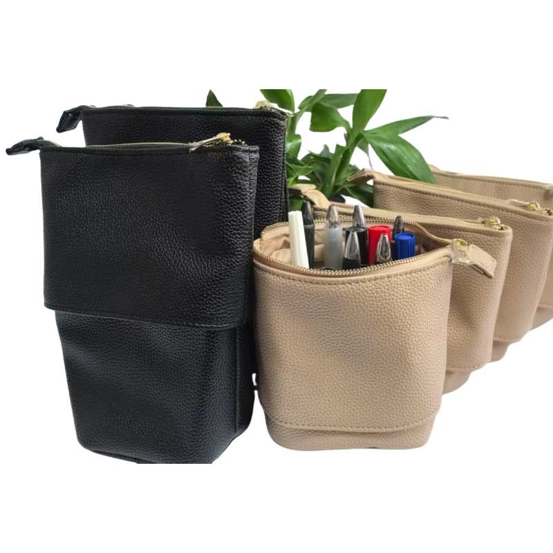 한국식 가죽 연필 가방 보관 가방 대용량 연필 가방 PU 학생 문구 가방 단색 간단한 가죽 연필 커버 연필스토어 가기