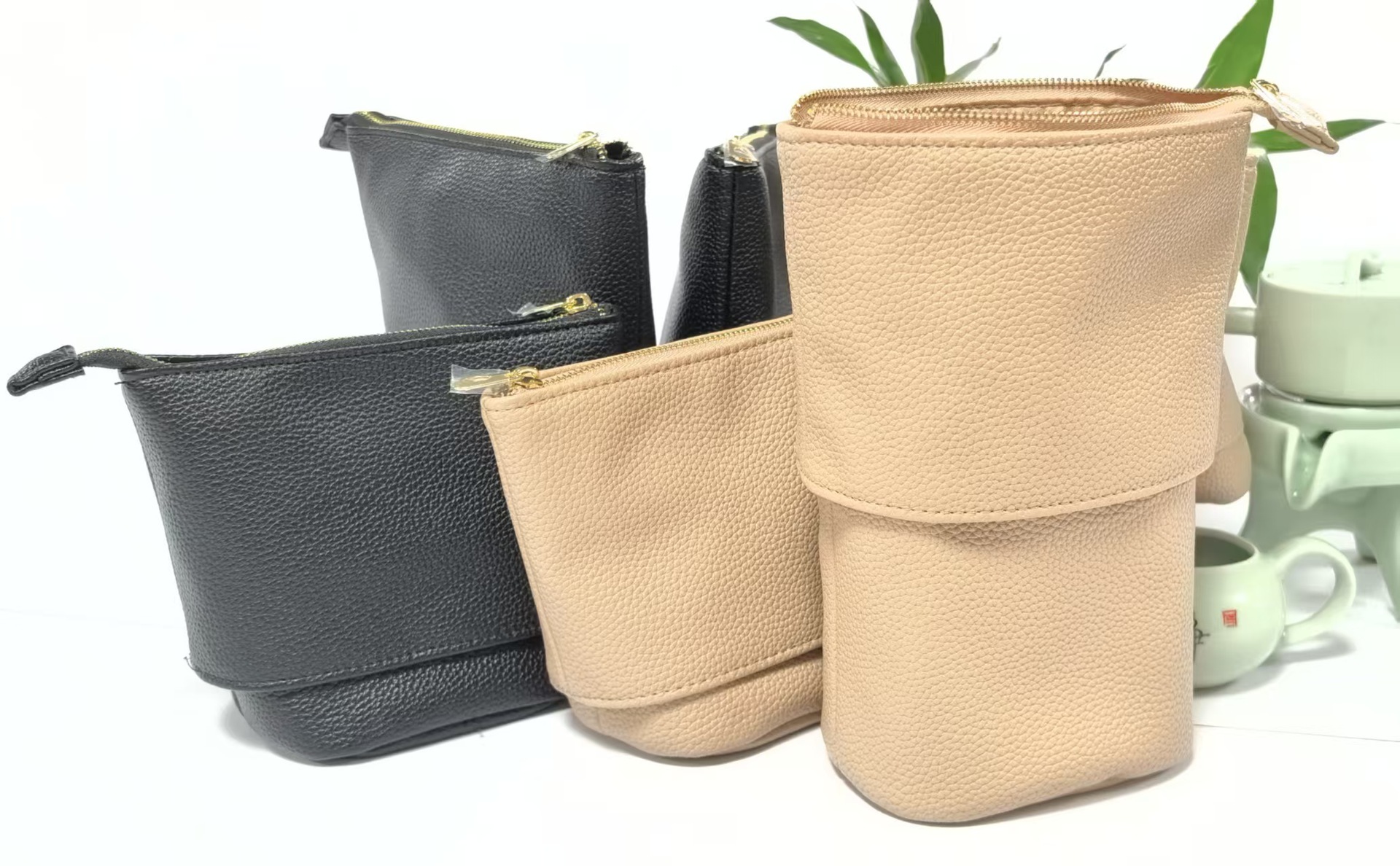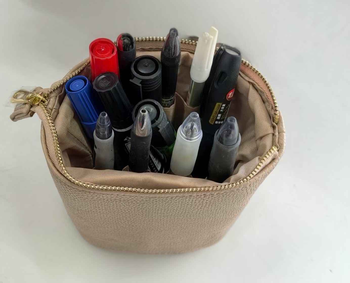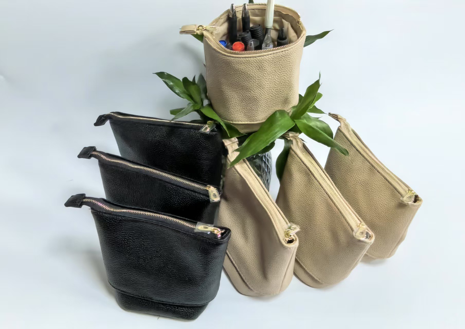한국식 가죽 연필 가방 보관 가방 대용량 연필 가방 PU 학생 문구 가방 단색 간단한 가죽 연필 커버 연필스토어 가기