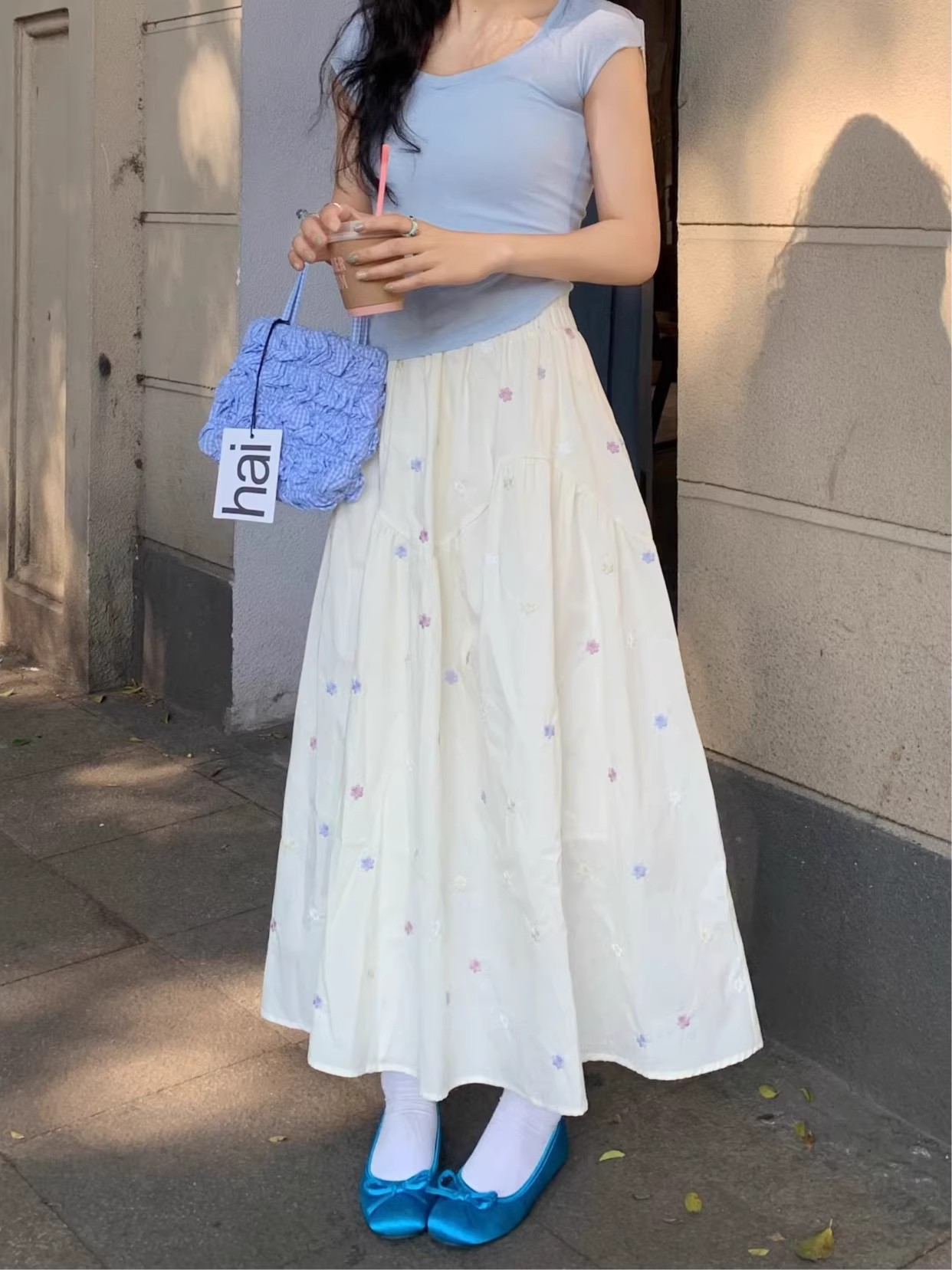 높은 허리 Dape 꽃 치마 여자 2025 여름 새로운 달콤한 A 라인 스커트 중간 길이의 짧은 긴 치마스토어 가기