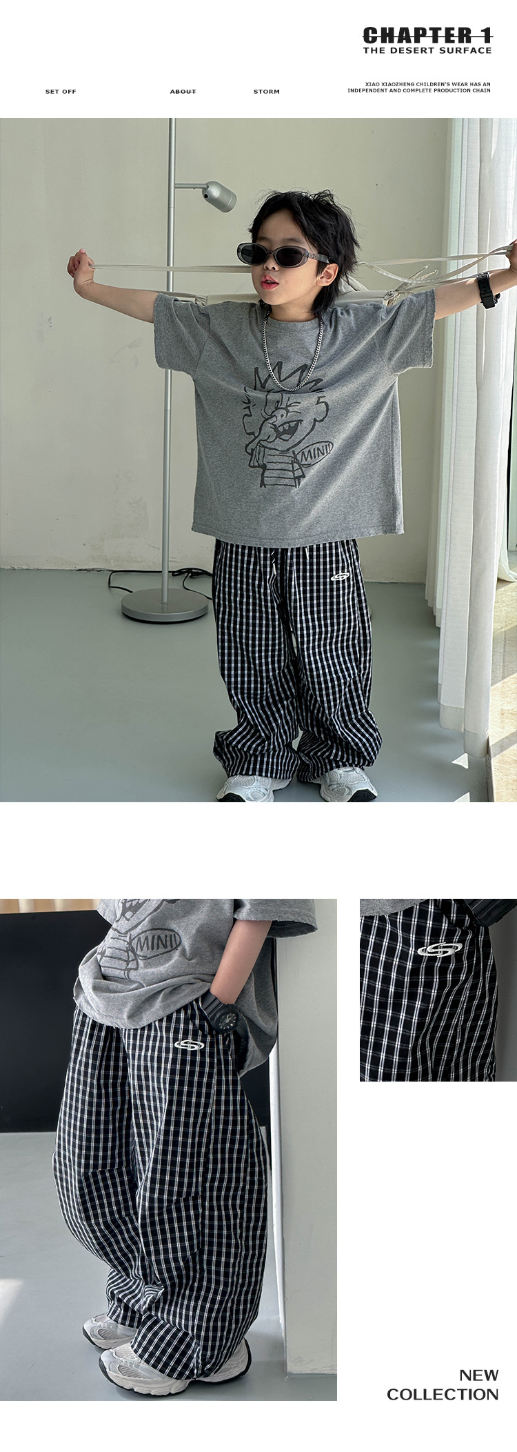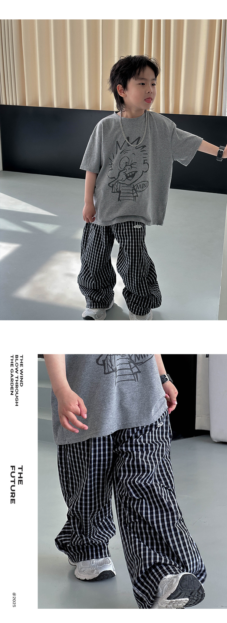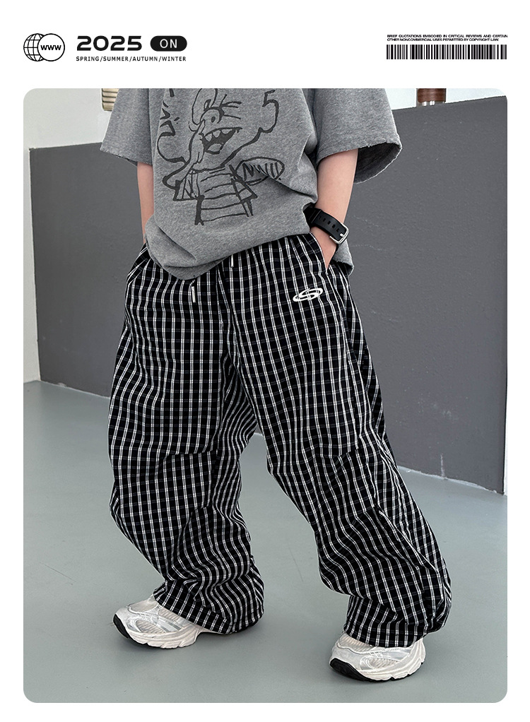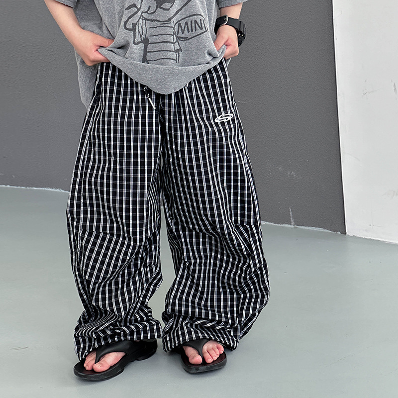 아동 패션 와이드 팬츠 2025 여름 신작 남아 한국식 체크 무늬 스트레이트 팬츠 중대형 아동용 다용도 여름 패션 트렌드