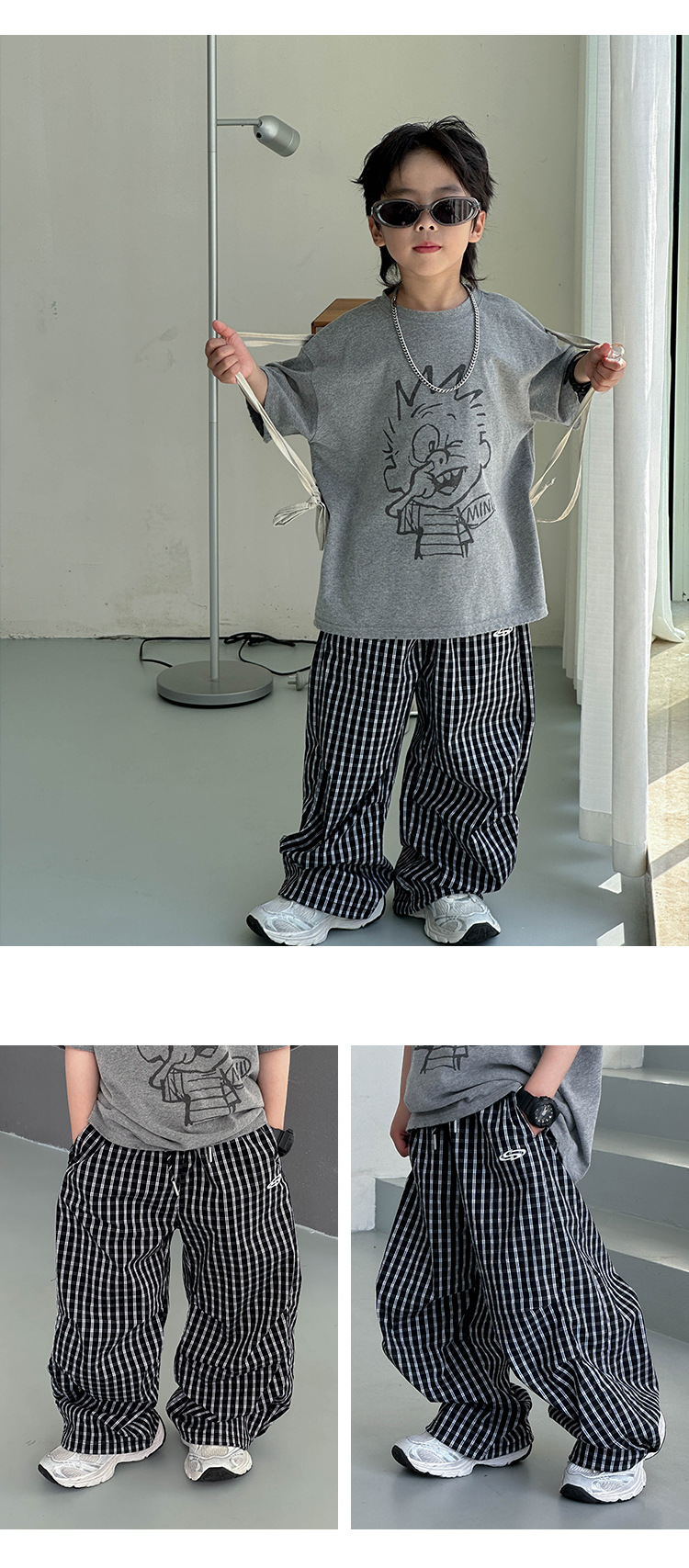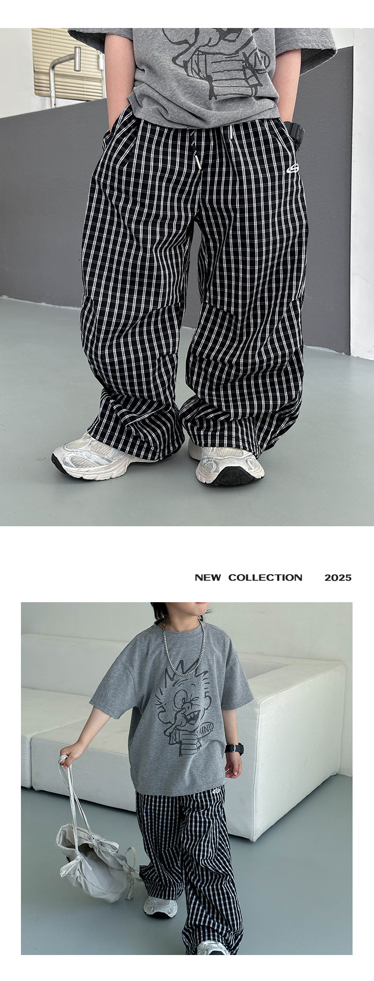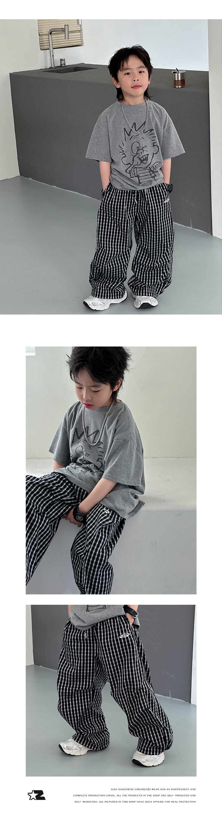 아동 패션 와이드 팬츠 2025 여름 신작 남아 한국식 체크 무늬 스트레이트 팬츠 중대형 아동용 다용도 여름 패션 트렌드