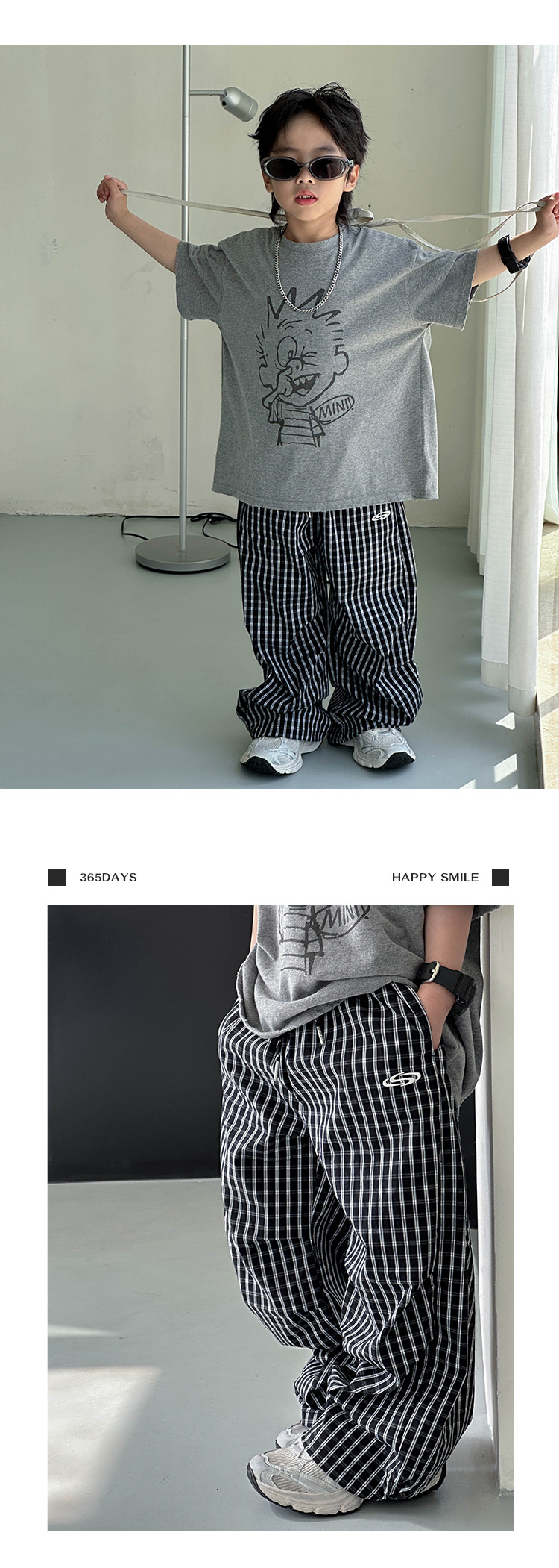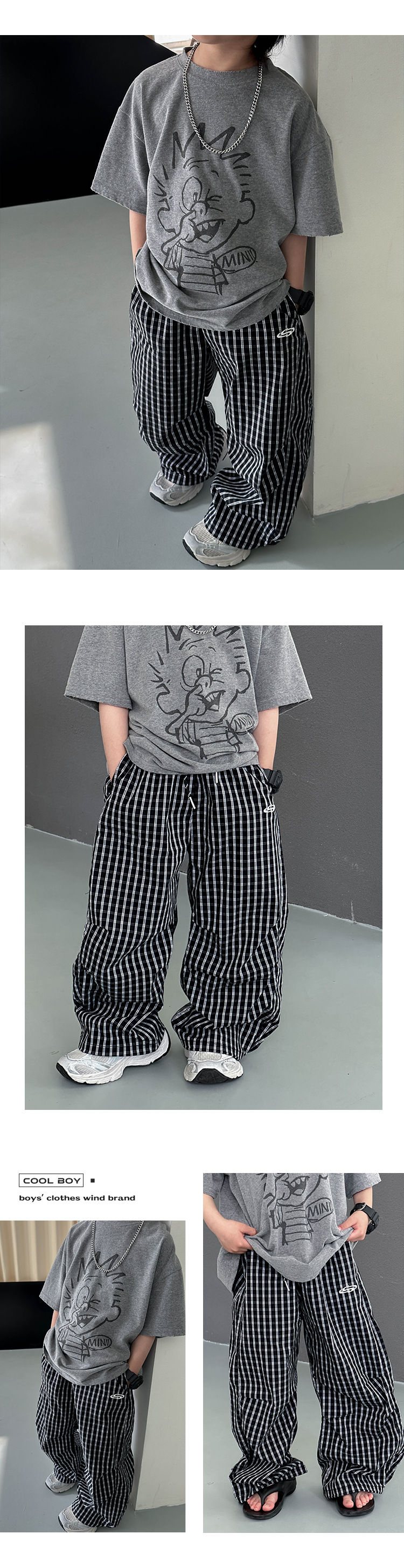 아동 패션 와이드 팬츠 2025 여름 신작 남아 한국식 체크 무늬 스트레이트 팬츠 중대형 아동용 다용도 여름 패션 트렌드스토어 가기