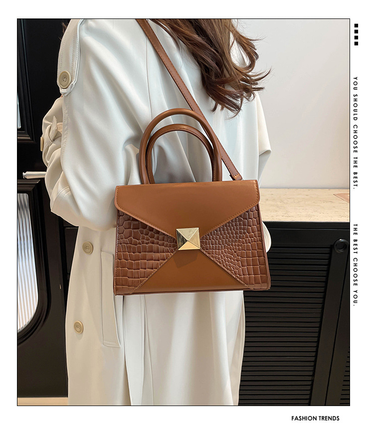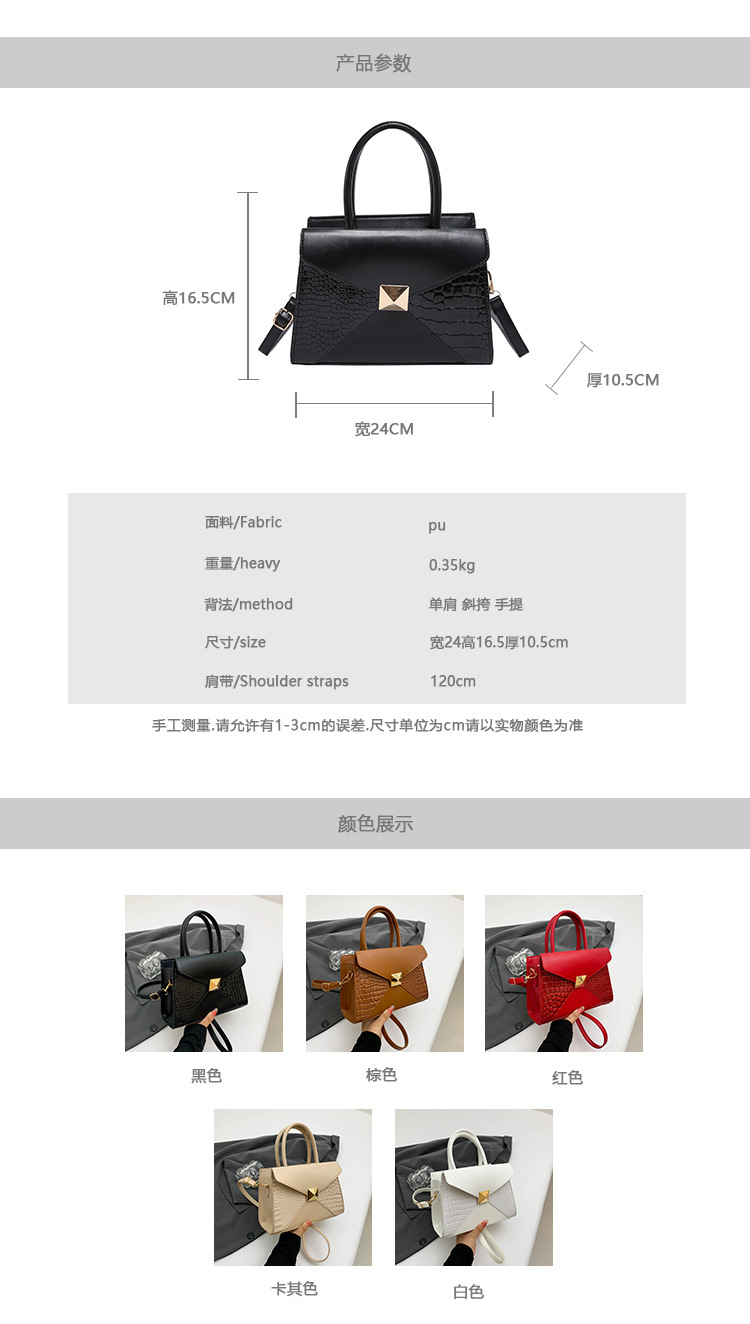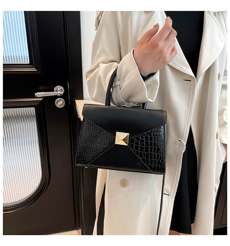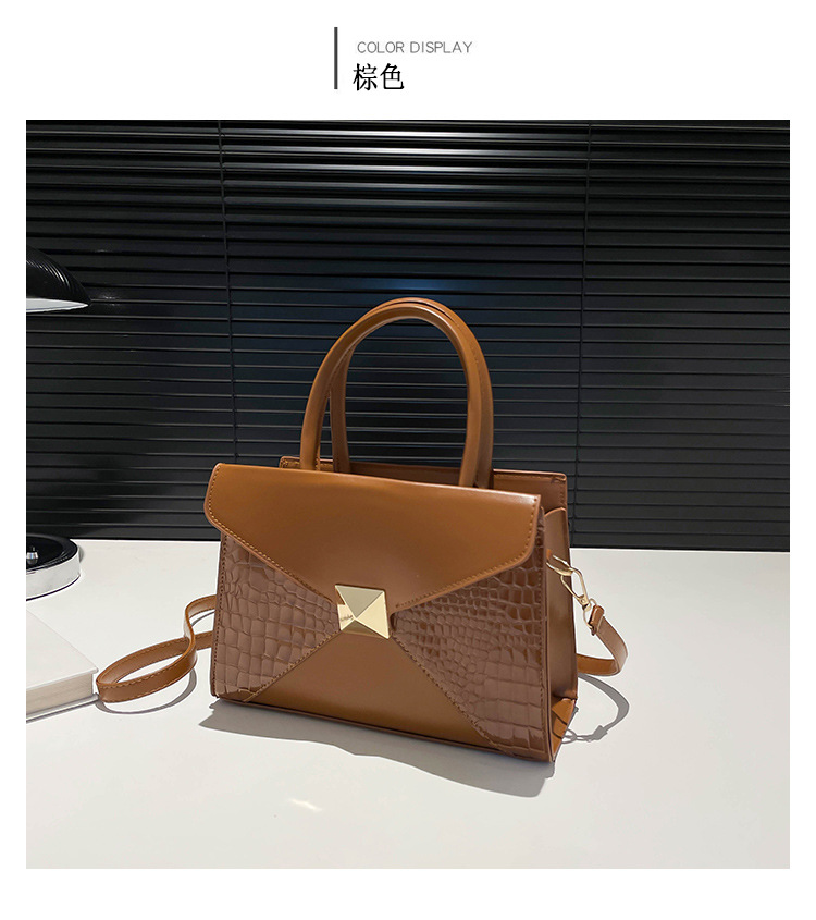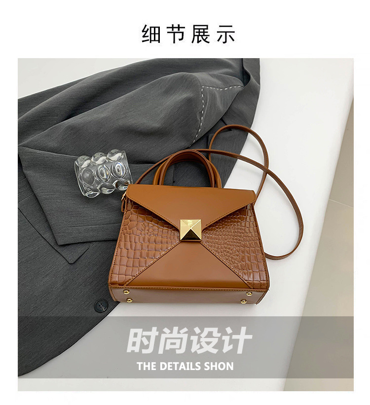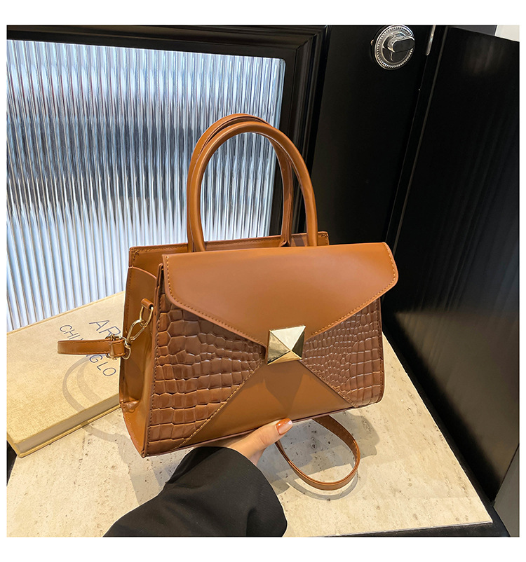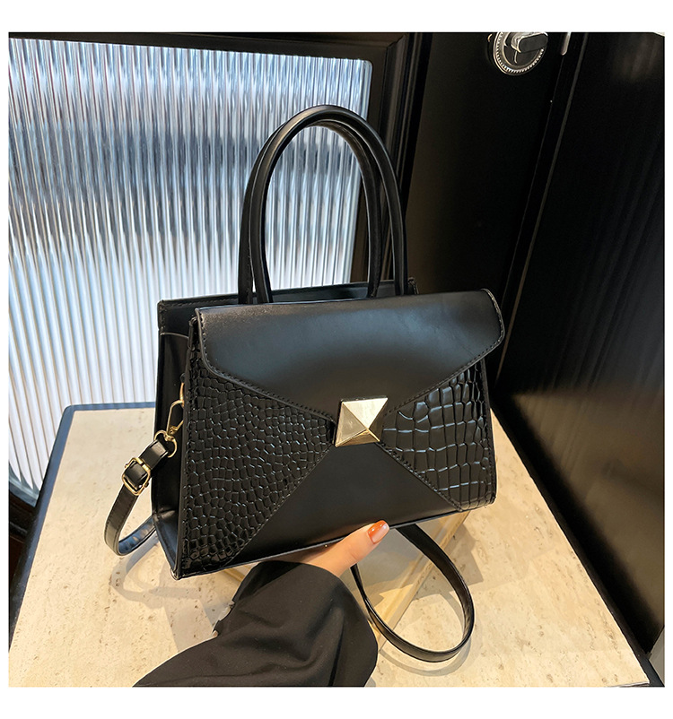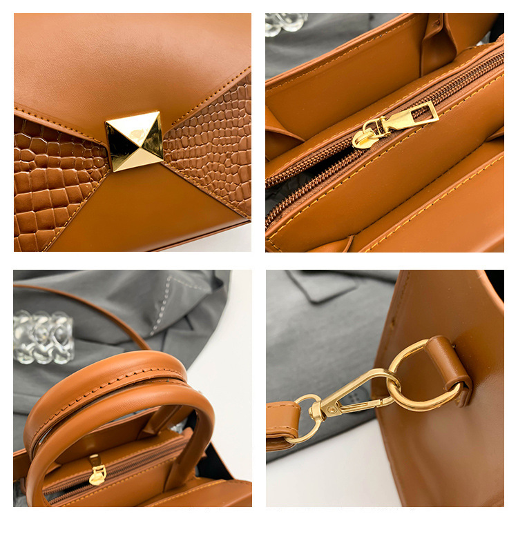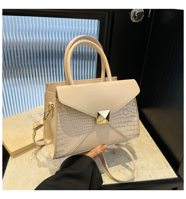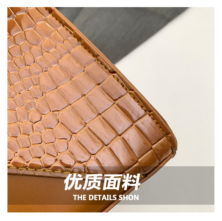패션 바느질 대용량 통근 2025 새로운 단색 악어 스타일 가을 캐주얼 어깨 크로스 바디 핸드백