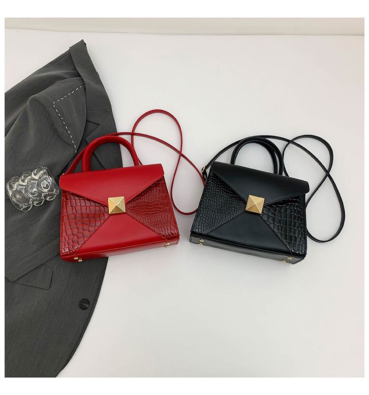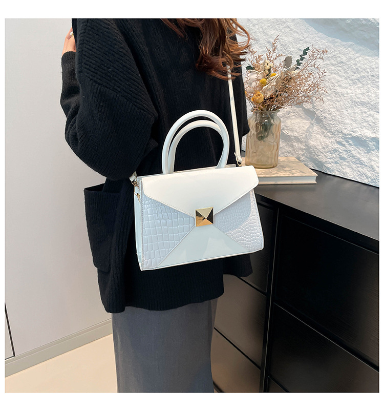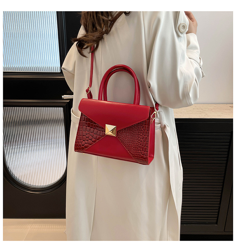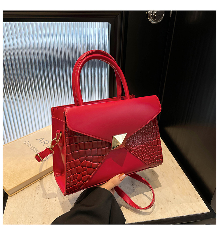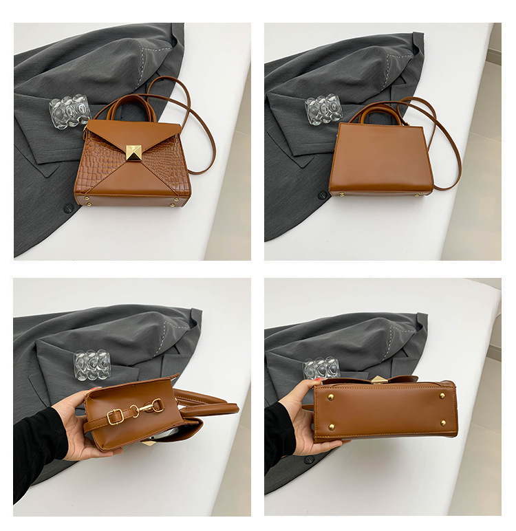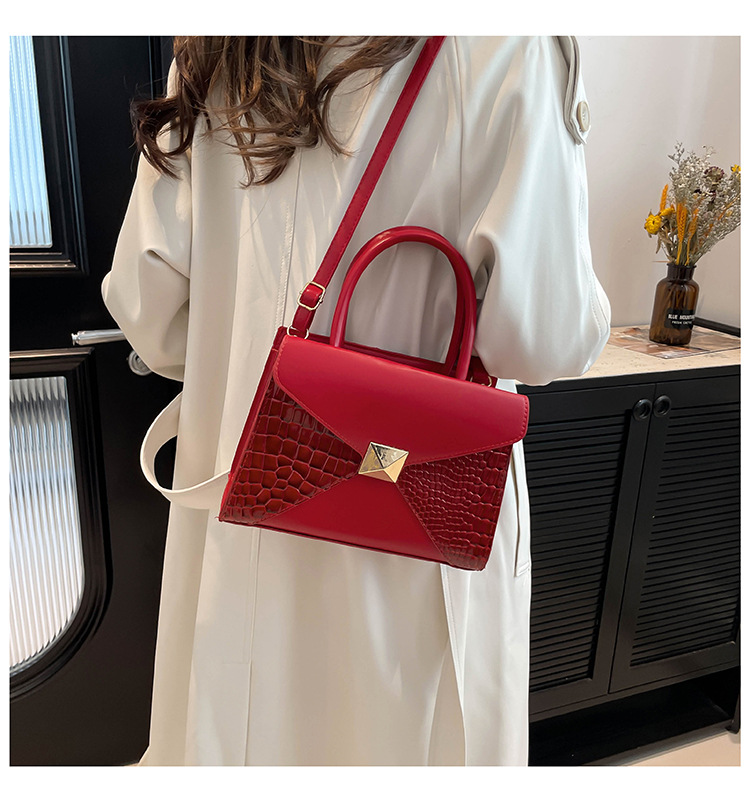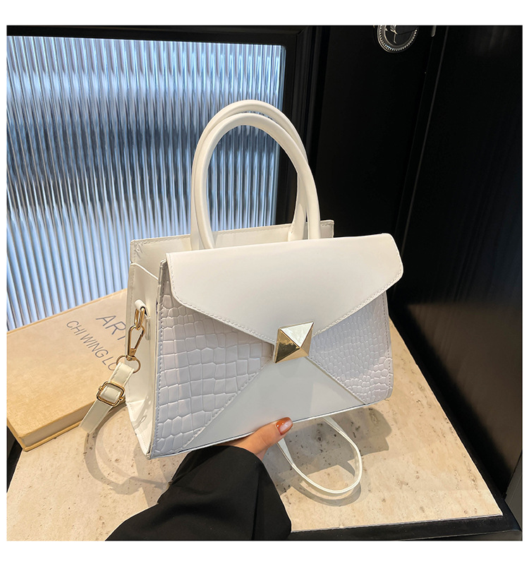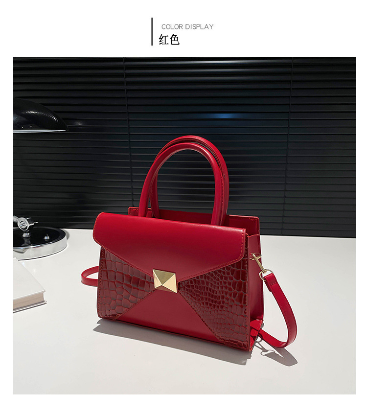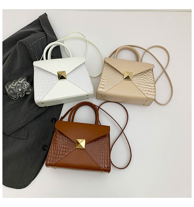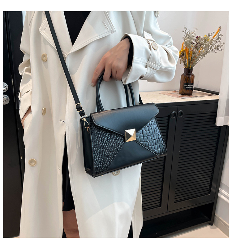 패션 바느질 대용량 통근 2025 새로운 단색 악어 스타일 가을 캐주얼 어깨 크로스 바디 핸드백