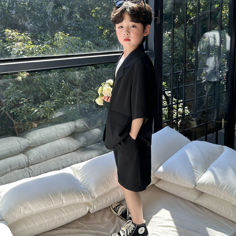 소년 정장 여름 새로운 얇은 캐주얼 소년 아기 유행 한국 스타일 검은 어린이 반팔 재킷