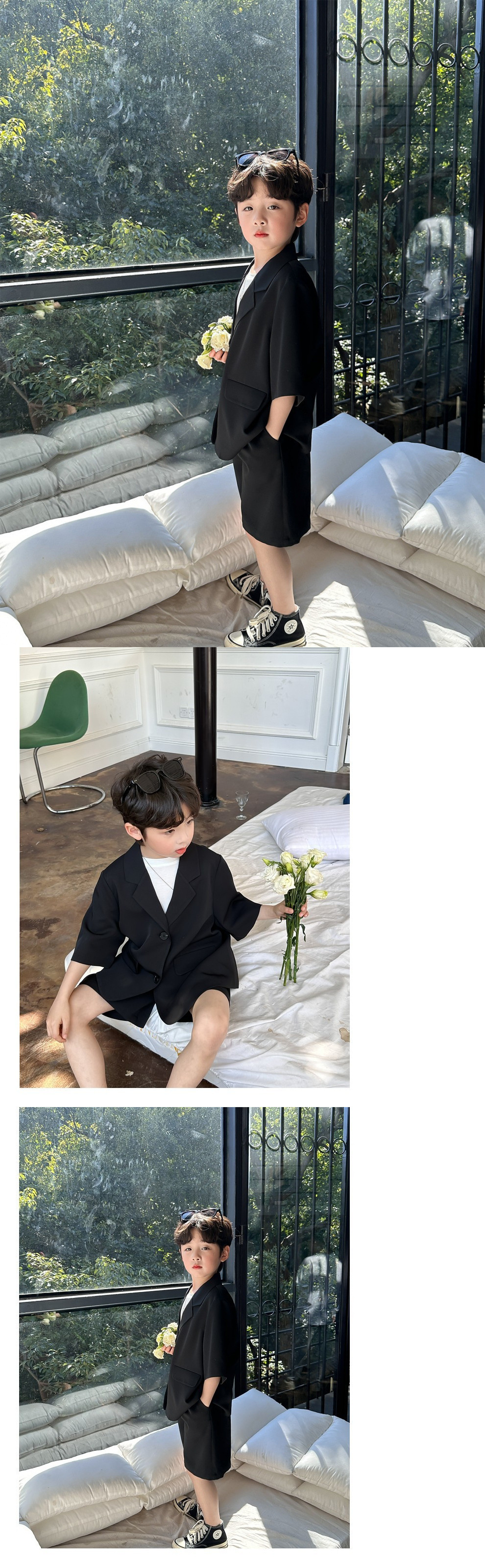 소년 정장 여름 새로운 얇은 캐주얼 소년 아기 유행 한국 스타일 검은 어린이 반팔 재킷스토어 가기