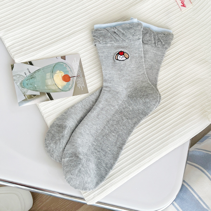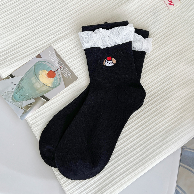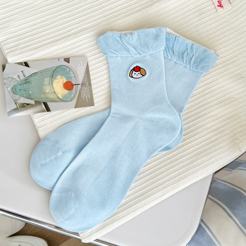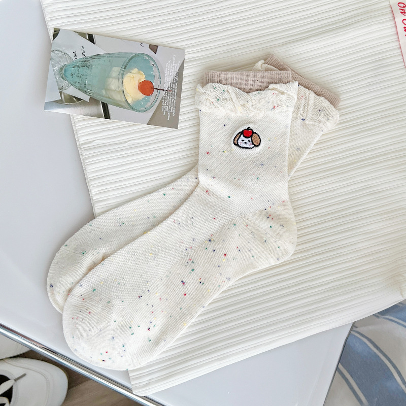 강아지 자수 양말 여성용 봄 여름 귀여운 만화 메쉬 여름 방취 중간 길이 양말 인스 트렌드 일본 스타일 짧은 양말