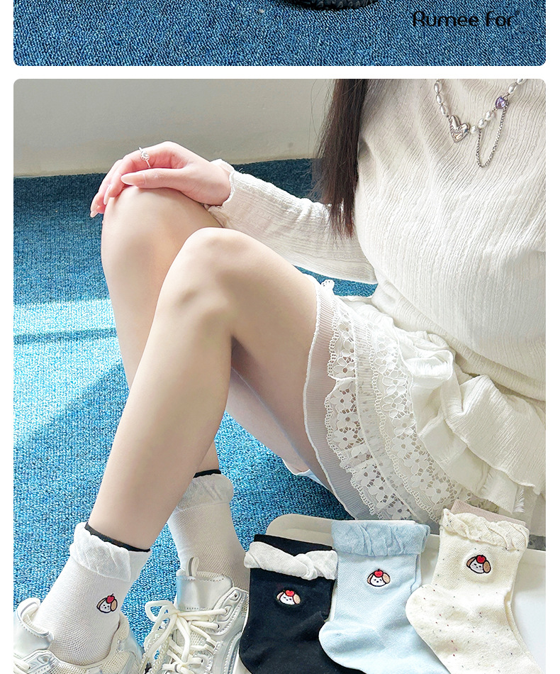 강아지 자수 양말 여성용 봄 여름 귀여운 만화 메쉬 여름 방취 중간 길이 양말 인스 트렌드 일본 스타일 짧은 양말스토어 가기