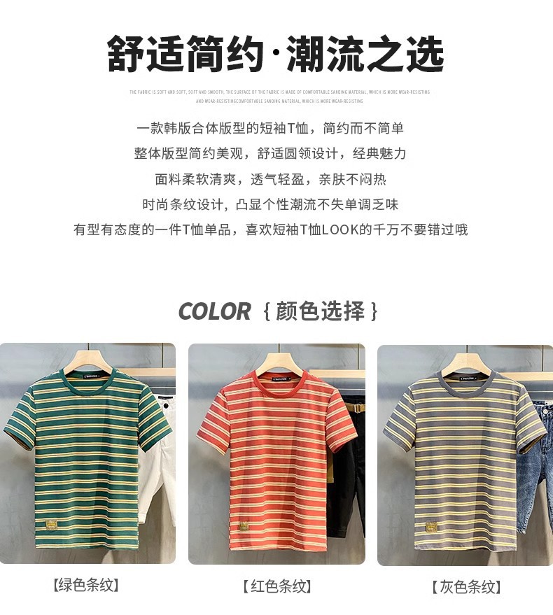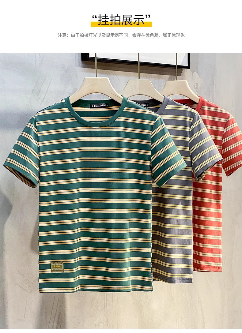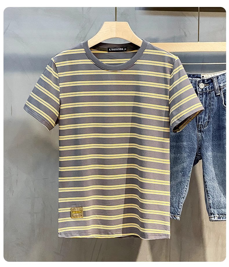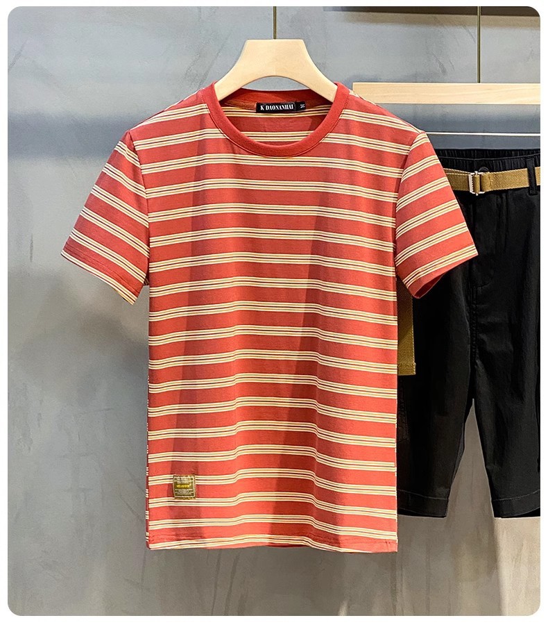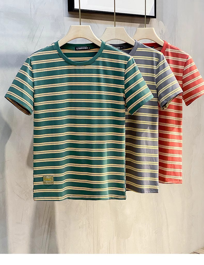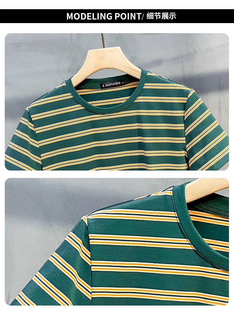 남성용 반팔 티셔츠 2024 여름 신상 하이 엔드 라운드 넥 가로 줄무늬 티셔츠 트렌디 브랜드 반팔 탑스토어 가기