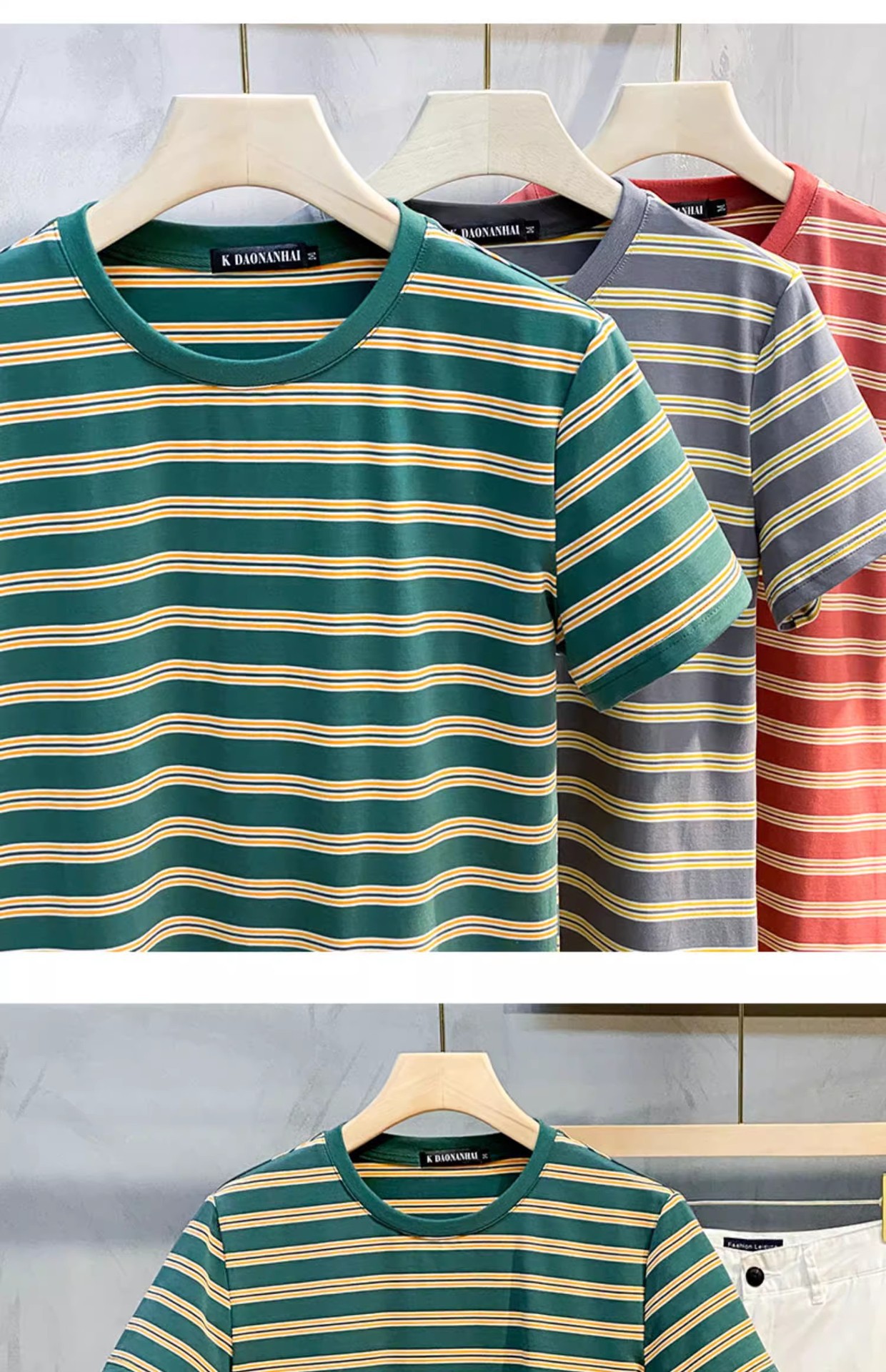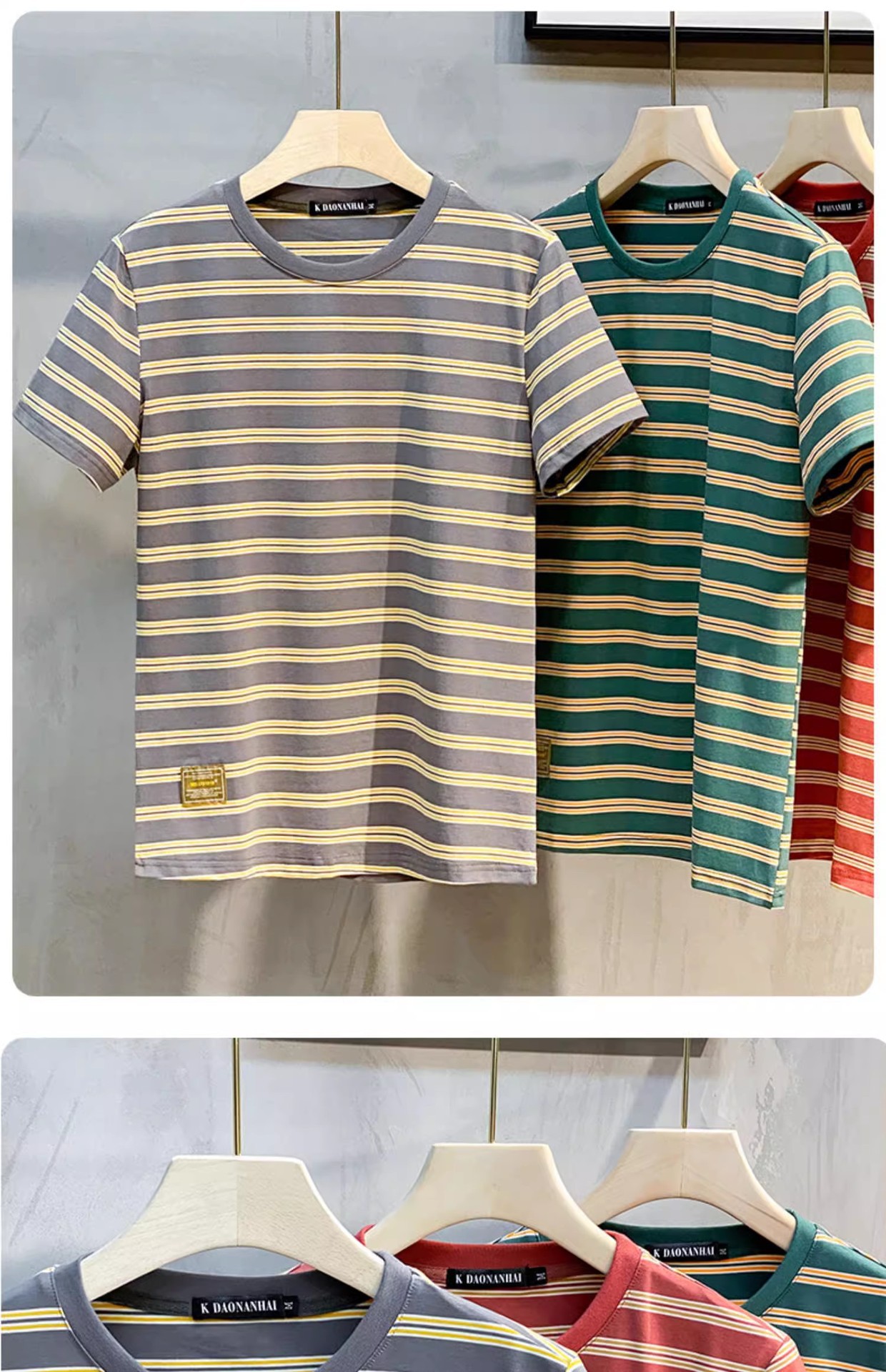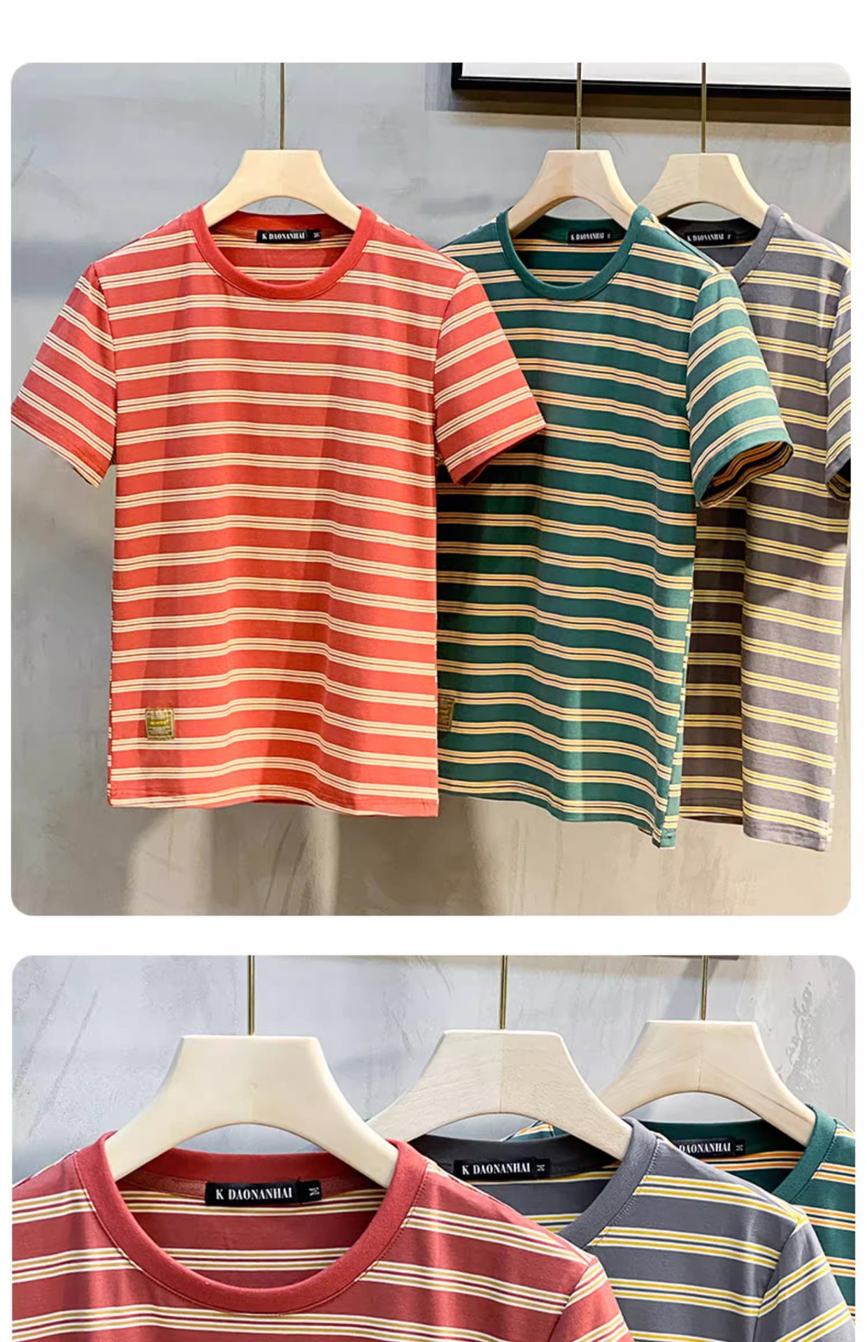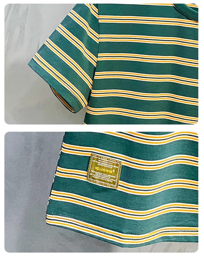 남성용 반팔 티셔츠 2024 여름 신상 하이 엔드 라운드 넥 가로 줄무늬 티셔츠 트렌디 브랜드 반팔 탑스토어 가기