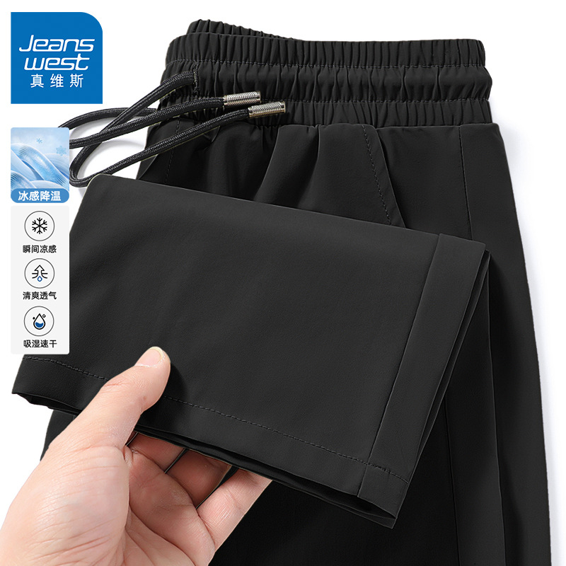 남성용 여름 아이스 실크 바지 얇은 느슨한 스트레이트 드롭 오프 바지 느슨한 허리 퀵 드라이 스포츠 캐주얼 바지스토어 가기