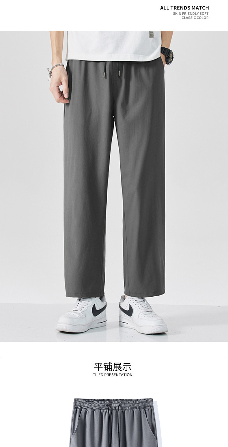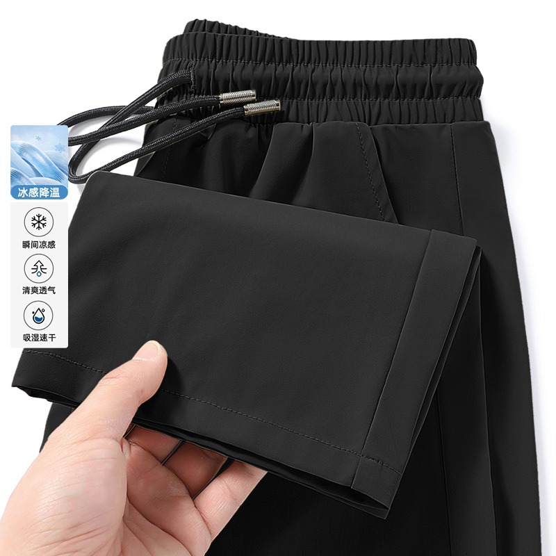 남성용 여름 아이스 실크 바지 얇은 느슨한 스트레이트 드롭 오프 바지 느슨한 허리 퀵 드라이 스포츠 캐주얼 바지