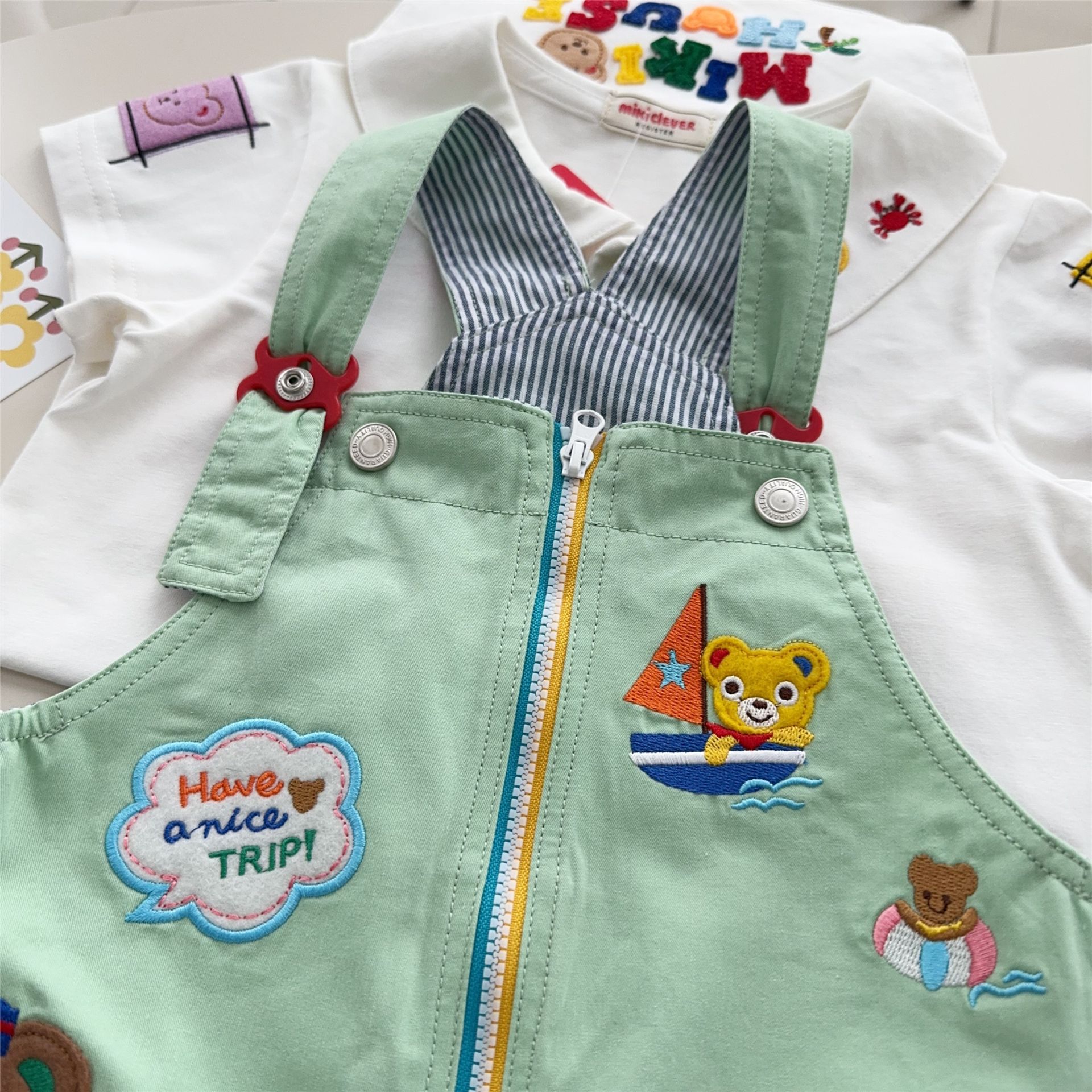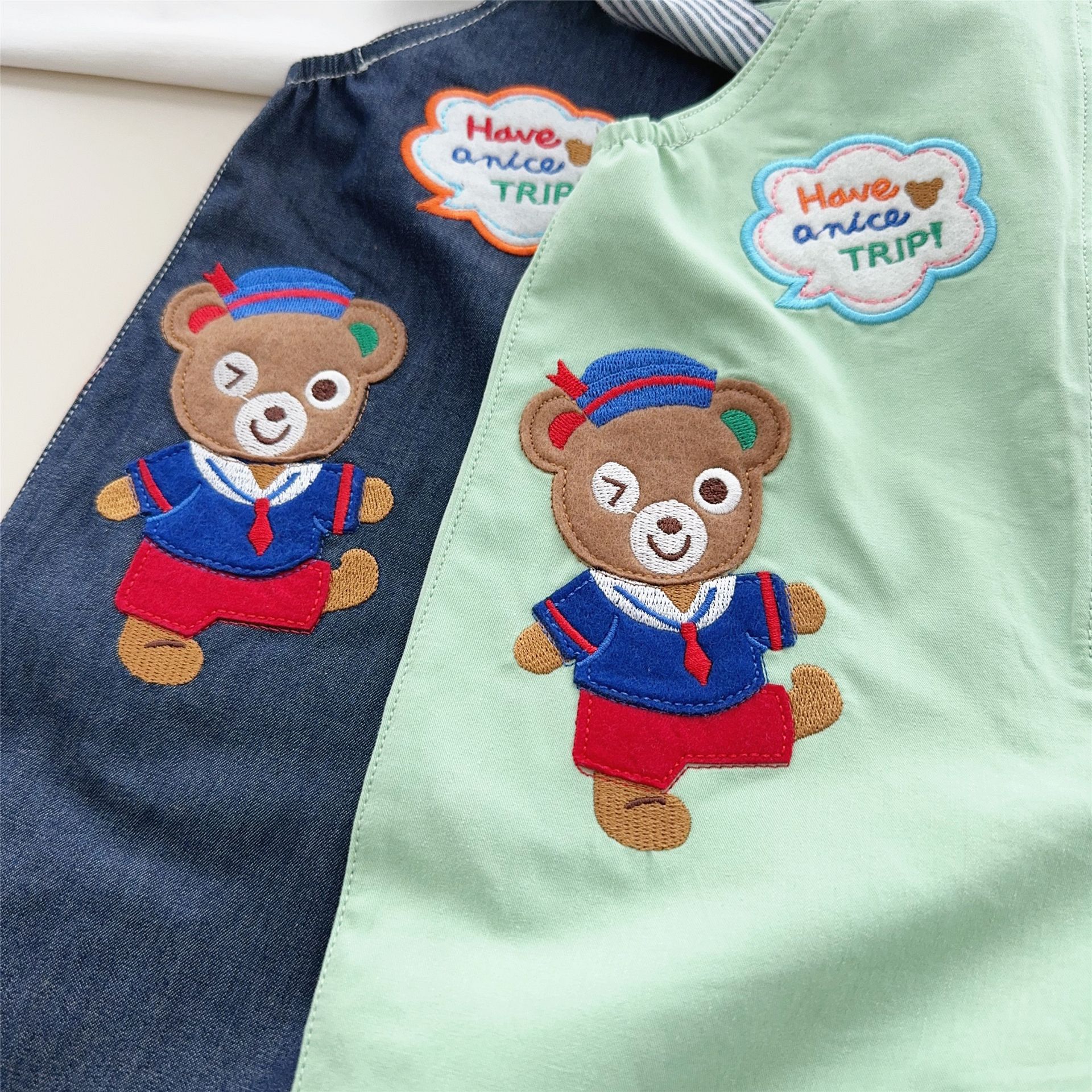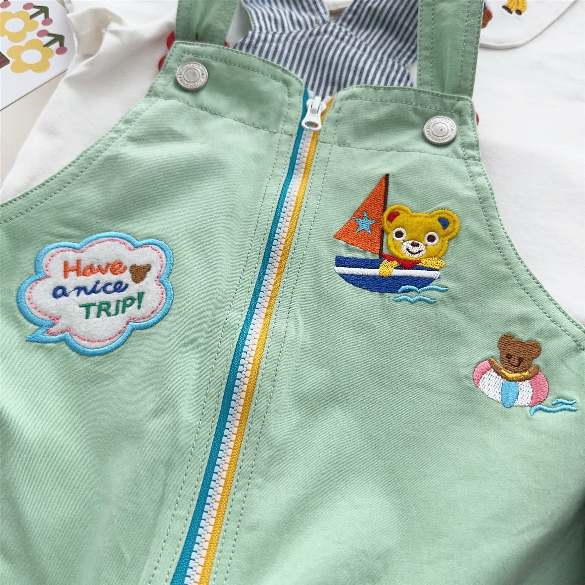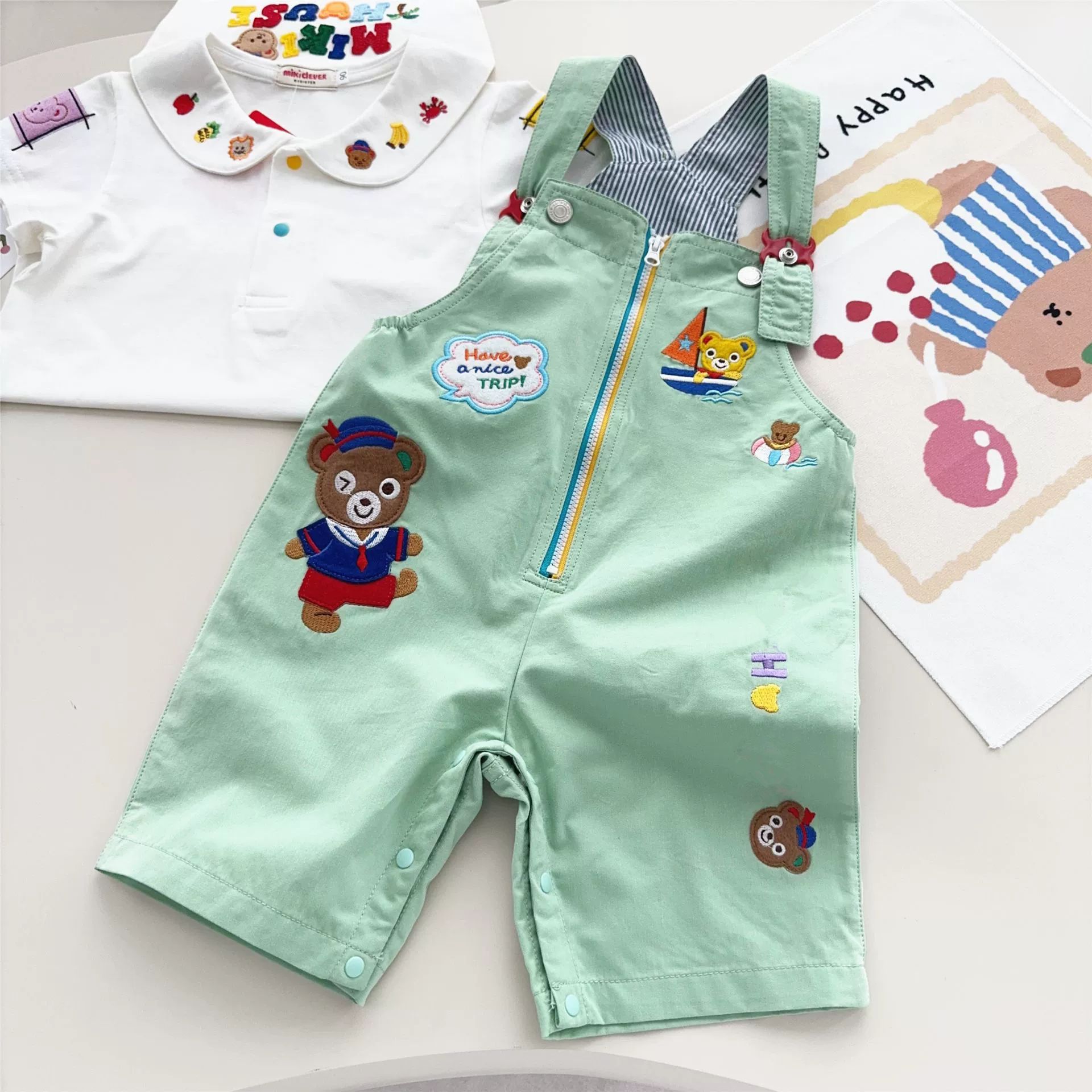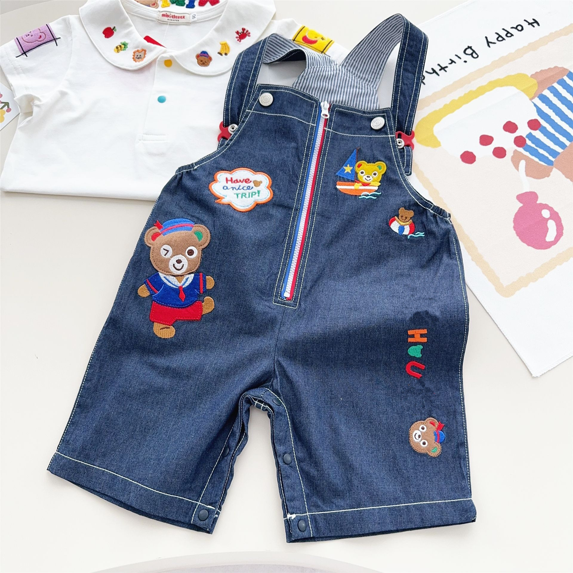 Ruyihe 아동 의류 도매 25 여름 새로운 일본 아동 의류 만화 곰 지퍼 서스펜더 반바지 유행 7067