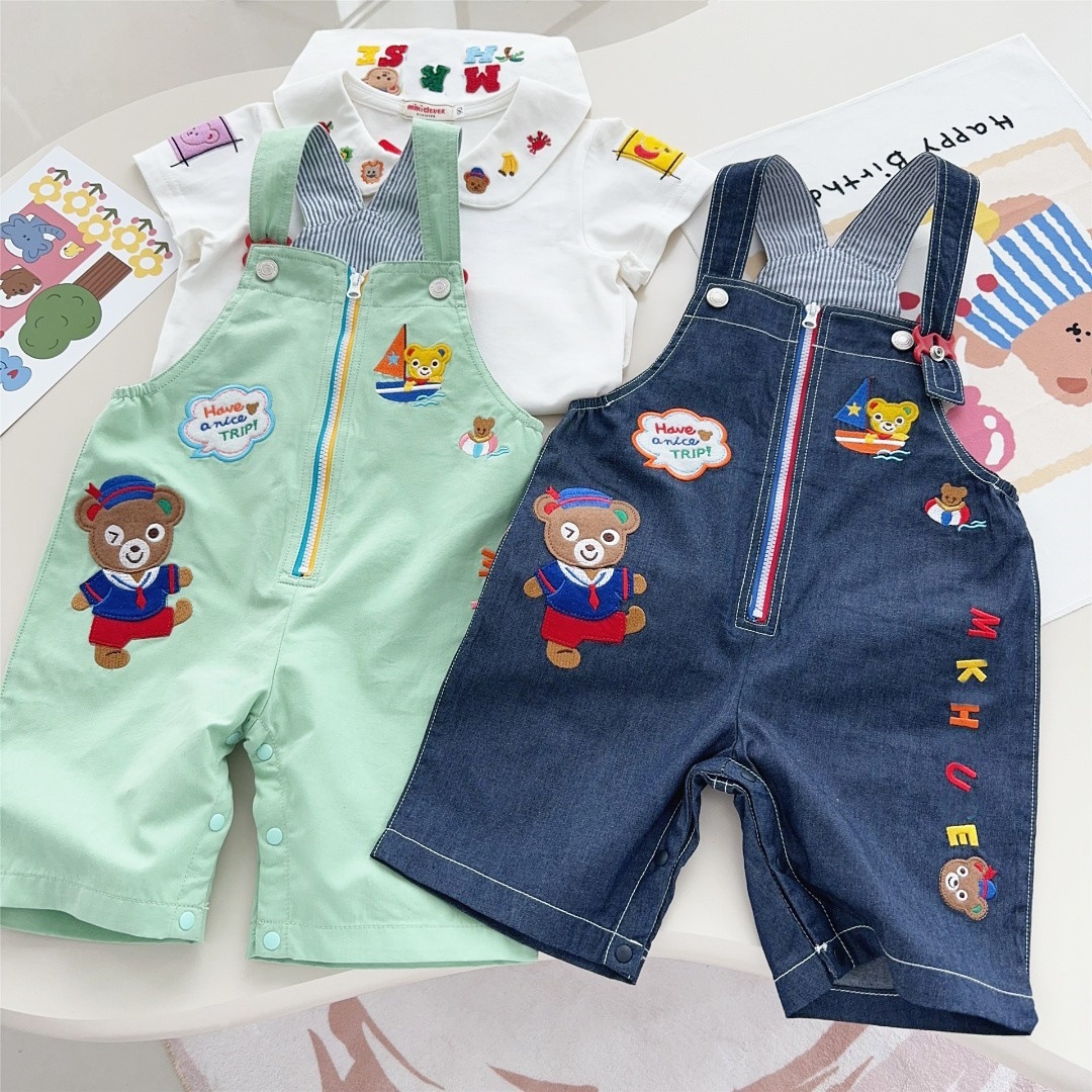Ruyihe 아동 의류 도매 25 여름 새로운 일본 아동 의류 만화 곰 지퍼 서스펜더 반바지 유행 7067스토어 가기