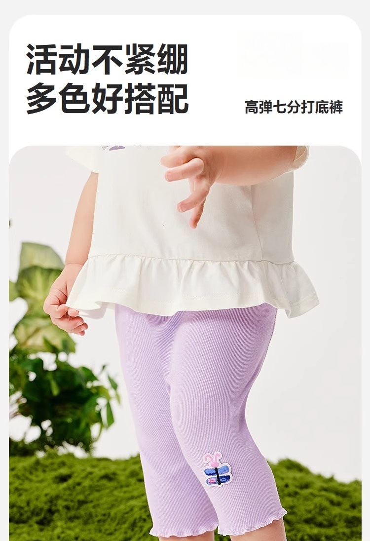 나비 소녀 고탄성 통기성 바지 2025 여름 새 아기 부드러운 골지 7 점 레깅스 아동 의류스토어 가기