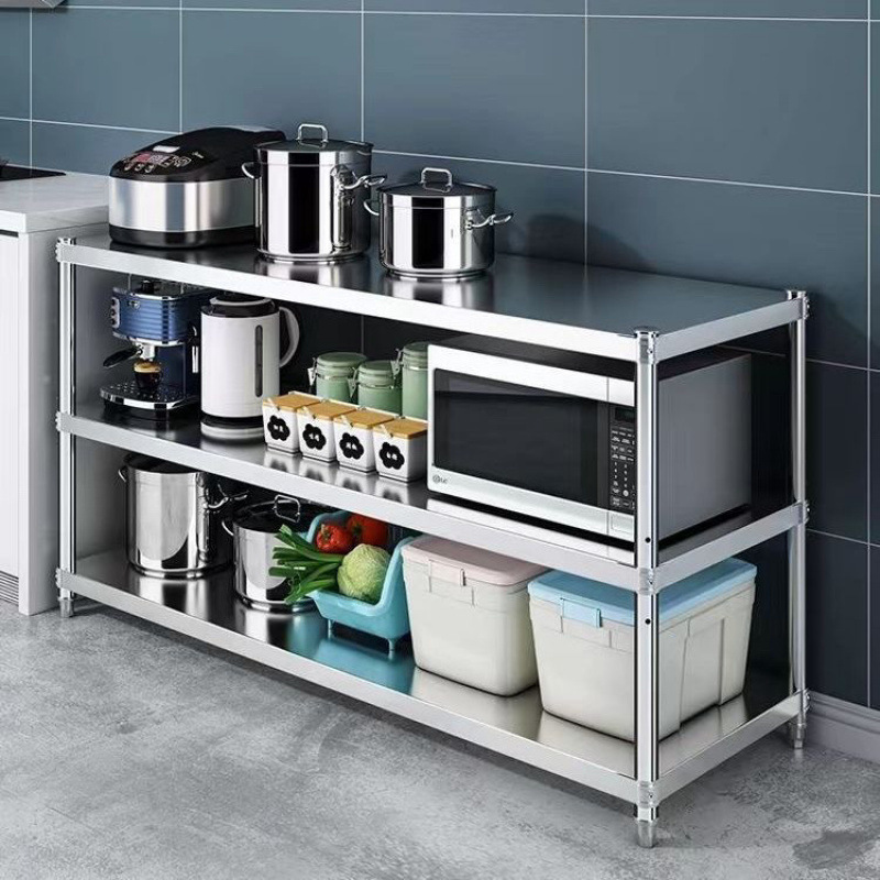 주방 보관 캐비닛 스테인레스 스틸 랙 바닥에서 천장까지 다층 발코니 가정용 전자 레인지 랙 3 층 보관 랙