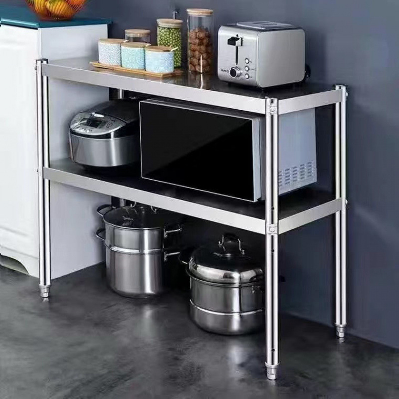 주방 보관 캐비닛 스테인레스 스틸 랙 바닥에서 천장까지 다층 발코니 가정용 전자 레인지 랙 3 층 보관 랙스토어 가기