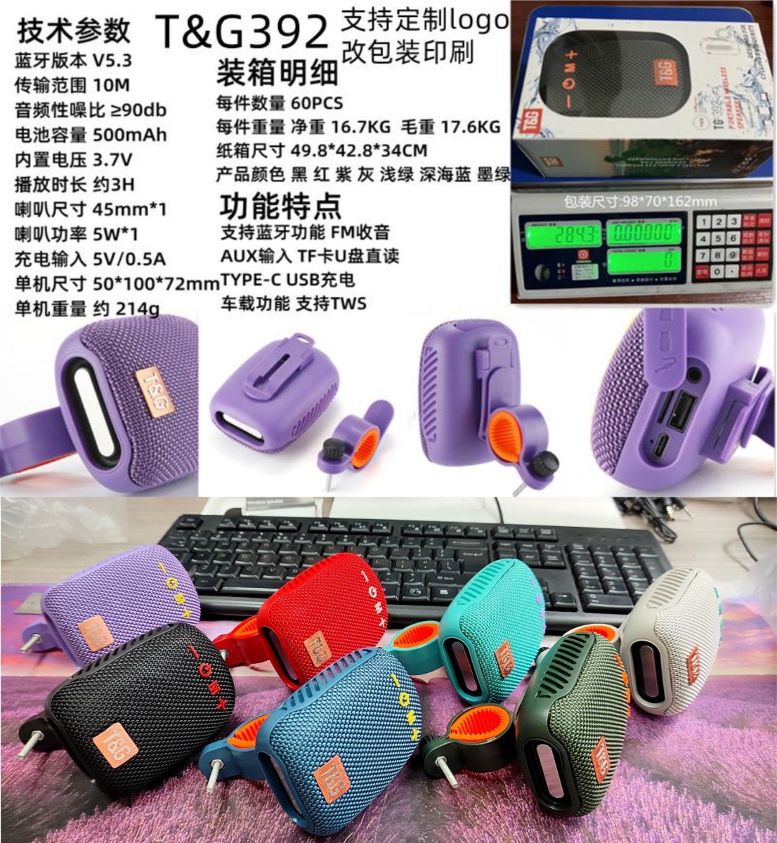 TG392 새로운 야외 사이클링 고정 브래킷 중저음 휴대용 오디오 카드 휴대 전화 TWS 블루투스 스피커
