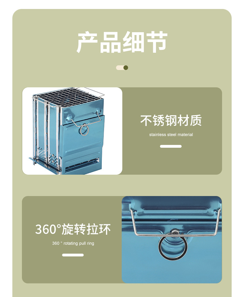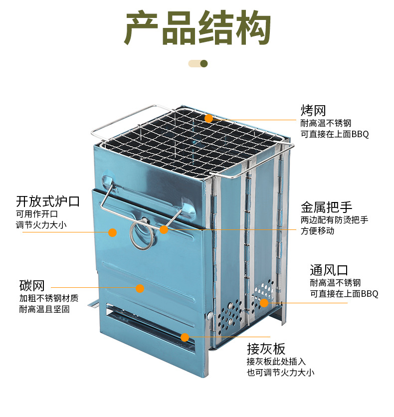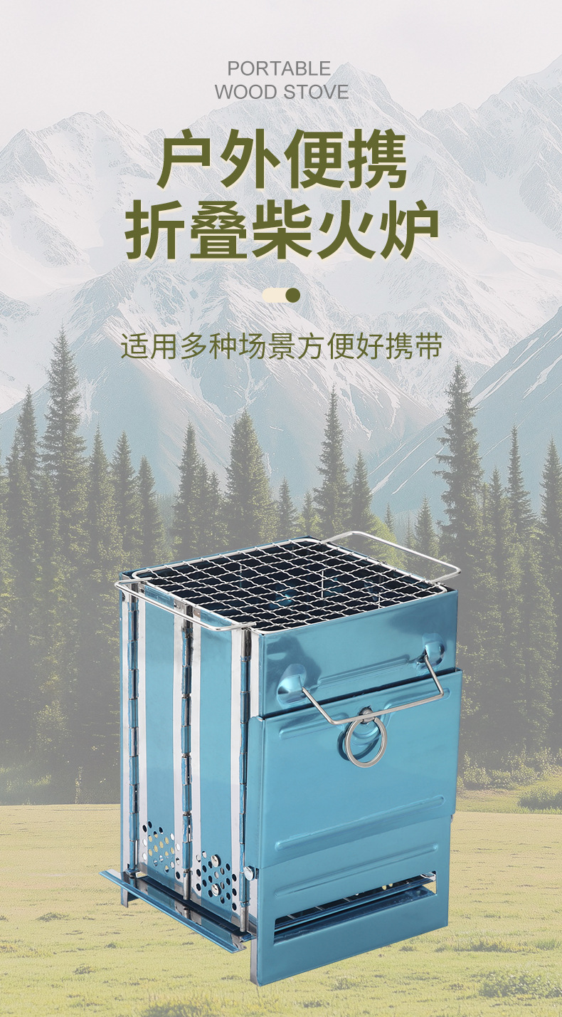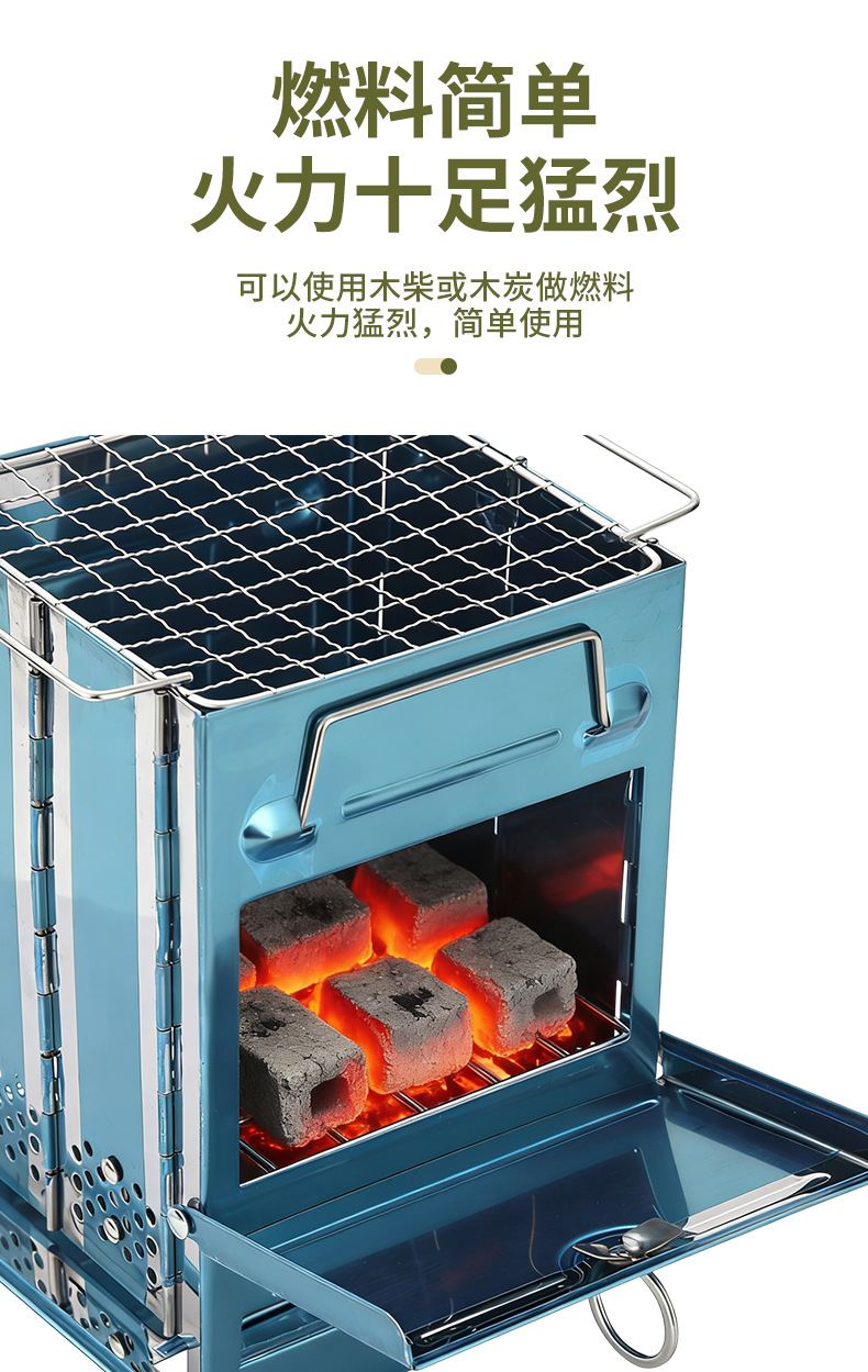 야외 휴대용 접이식 스테인레스 스틸 장작 스토브 맞춤형 통합 방풍 바베큐 그릴 캠핑 그릴 도매스토어 가기