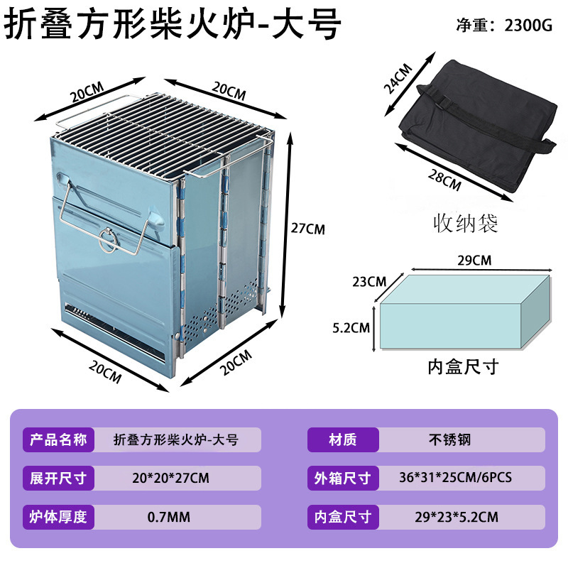 야외 휴대용 접이식 스테인레스 스틸 장작 스토브 맞춤형 통합 방풍 바베큐 그릴 캠핑 그릴 도매