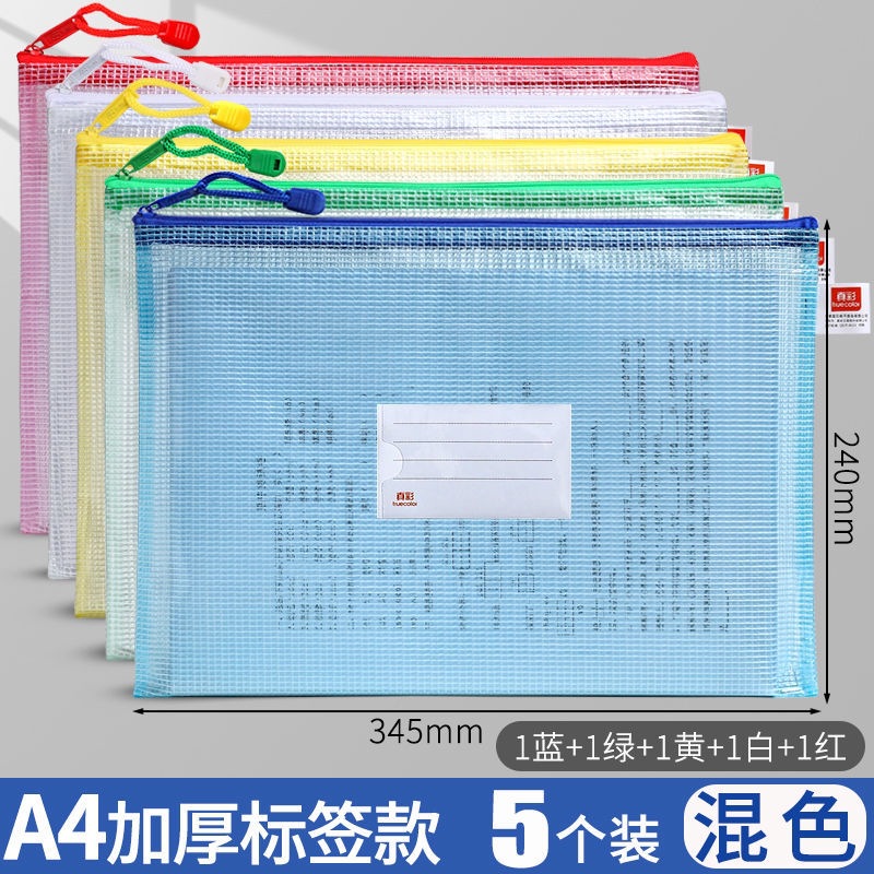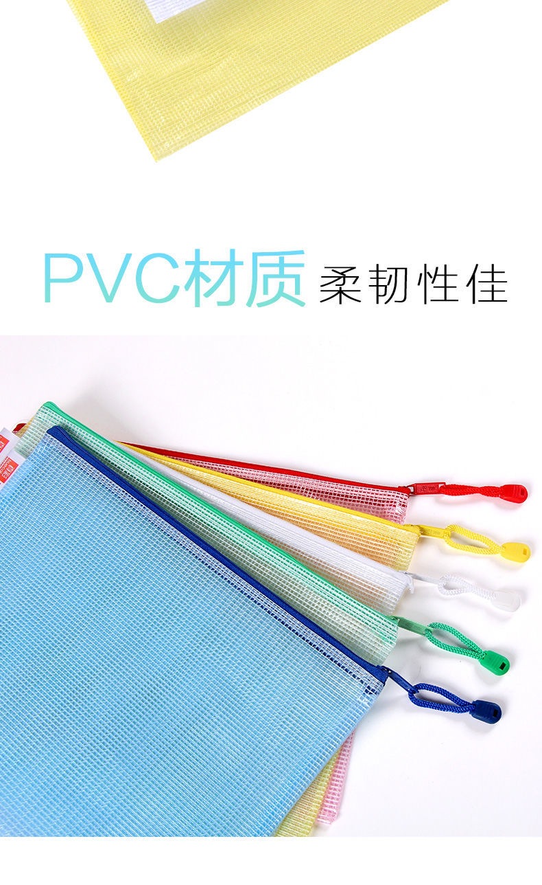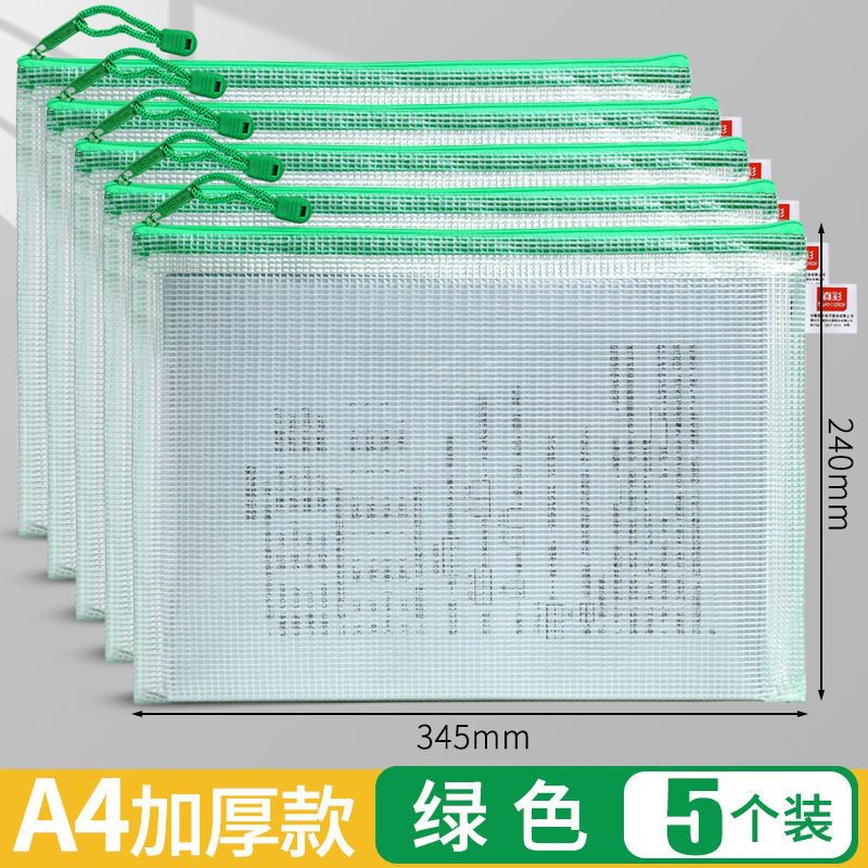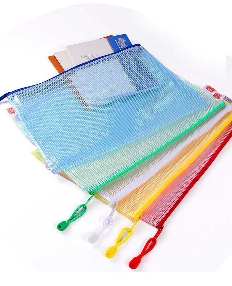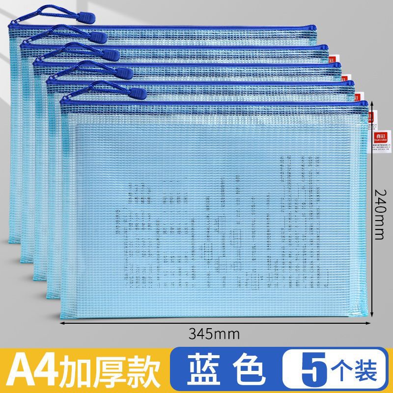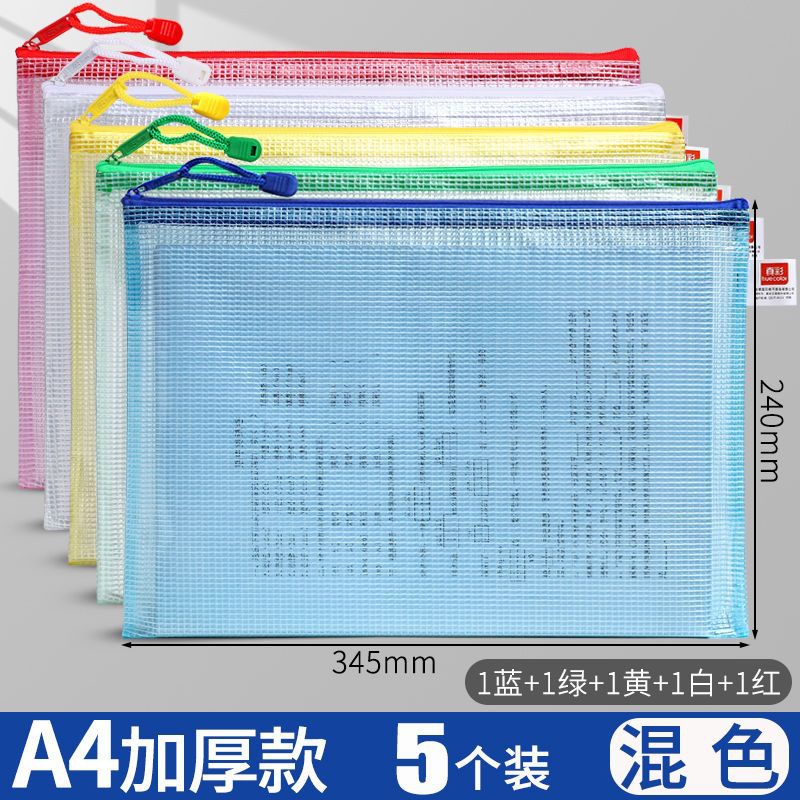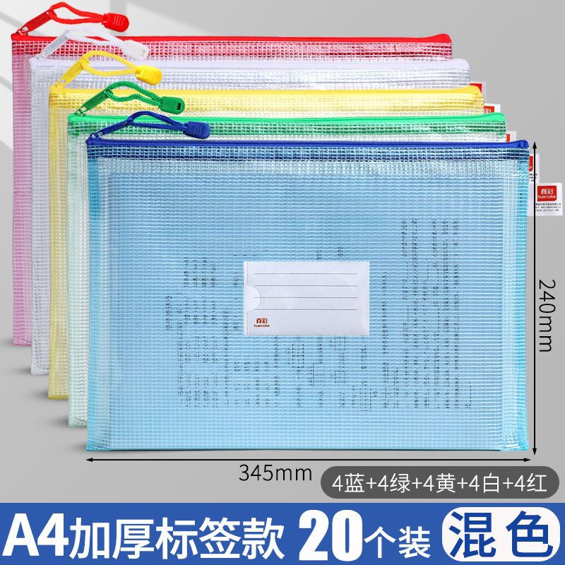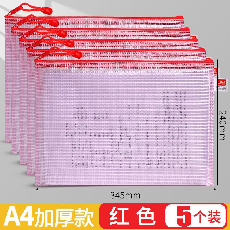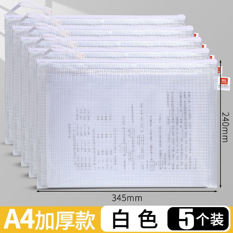 트루 컬러 두꺼운 문서 가방 투명 플라스틱 메쉬 지퍼 가방 A4 학생 보관 문구 가방 파일 사무용품