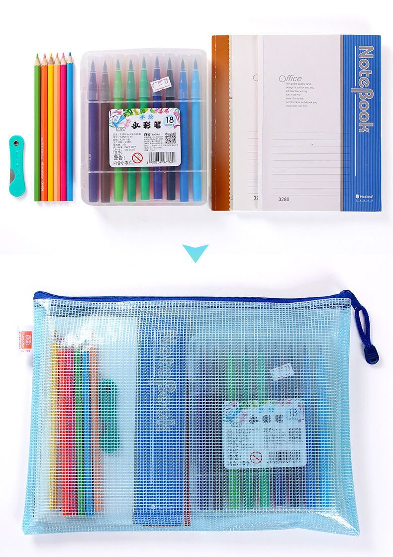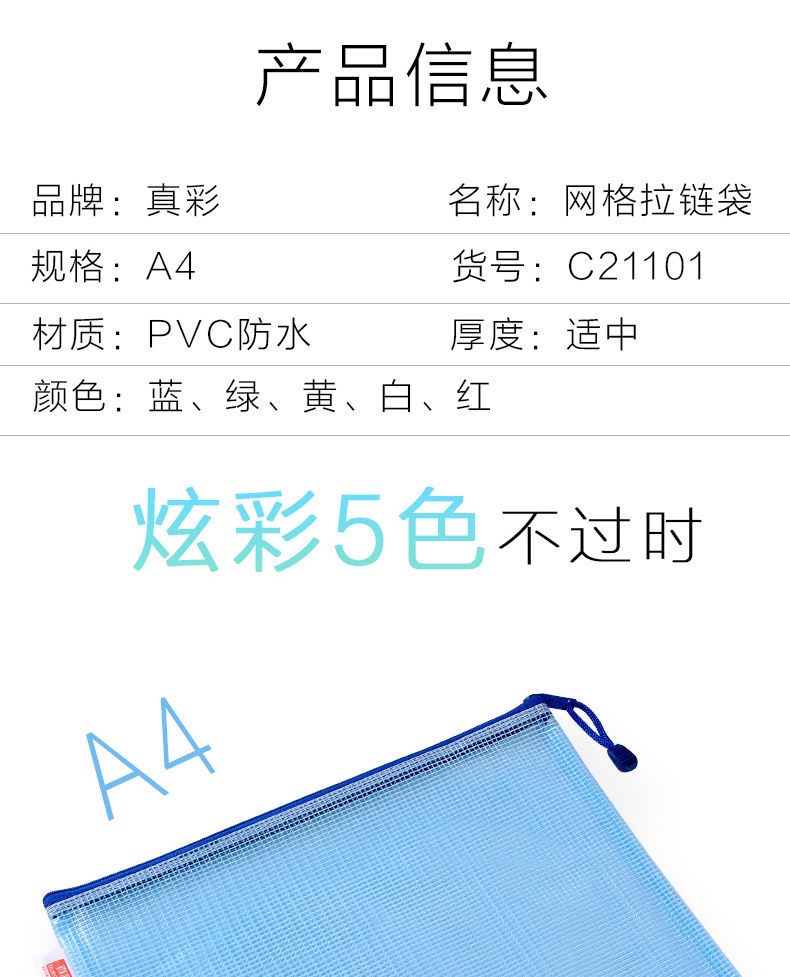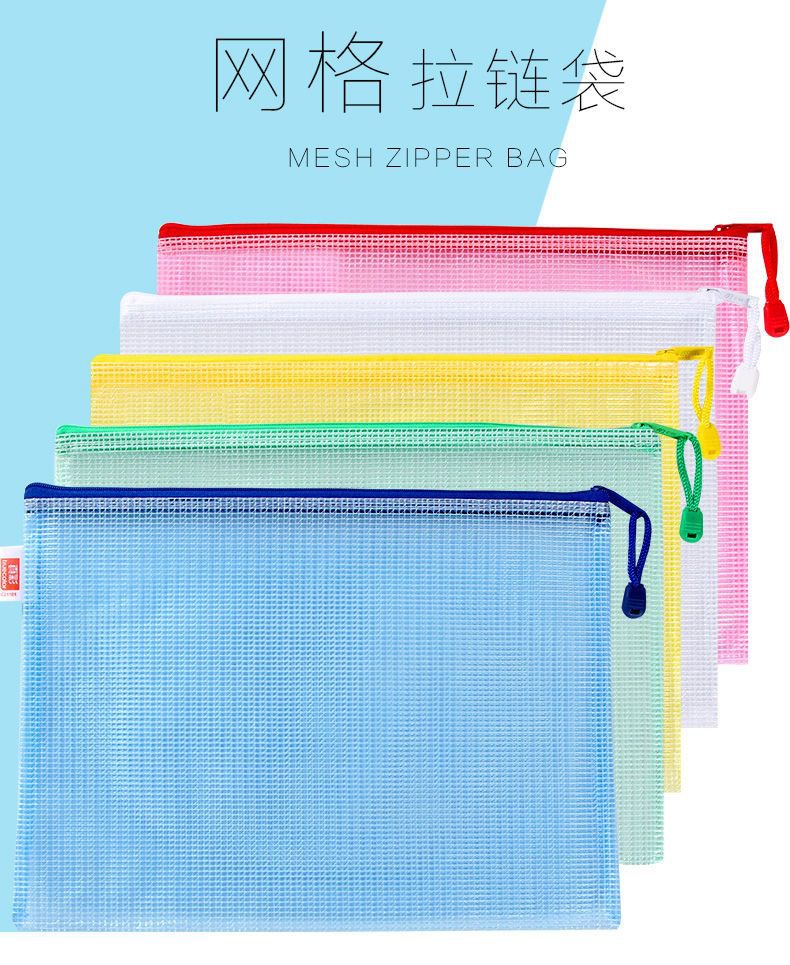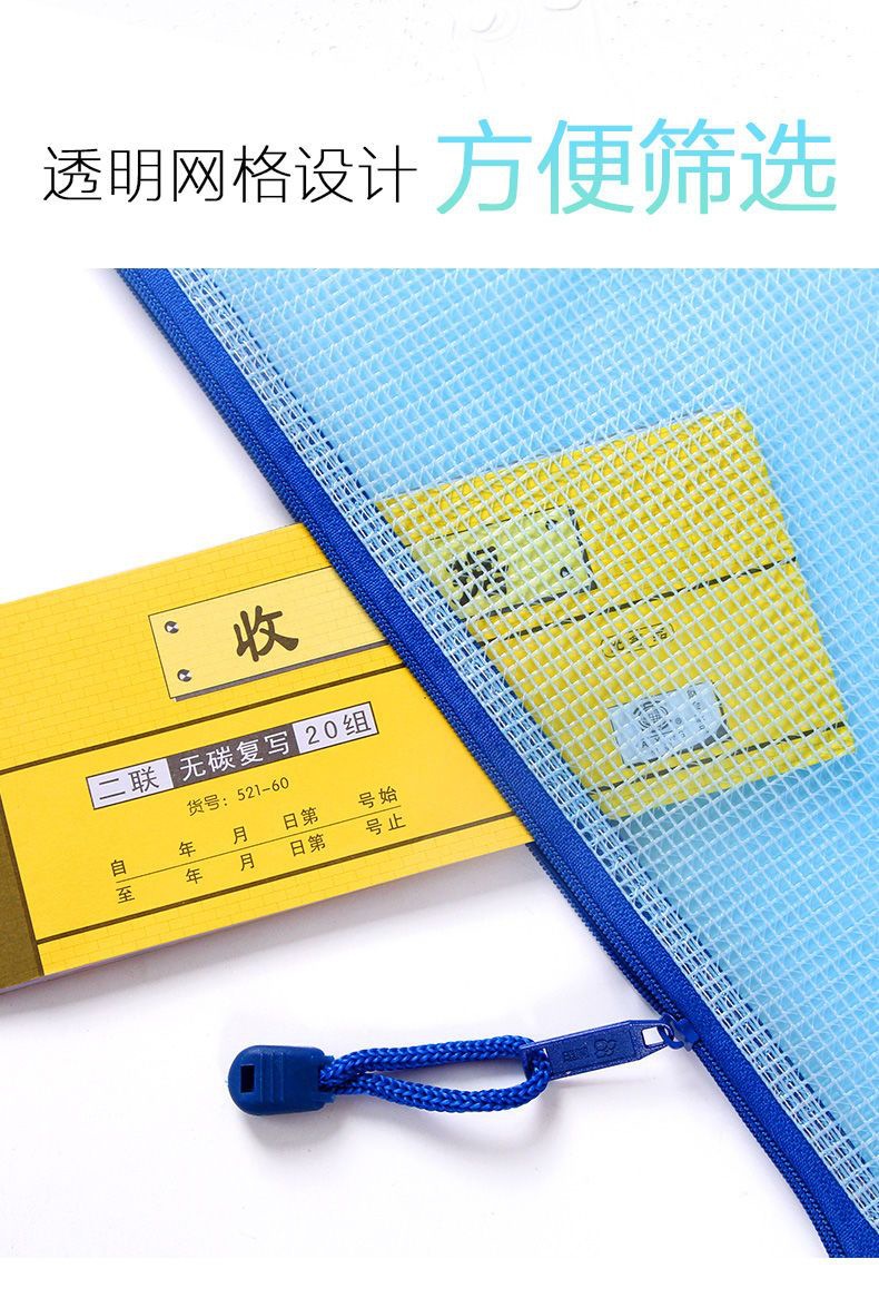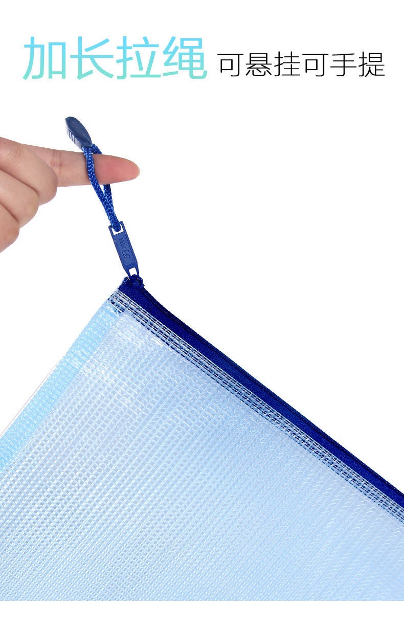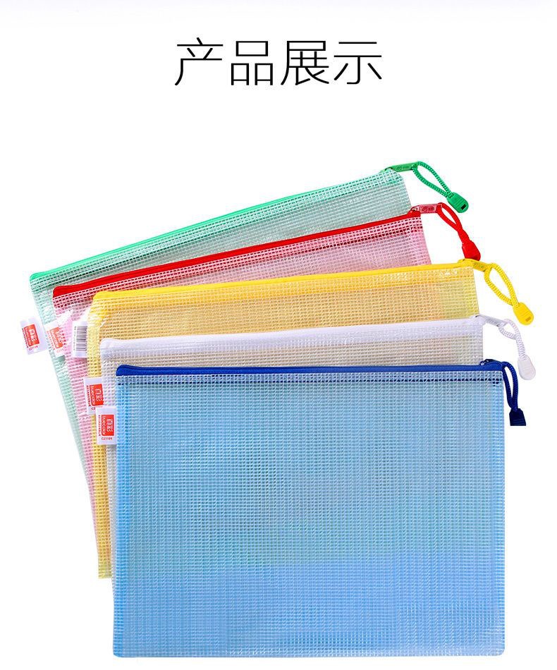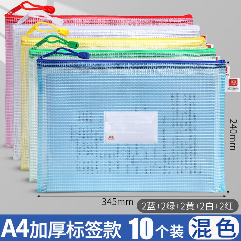 트루 컬러 두꺼운 문서 가방 투명 플라스틱 메쉬 지퍼 가방 A4 학생 보관 문구 가방 파일 사무용품