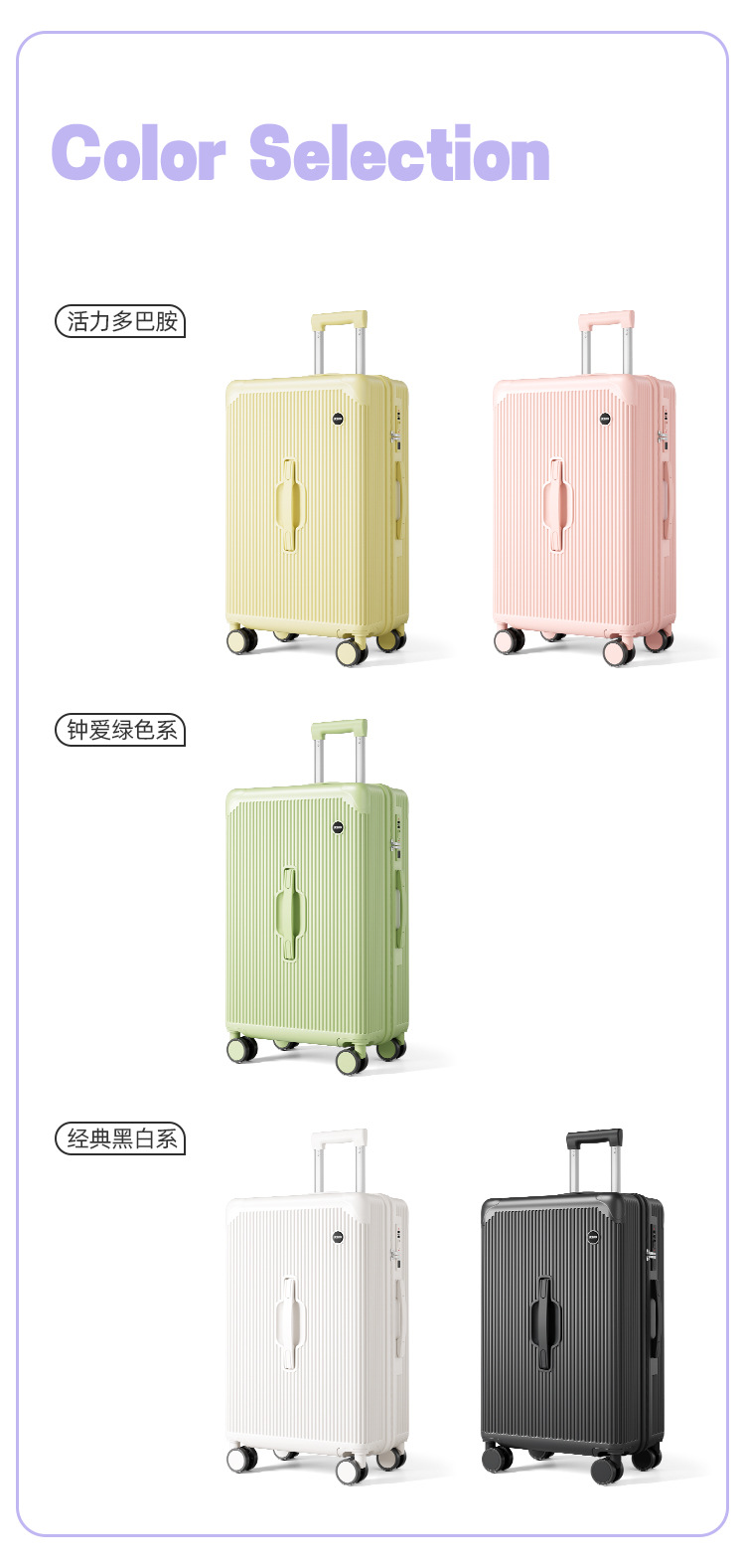 • 그린 애플 그린 [업그레이드 및 두꺼워짐] 이중 방폭 지퍼 + 브레이크 사일런트 휠