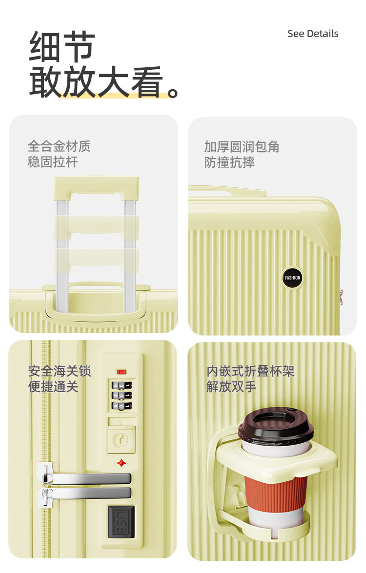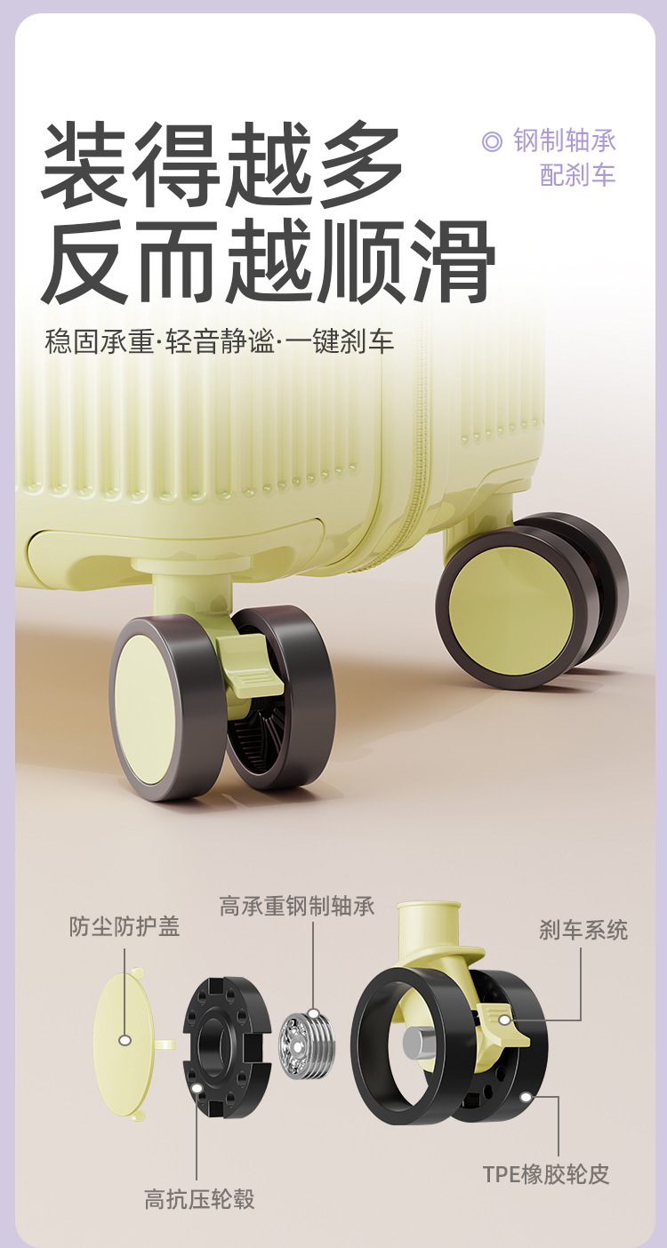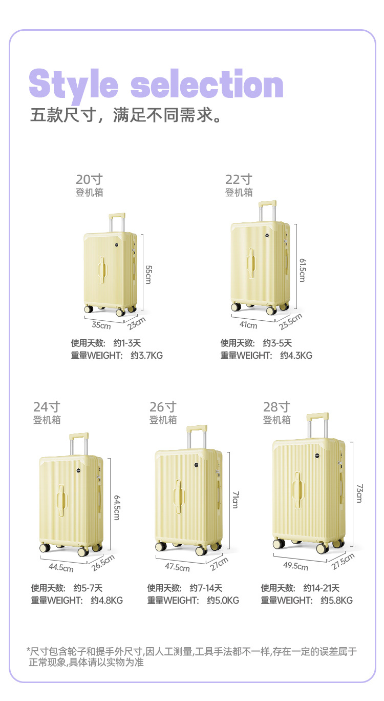 • 크림 옐로우 [업그레이드 및 두꺼워짐] 이중 방폭 지퍼 + 브레이크 사일런트 휠