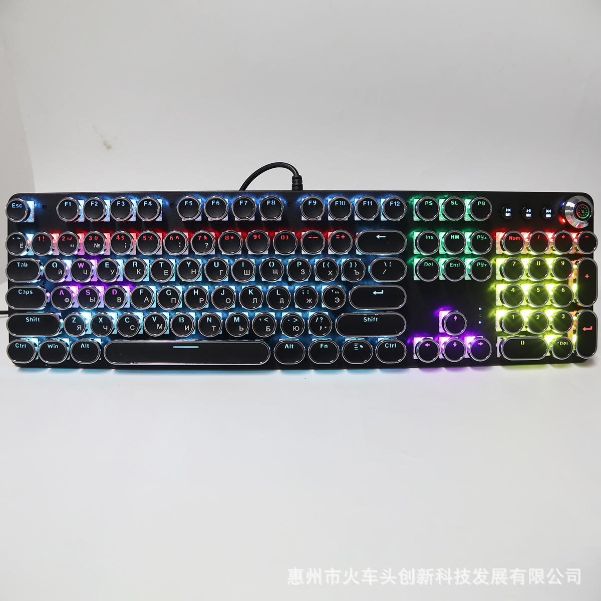 [러시아어 키보드] 레트로 라운드 스팀펑크 손잡이 기계식 키보드 크로스보더 직접 판매 87/104 키 재고 있음