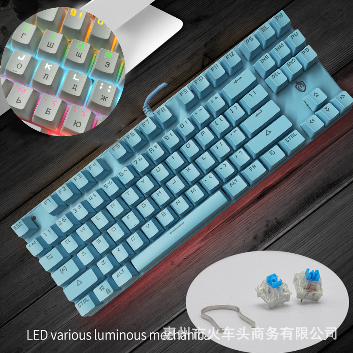 • 러시아어 919-10 파란색 녹색 축 흰색 조명(87 키)