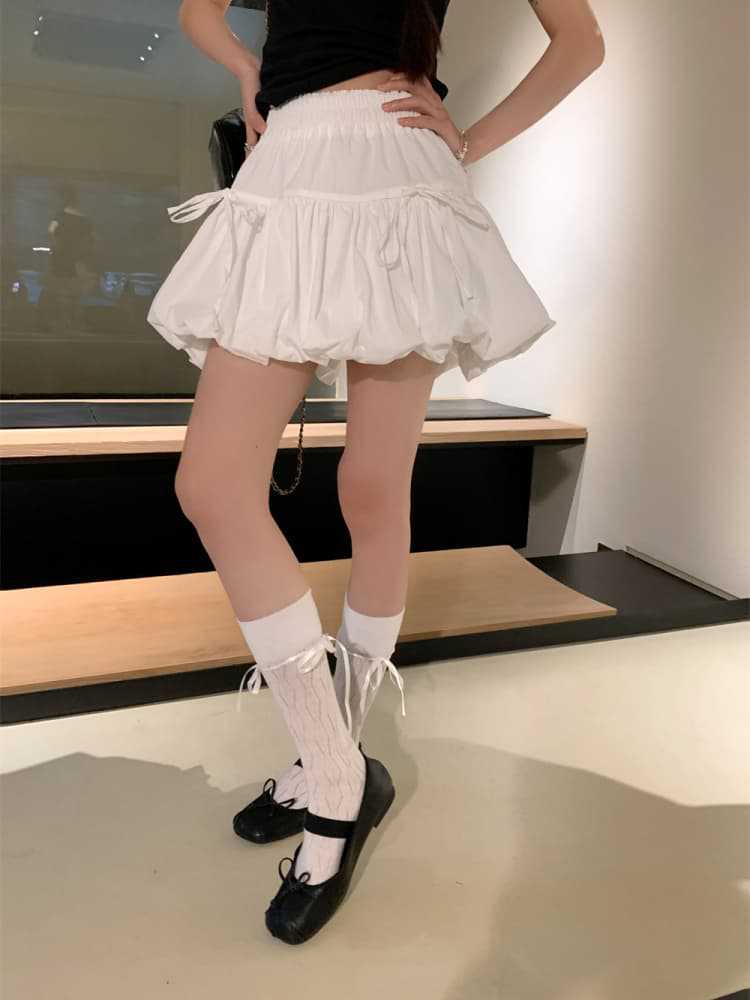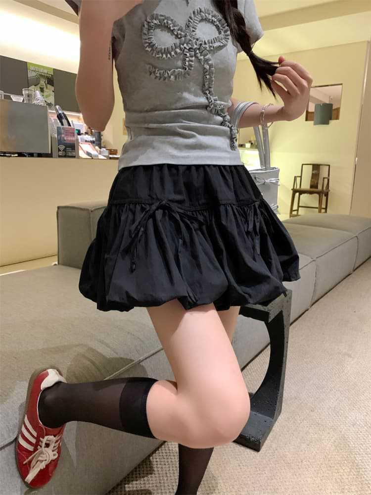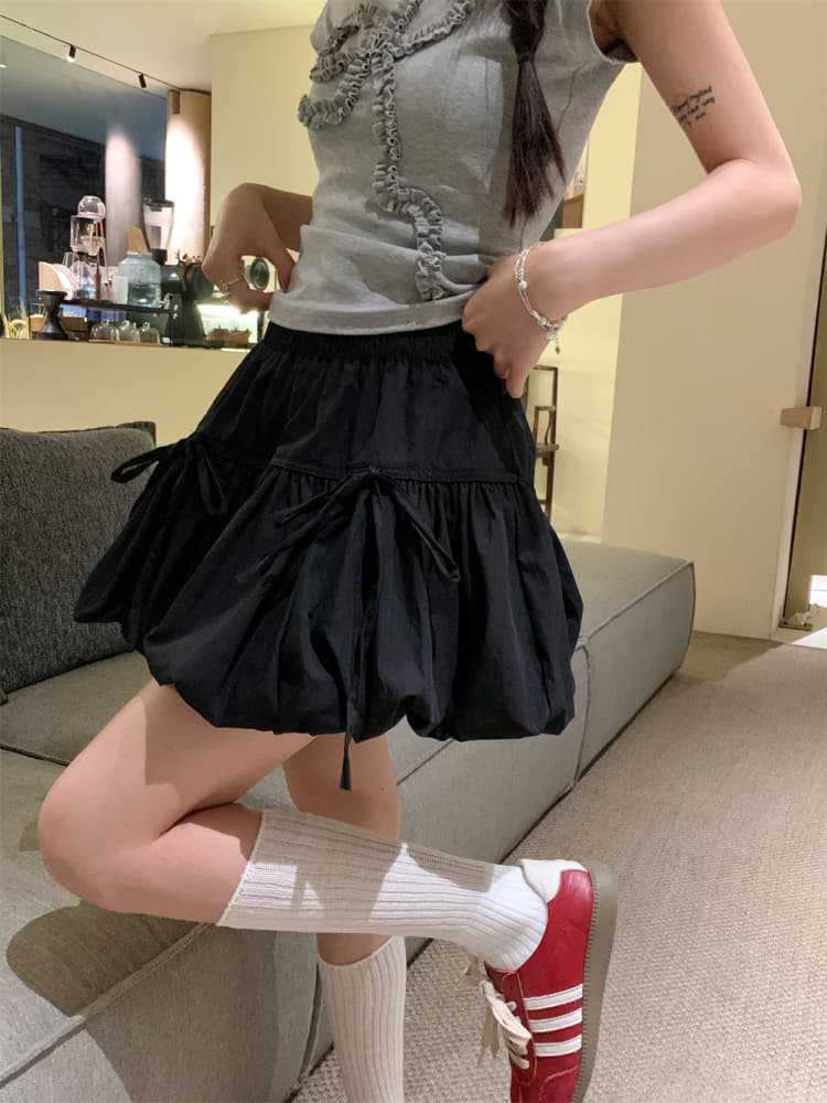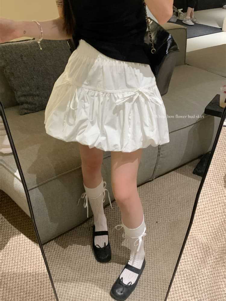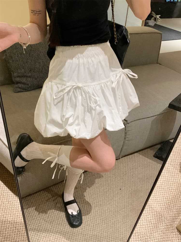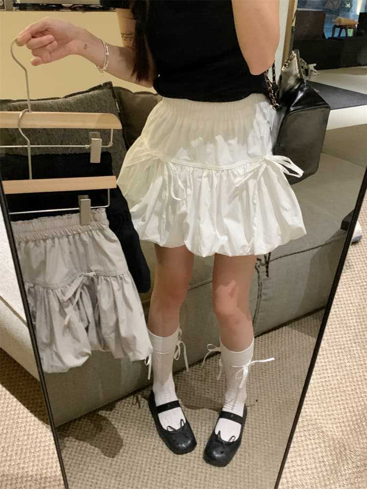 Chenling [오리지널 품질] 여름 달콤한 스타일 버드를 위한 여성용 디자인 보우 스트랩 퍼프 스커트