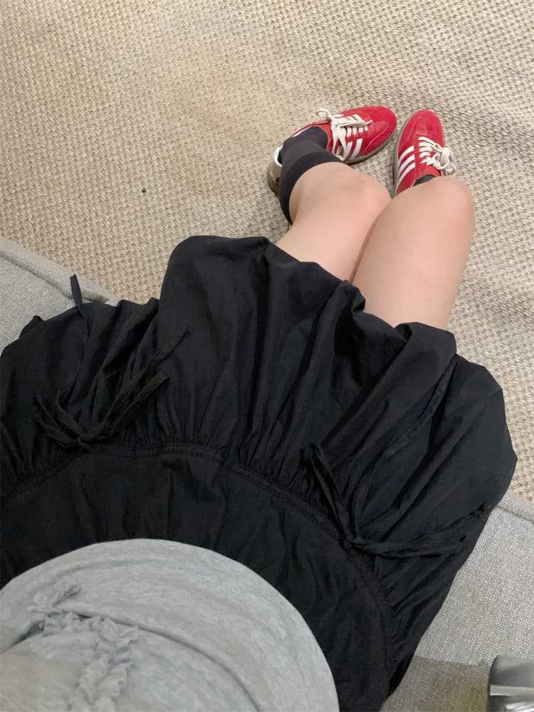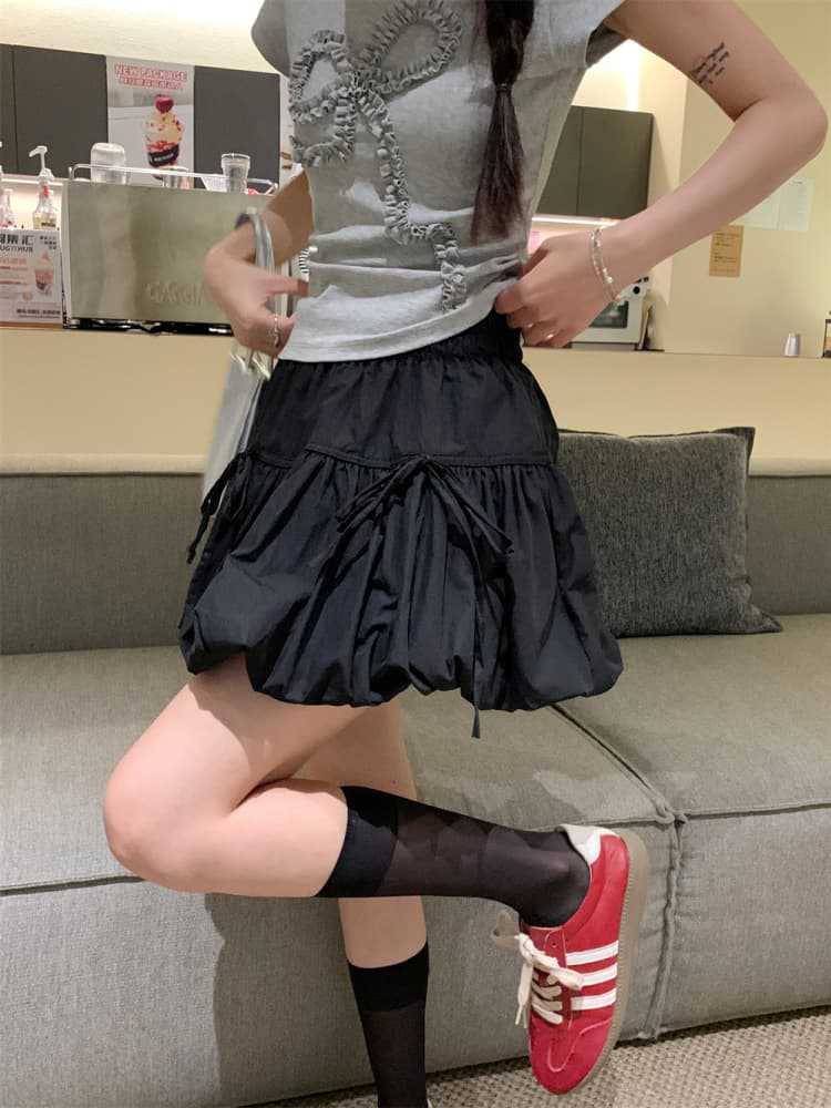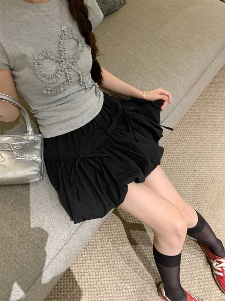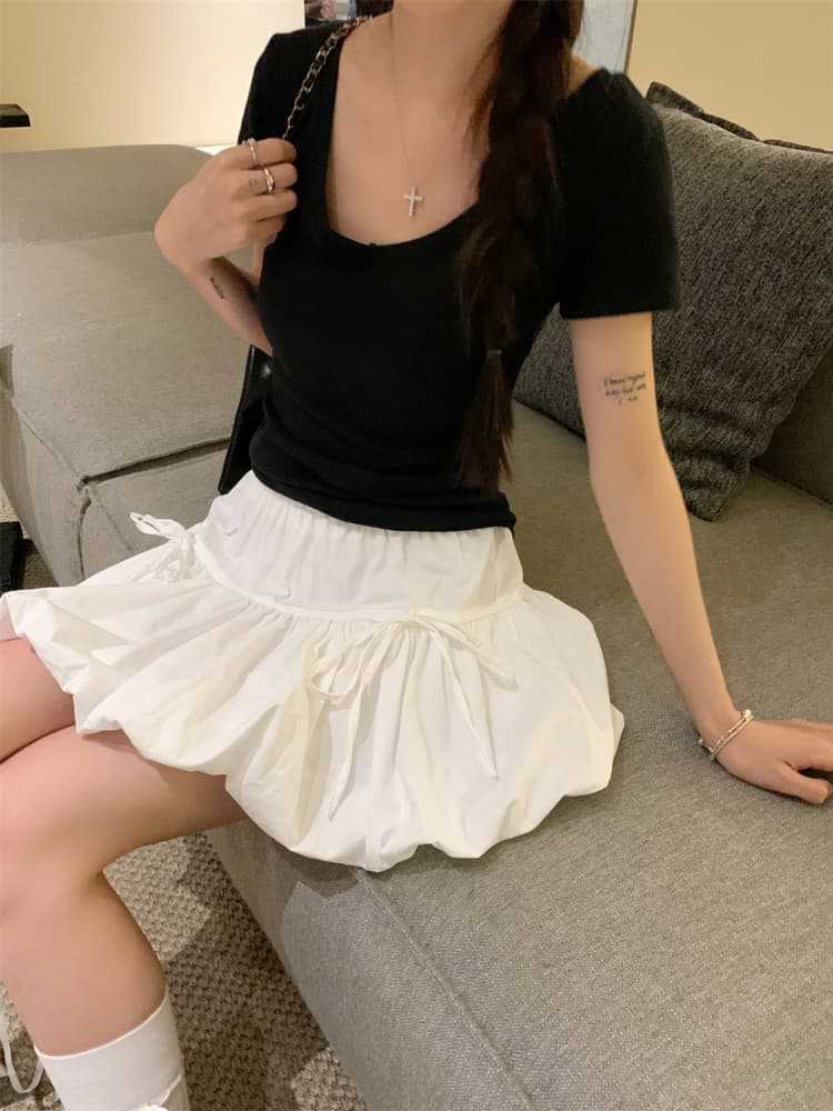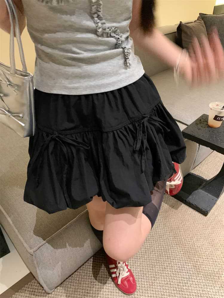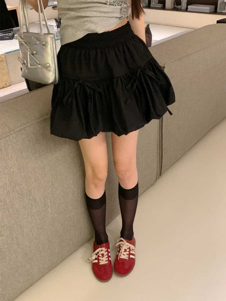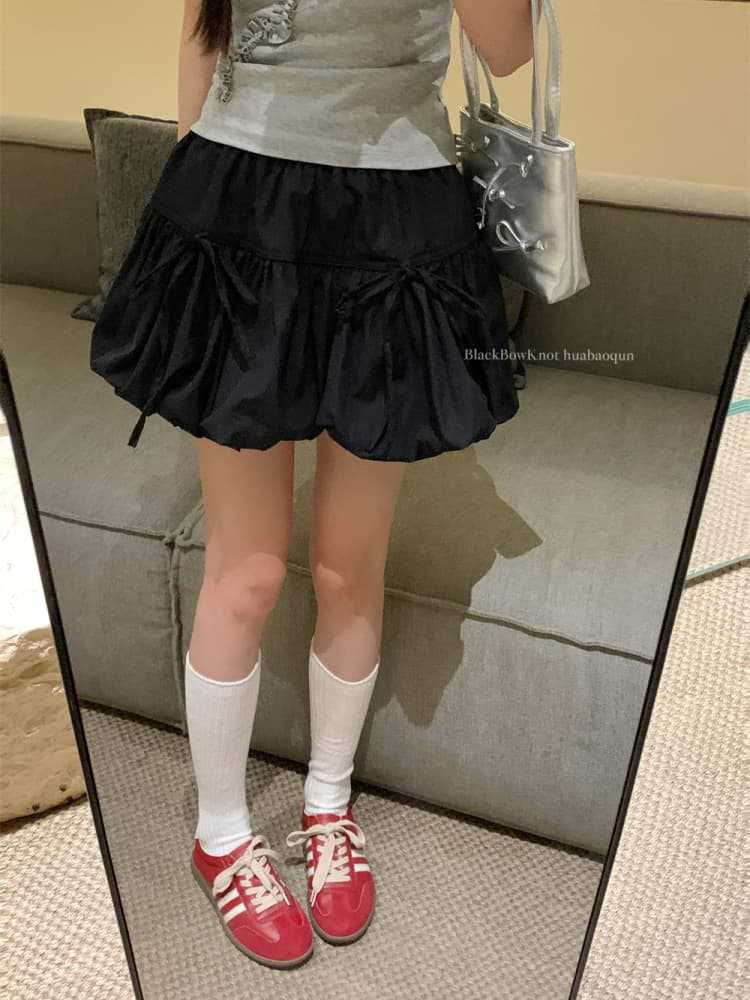 Chenling [오리지널 품질] 여름 달콤한 스타일 버드를 위한 여성용 디자인 보우 스트랩 퍼프 스커트