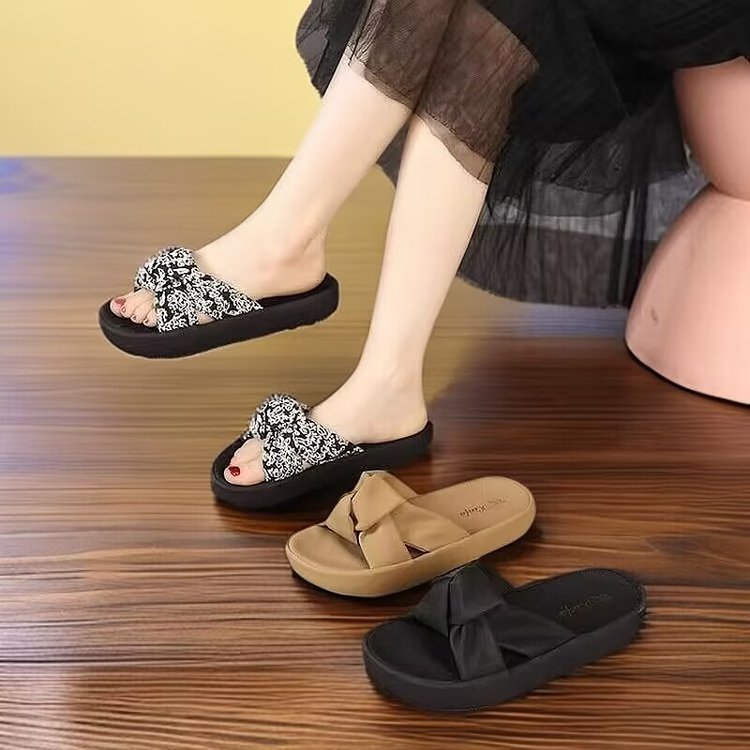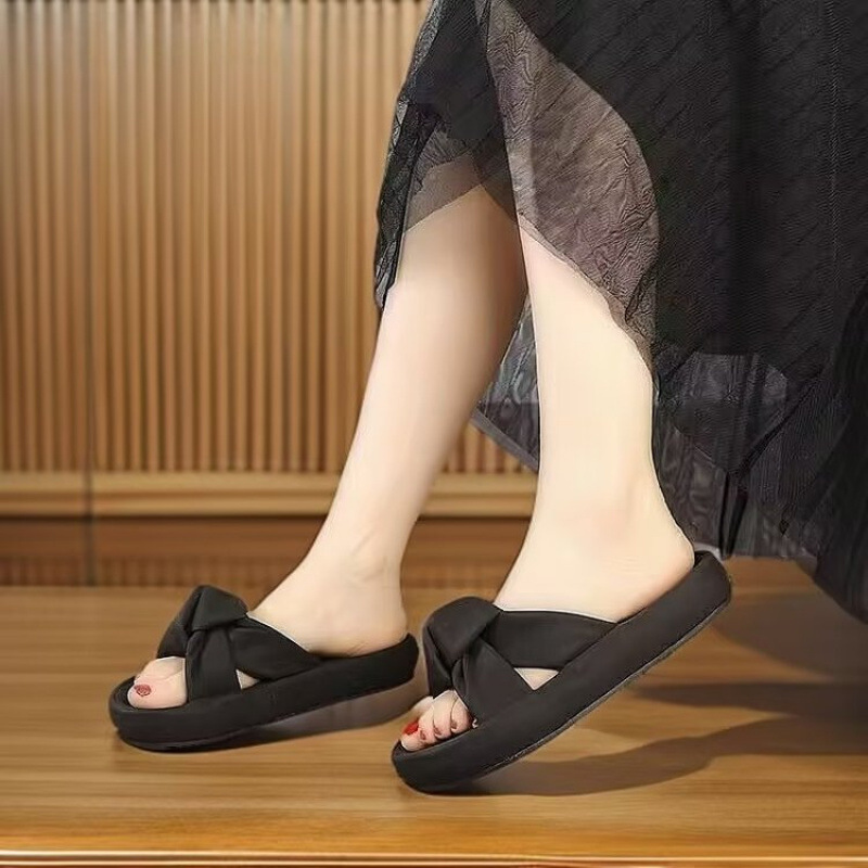 2025 새로운 여름 패션 다목적 캐주얼 비치 여성 신발 대외 무역 부드러운 가죽 슬리퍼 도매 두꺼운 밑창 샌들