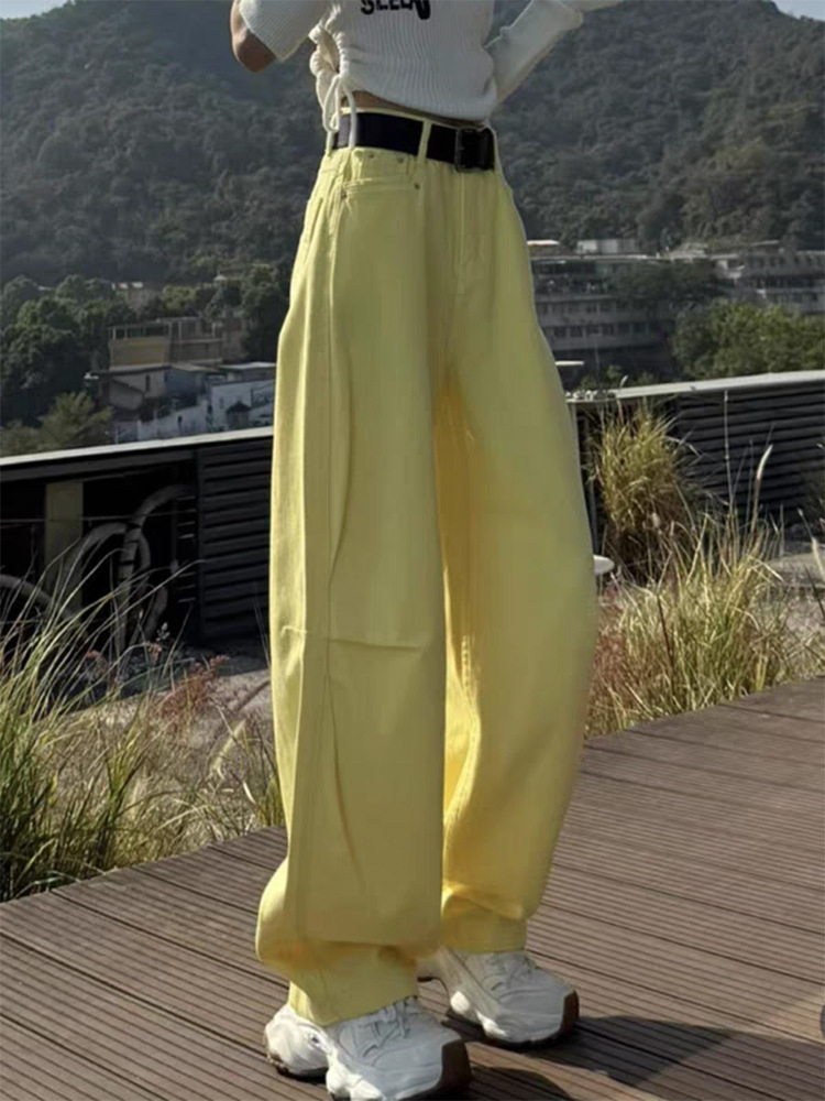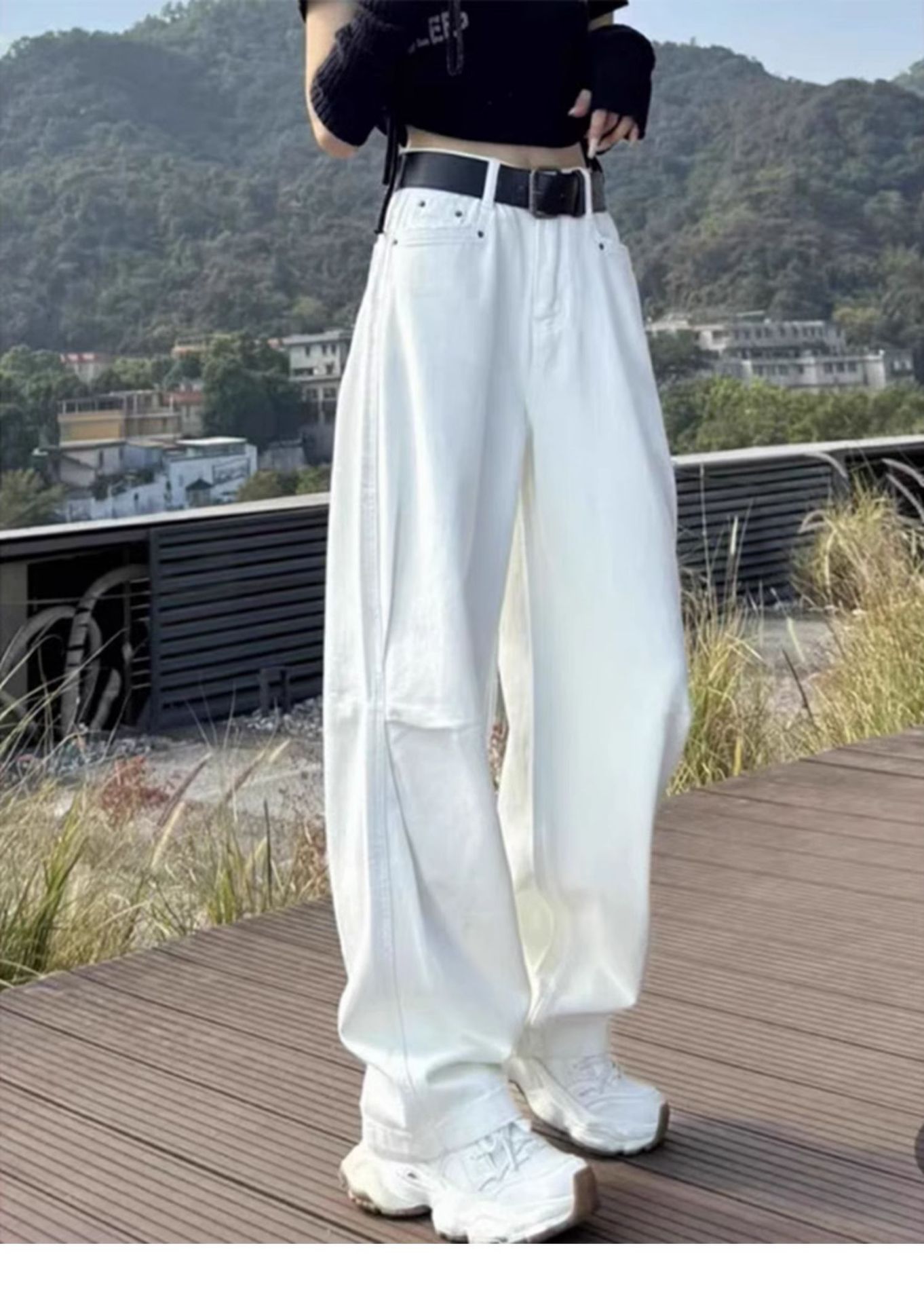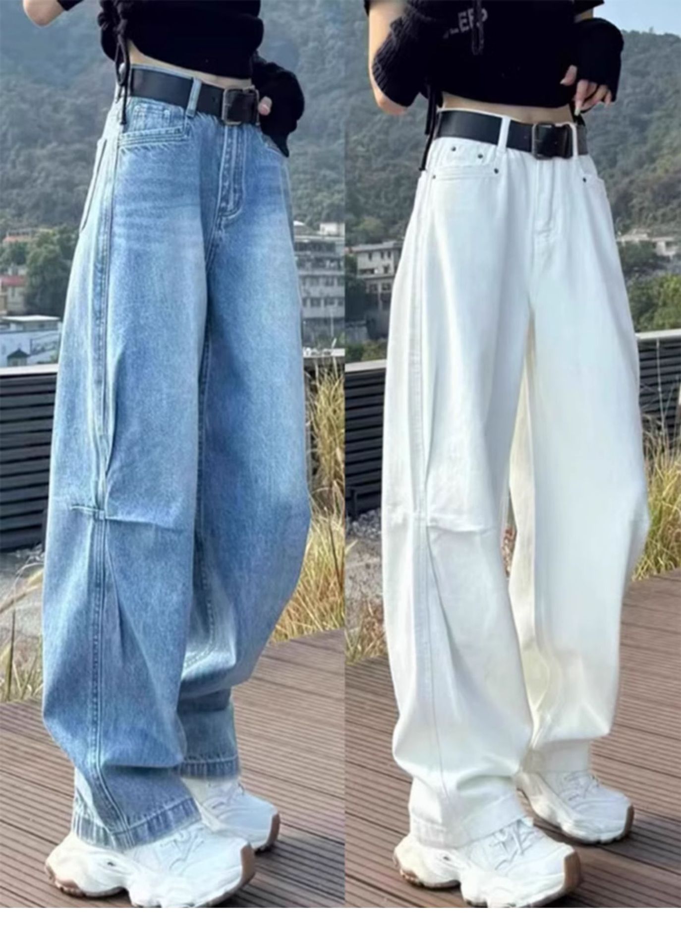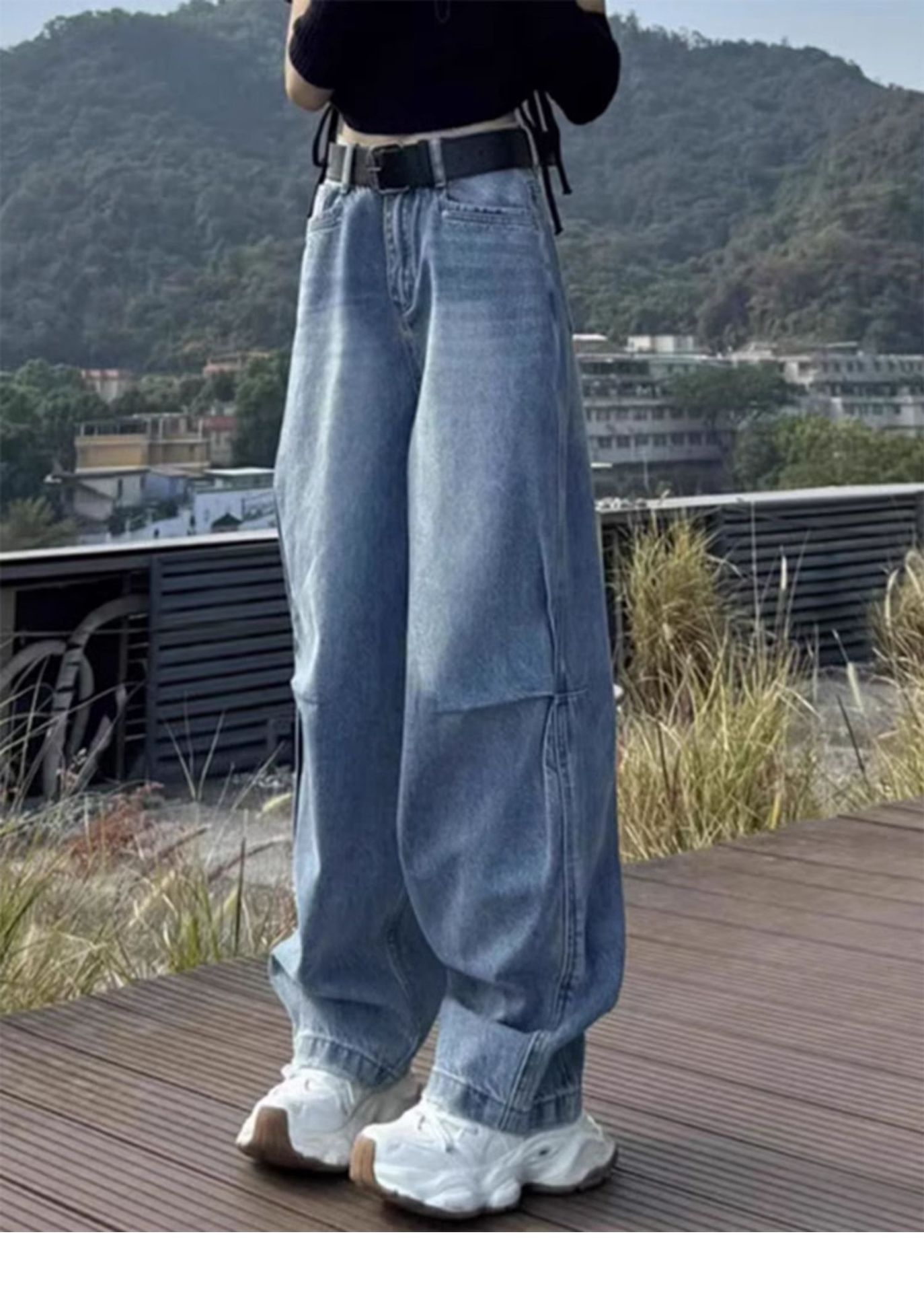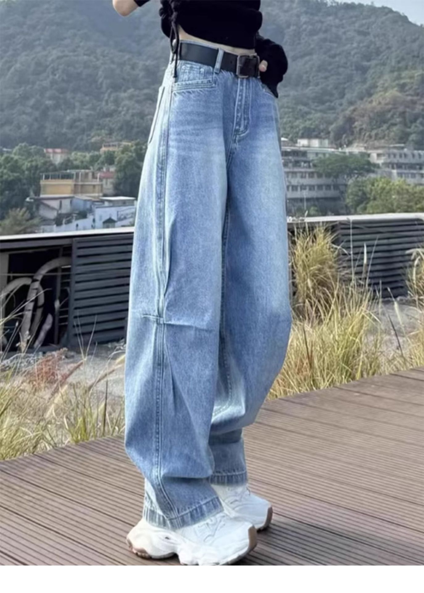 여성용 플러스 사이즈 레트로 채플린 청바지 봄, 가을 뚱뚱한 mm 배꼽 모양의 몸 루즈한 하이 웨이스트 슬리밍 스트레이트 와이드 레그 팬츠스토어 가기
