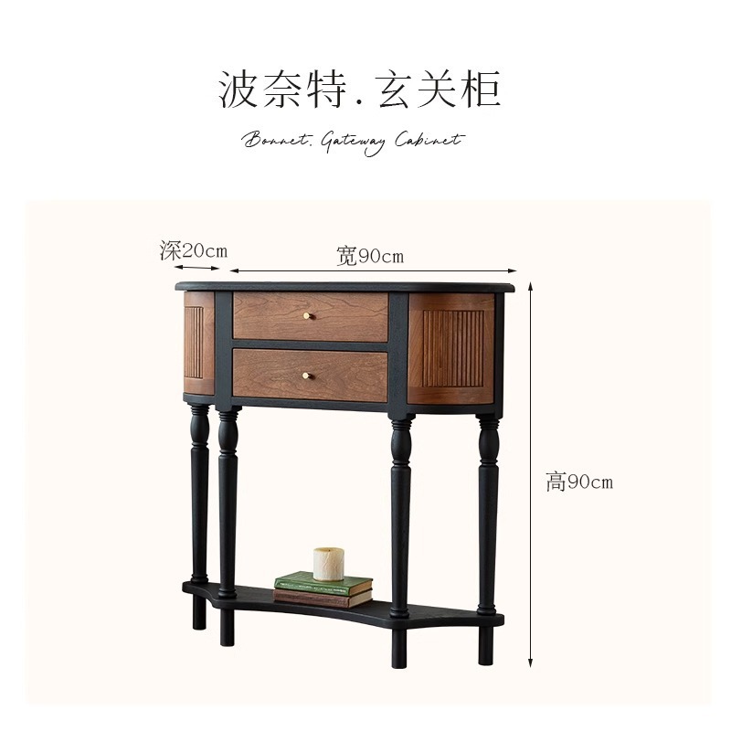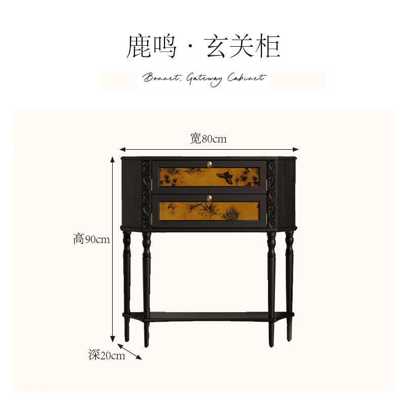 프렌치 레트로 애쉬 원목 소형 아파트 입구 캐비닛 Xiaohongshu 인기 추천 E0 등급 페인트 환경 친화적