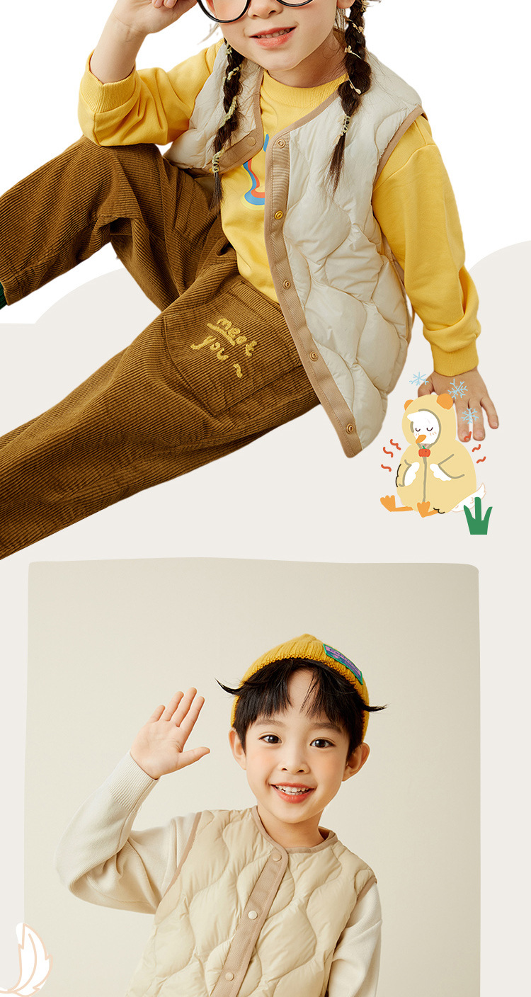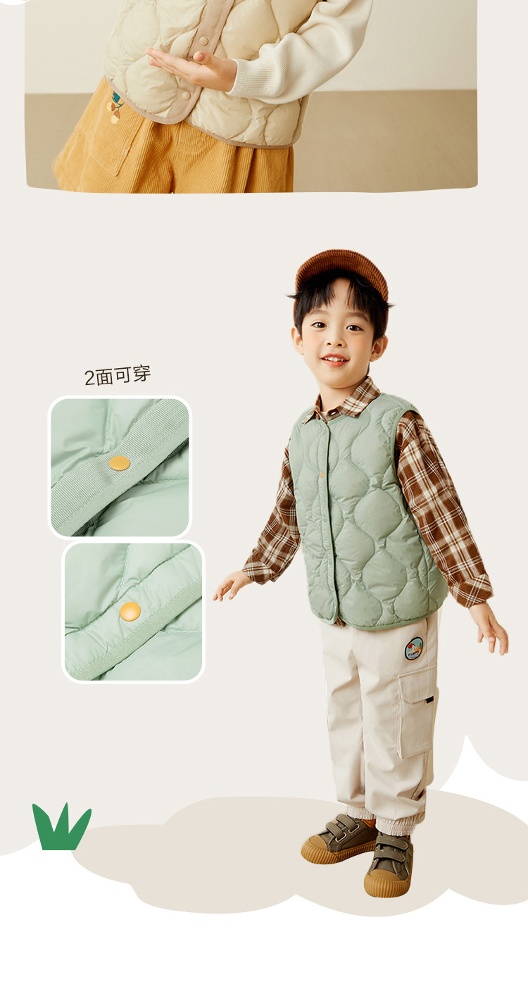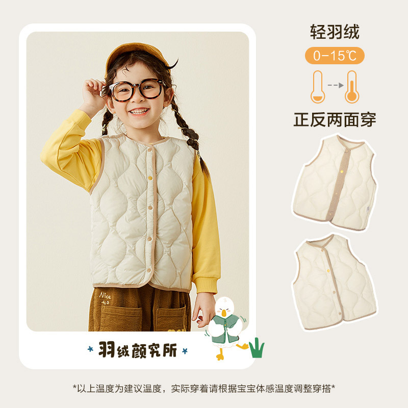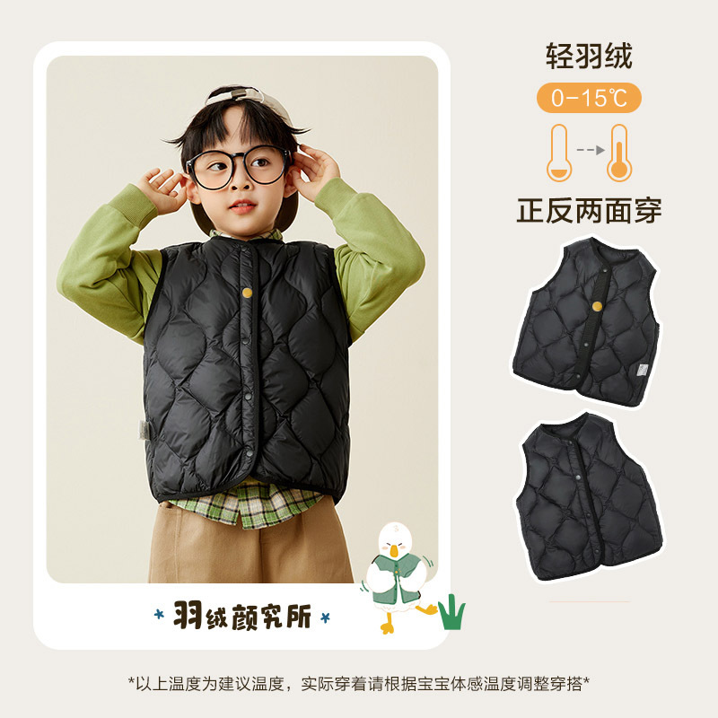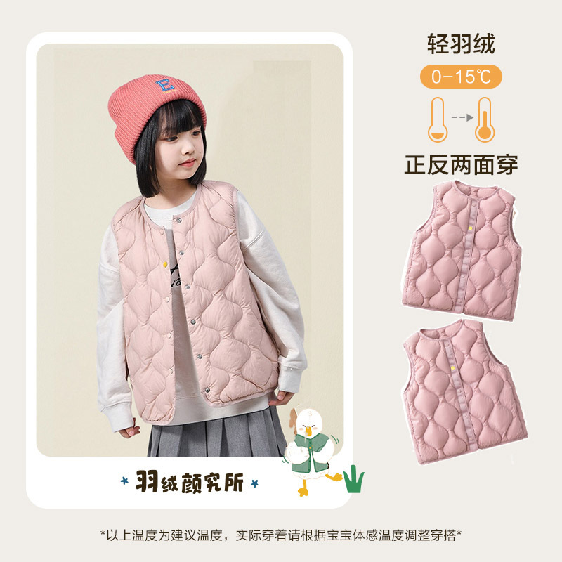 솔리드 컬러 2025 아동용 다운 재킷 조끼 화이트 오리 다운 라이너 소년 소녀 양면 착용 아동용 다용도 백스토어 가기