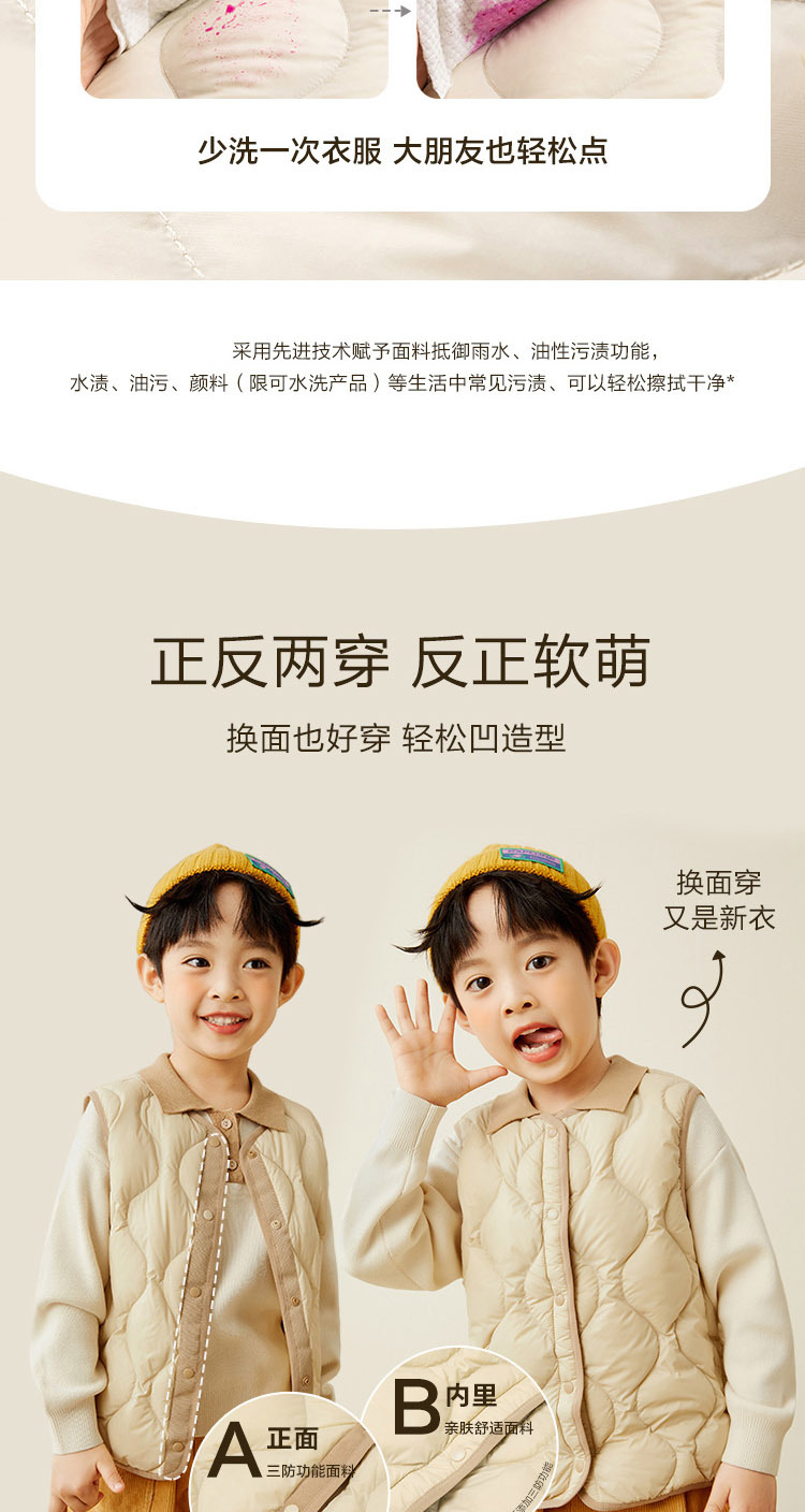 솔리드 컬러 2025 아동용 다운 재킷 조끼 화이트 오리 다운 라이너 소년 소녀 양면 착용 아동용 다용도 백
