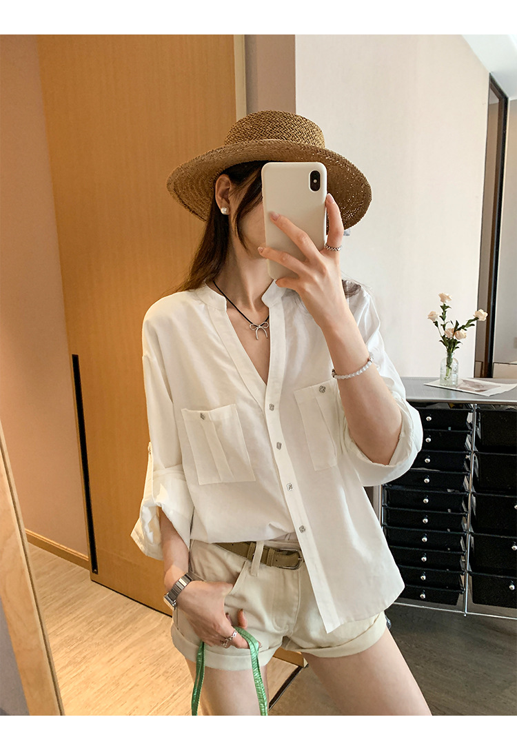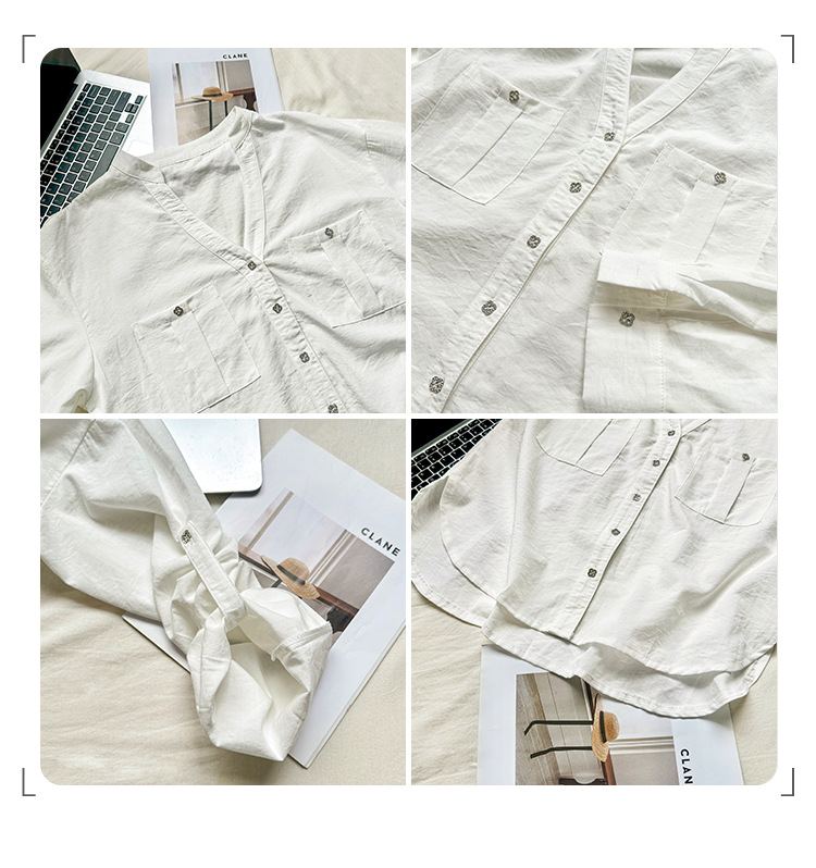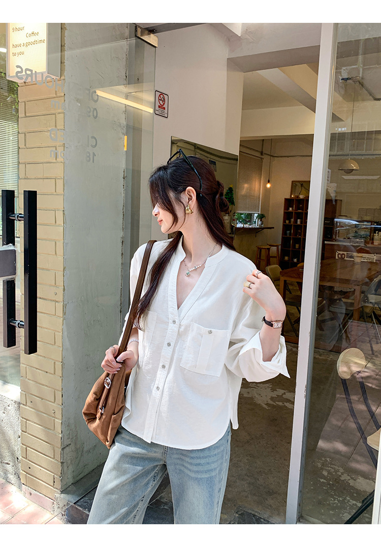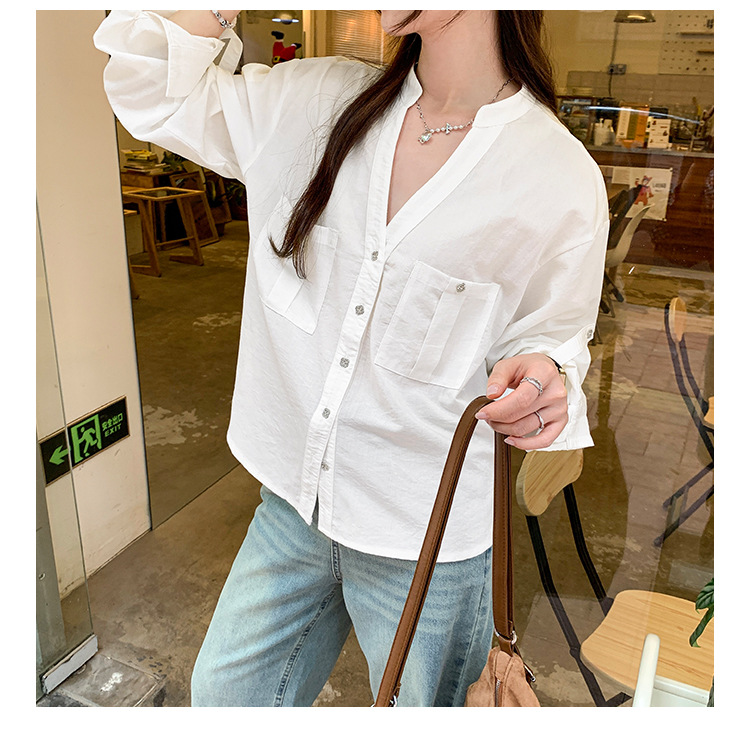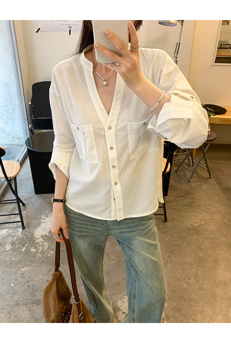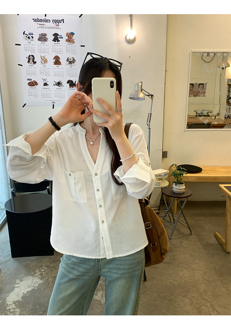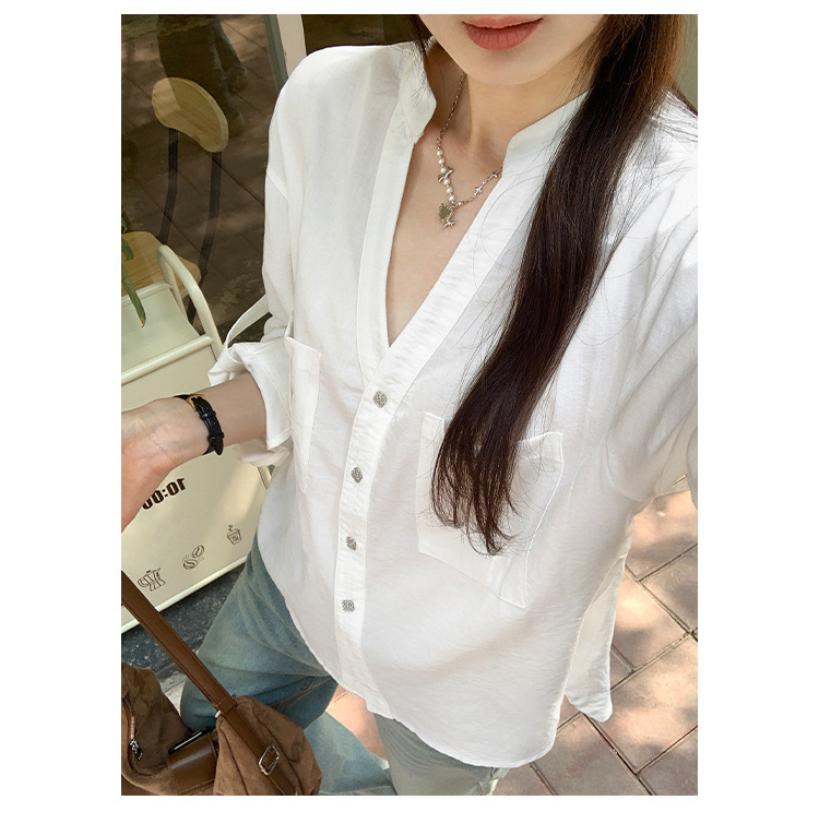 한국 스타일 슈퍼 반나운 V넥 느슨한 긴팔 셔츠 여성 2025 신식 독특한 디자인 센스 탑스토어 가기