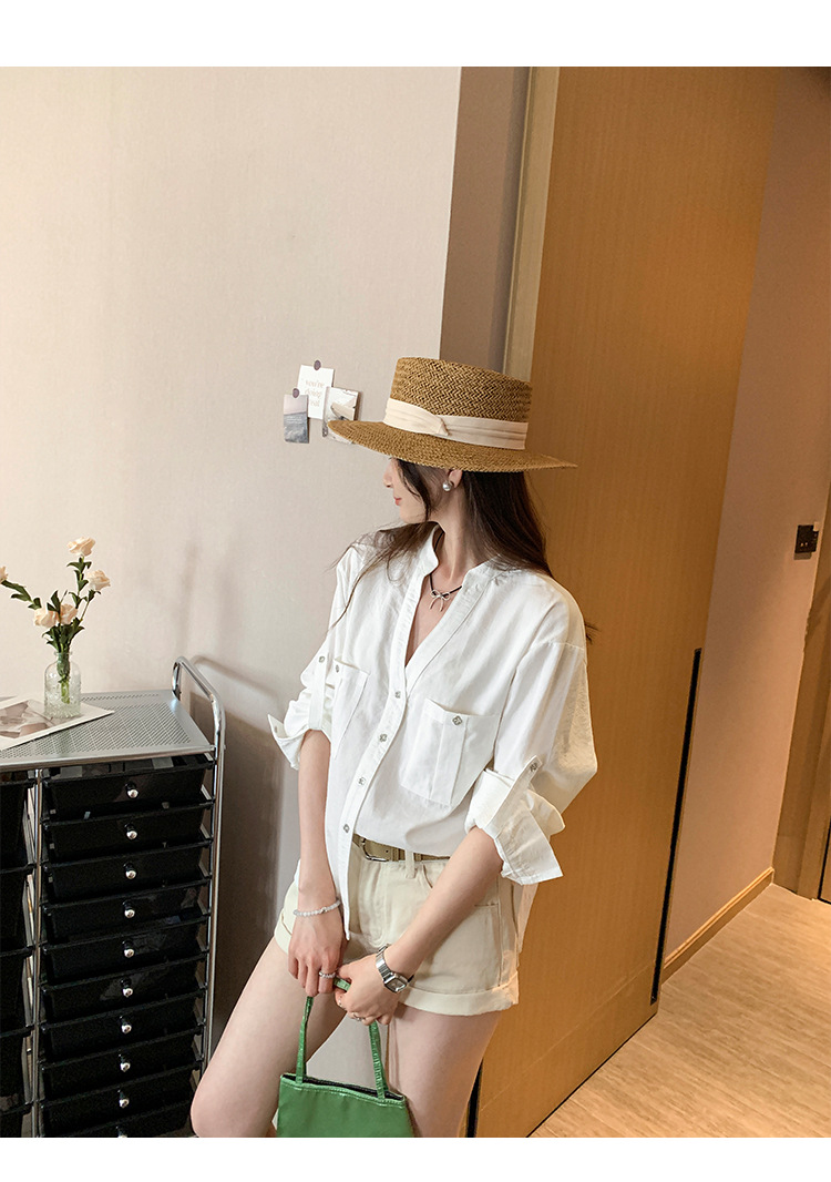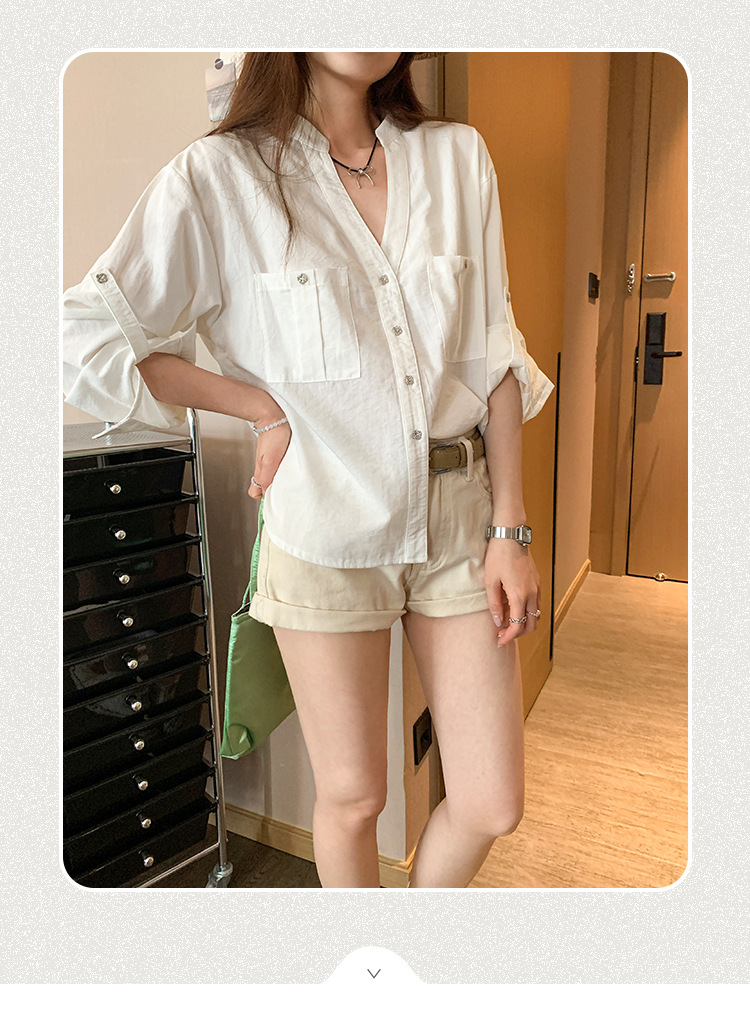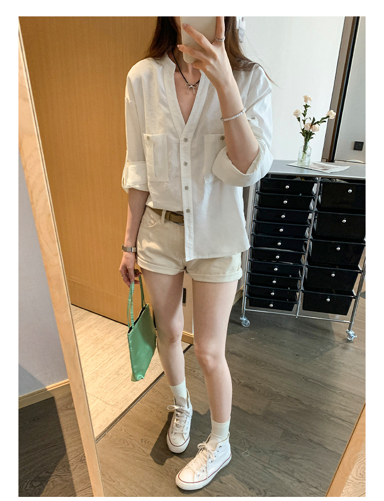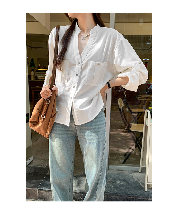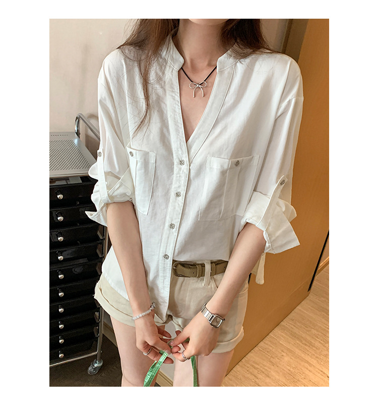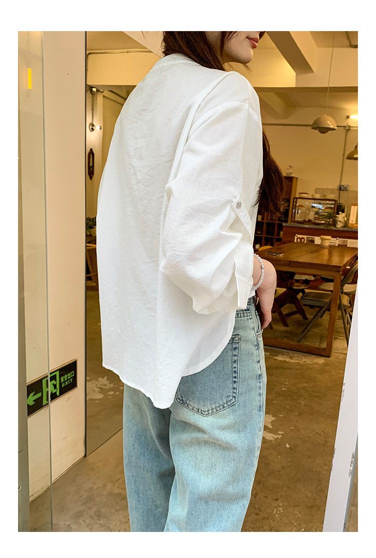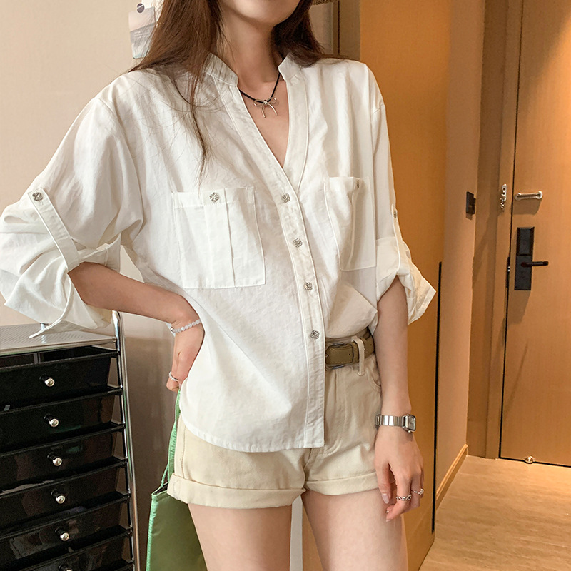 한국 스타일 슈퍼 반나운 V넥 느슨한 긴팔 셔츠 여성 2025 신식 독특한 디자인 센스 탑스토어 가기
