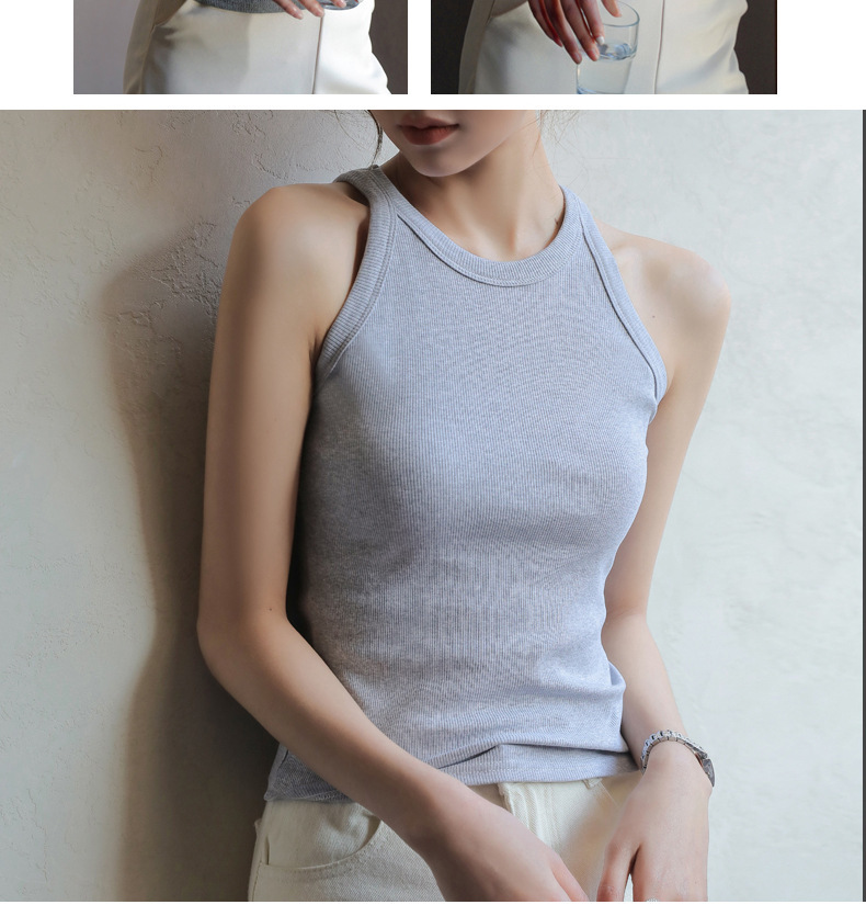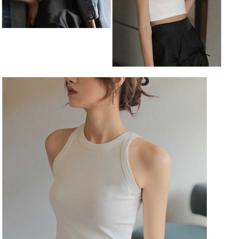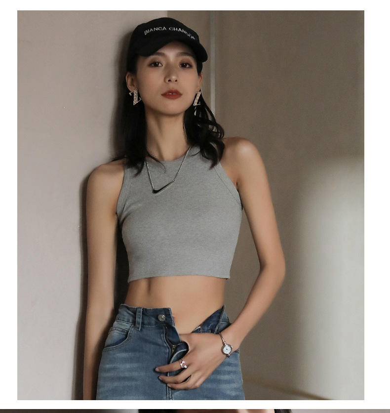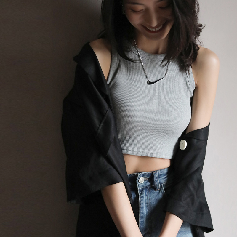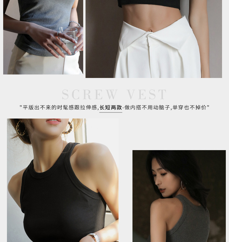봄 여름 핫걸 짧은 멜빵 홀터넥 조끼 여성용 신상 아우터웨어 다용도 슬림핏 이너 레이어링 민소매 탑스토어 가기