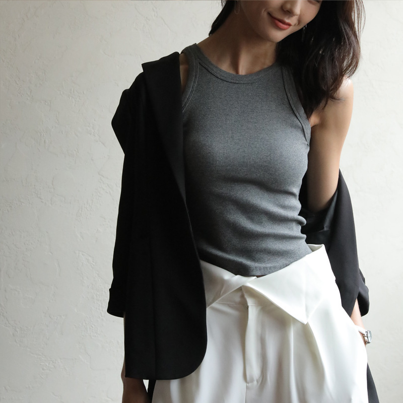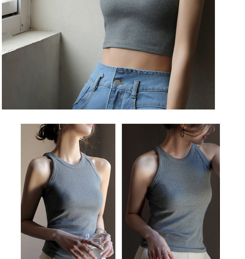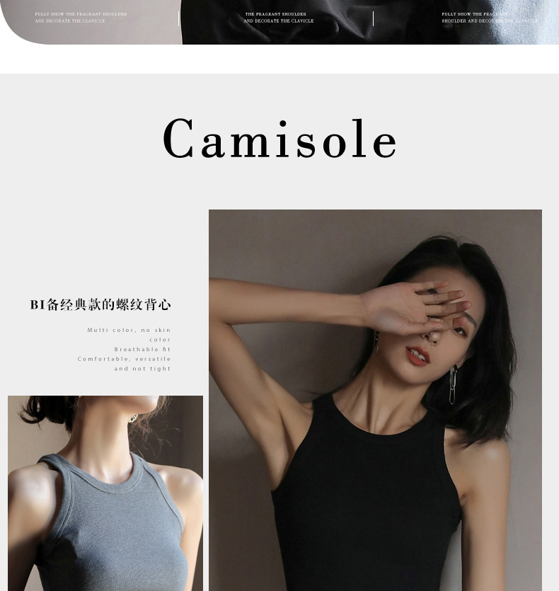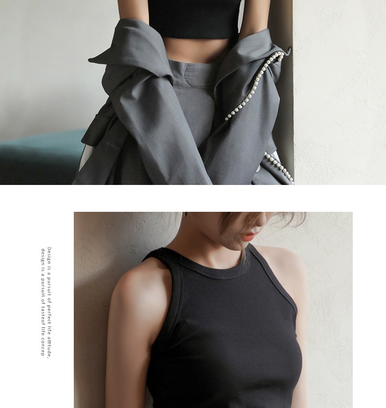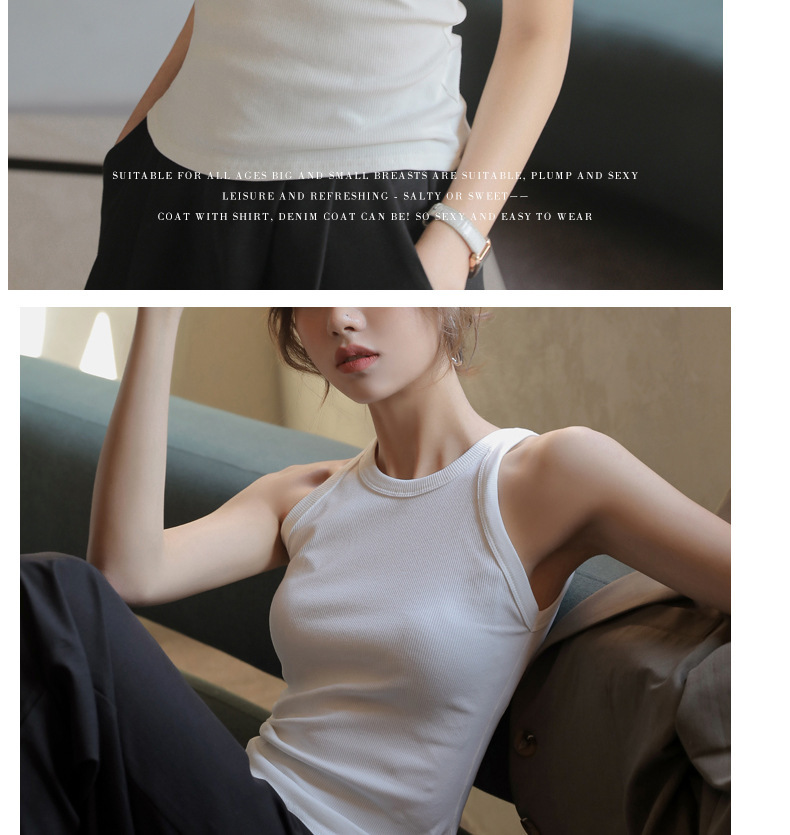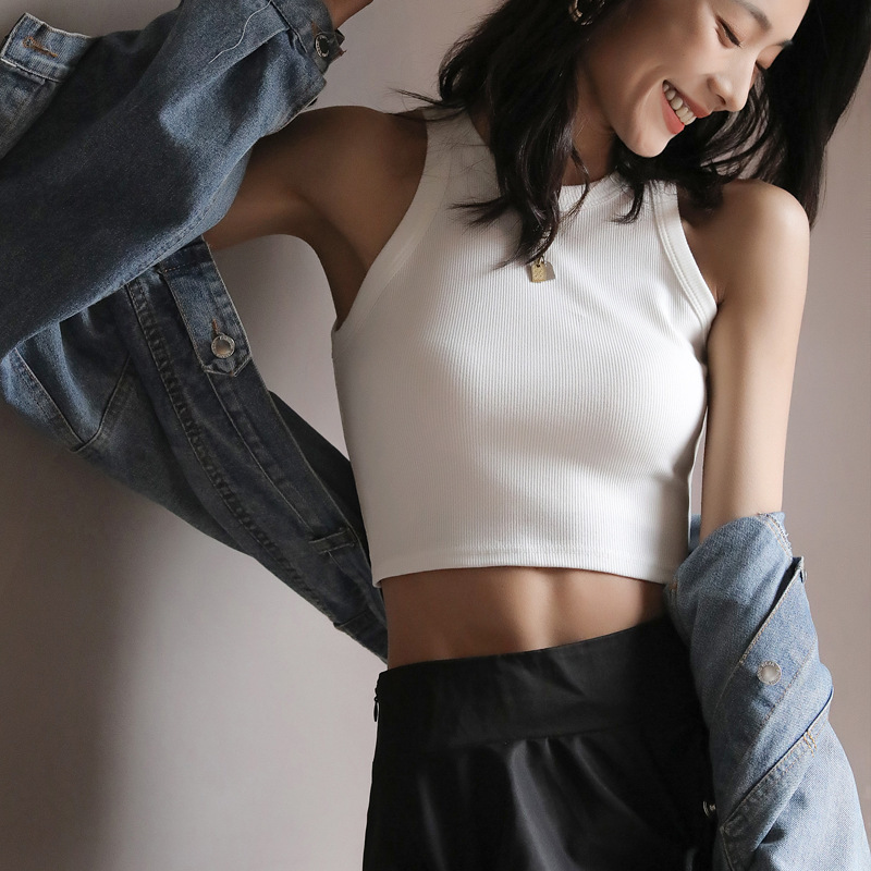 봄 여름 핫걸 짧은 멜빵 홀터넥 조끼 여성용 신상 아우터웨어 다용도 슬림핏 이너 레이어링 민소매 탑스토어 가기