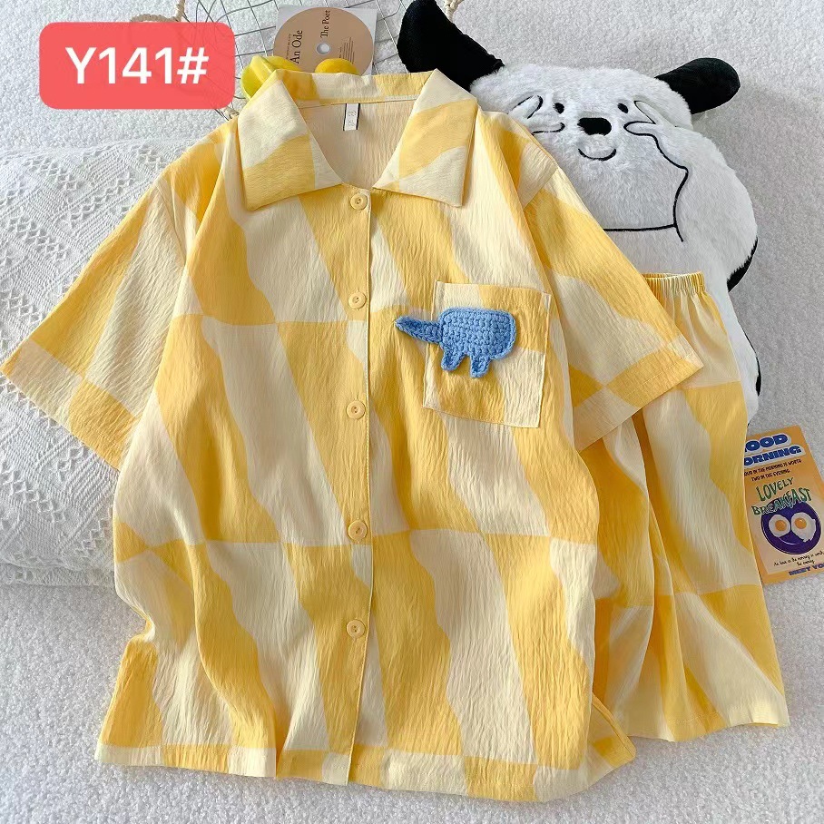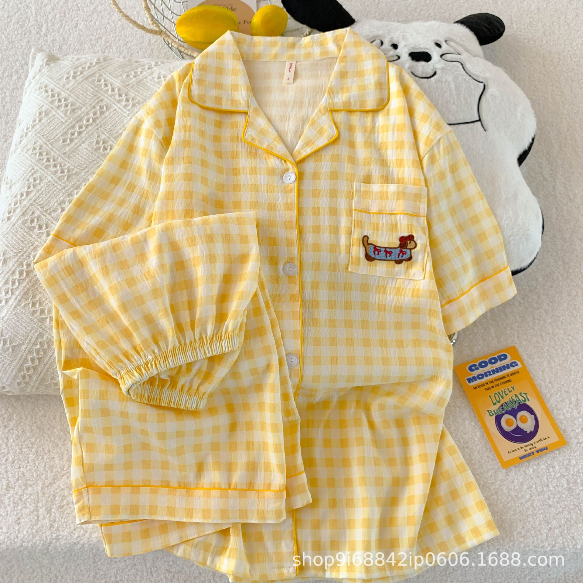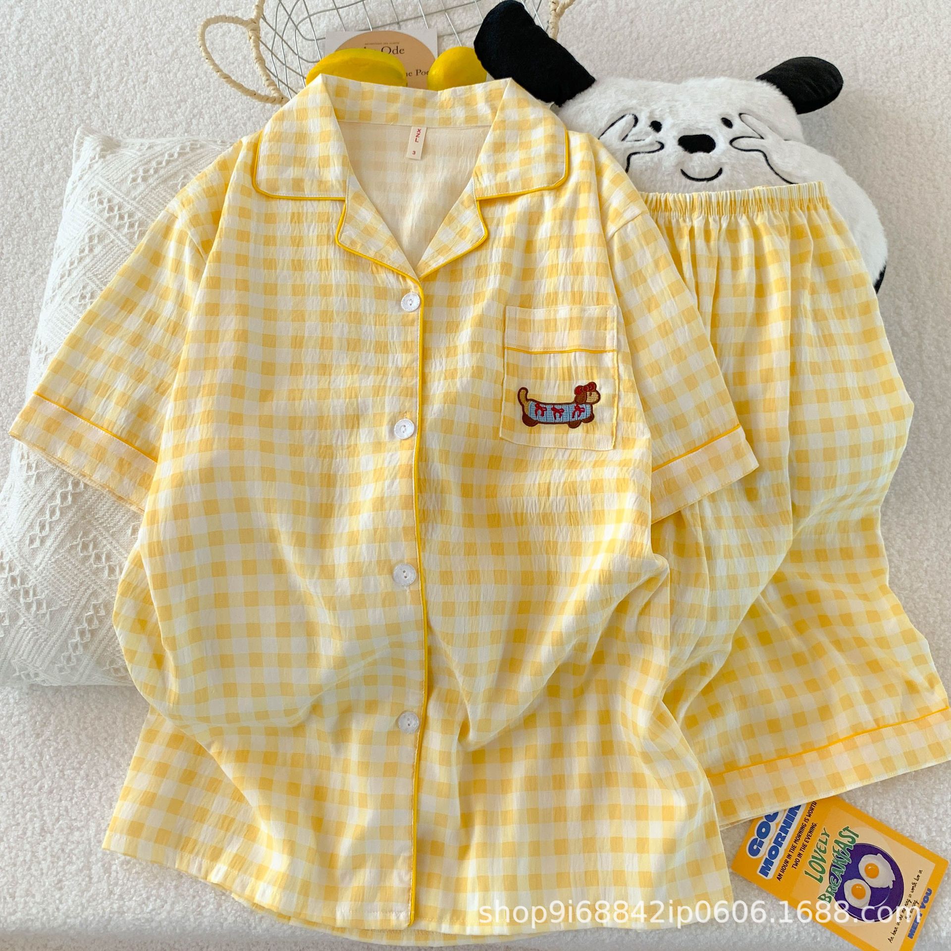 • YJ-반팔반바지 옐로우 체크무늬 강아지#
