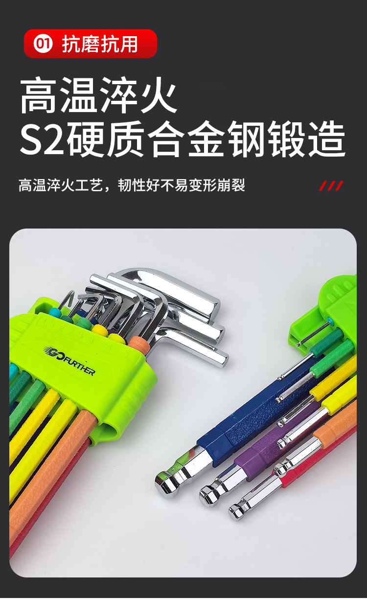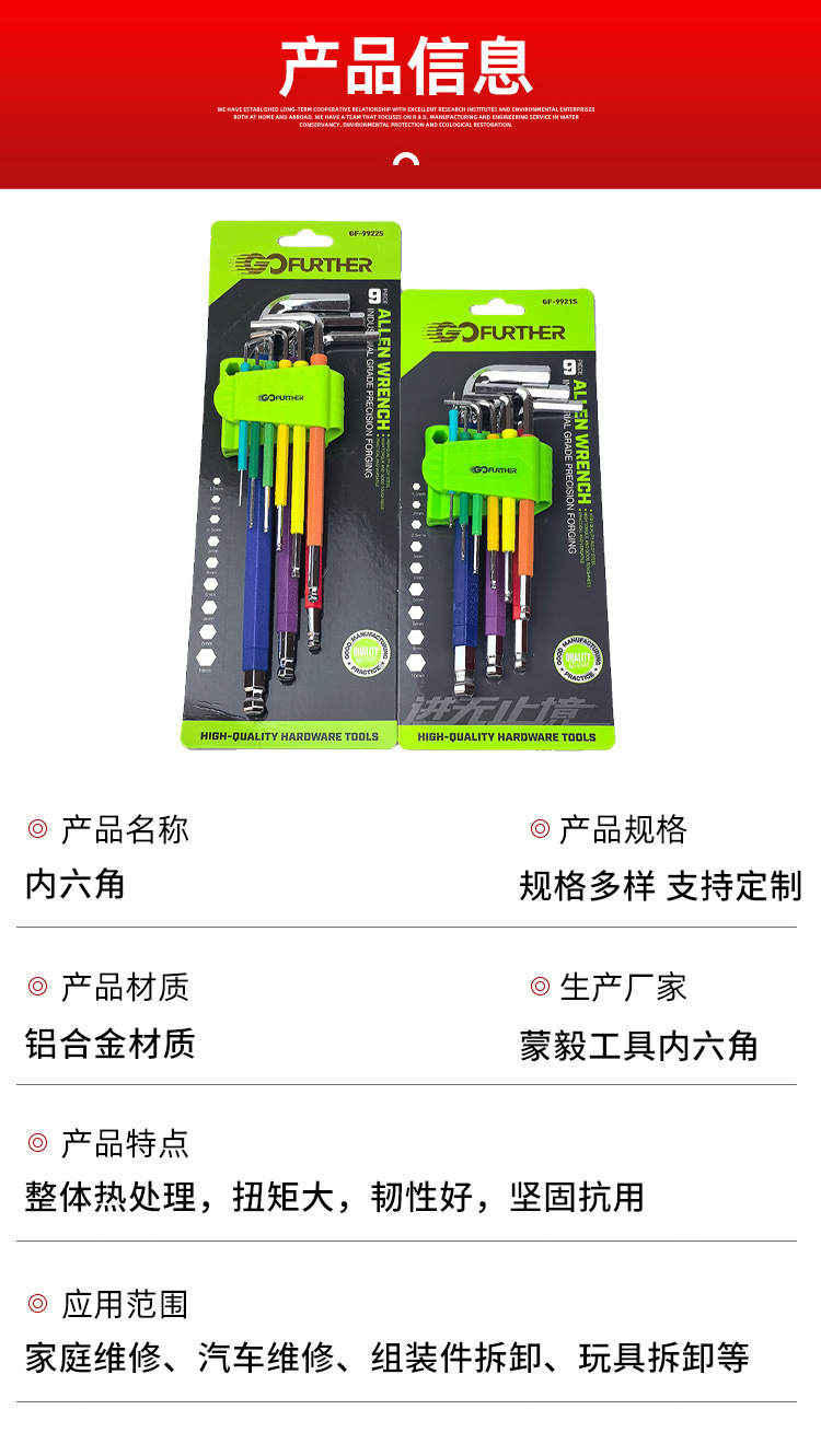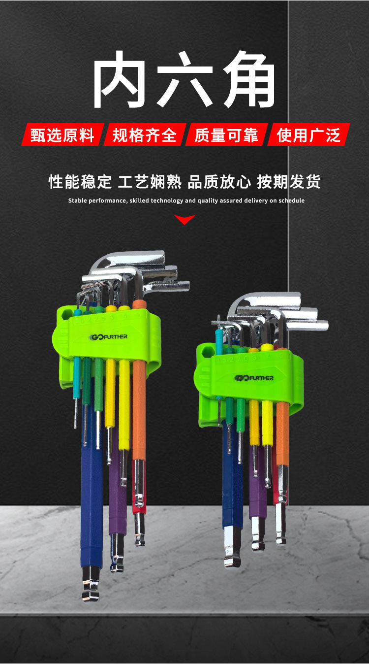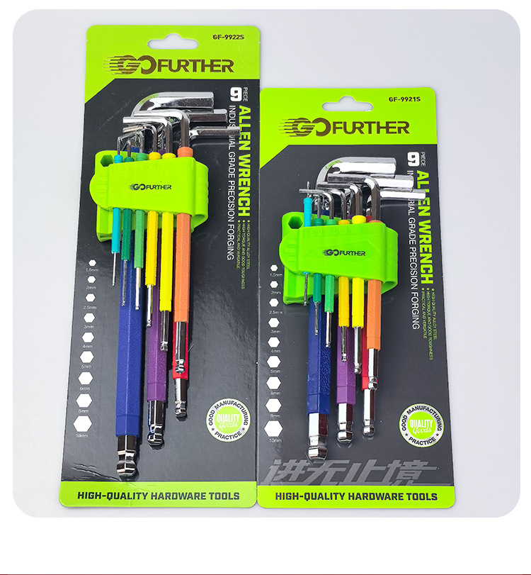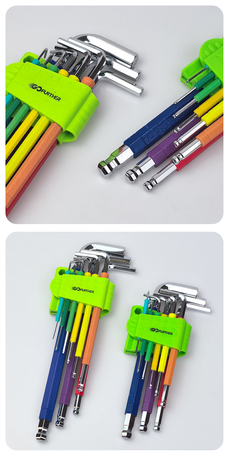 국경 간 인기 판매 모델 컬러 L자형 볼 헤드 육각 나사 렌치 9피스 세트 육각 렌치스토어 가기