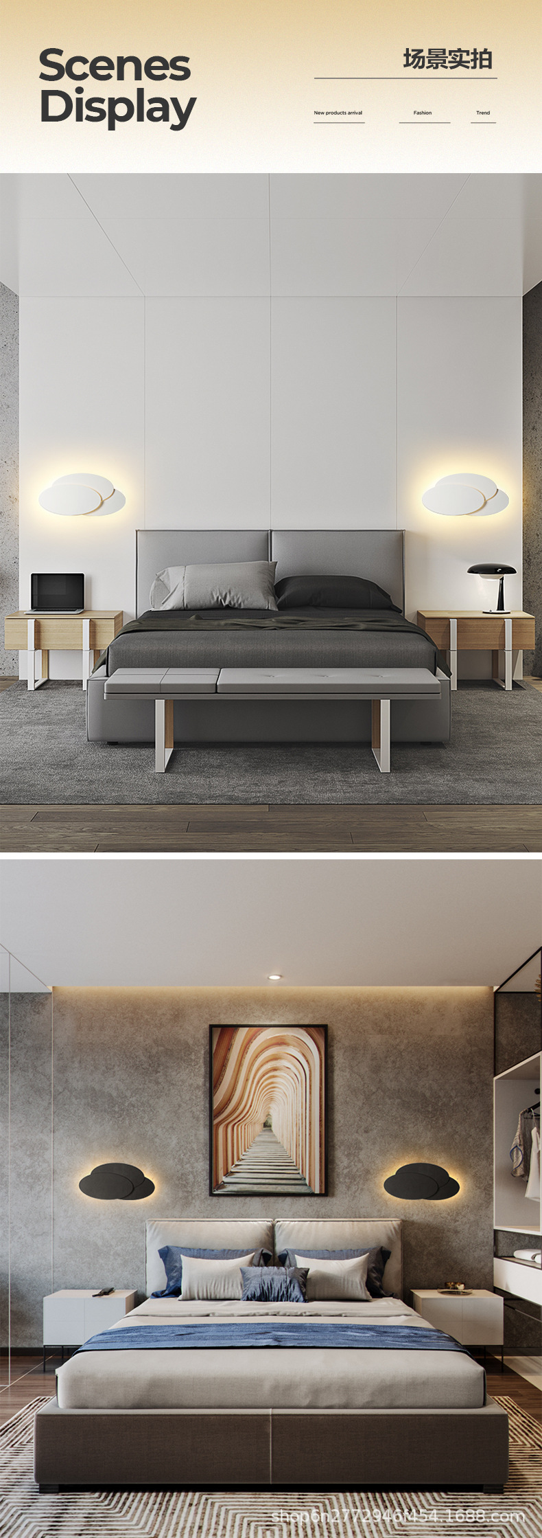 • 흰색 원형 오버레이 분위기 벽 램프