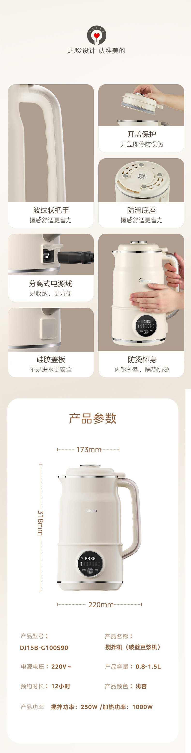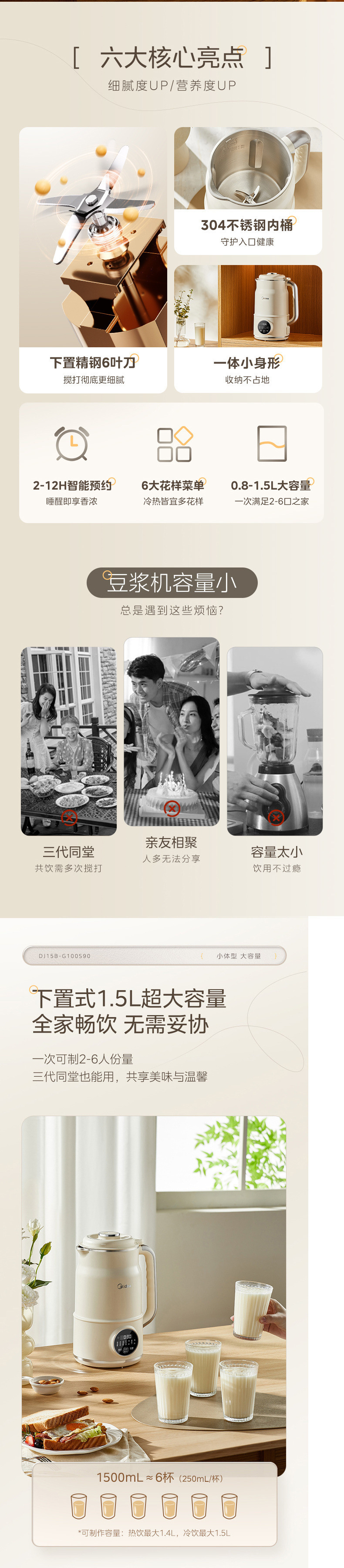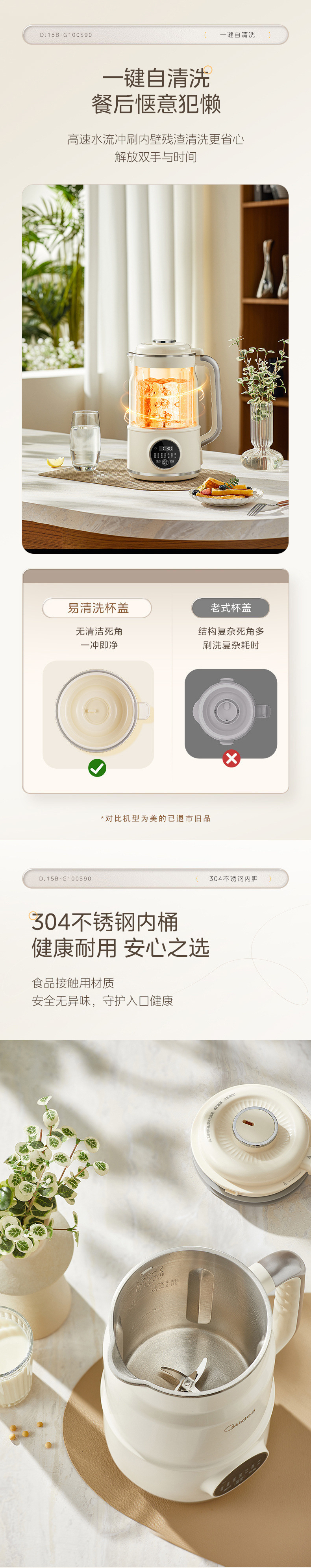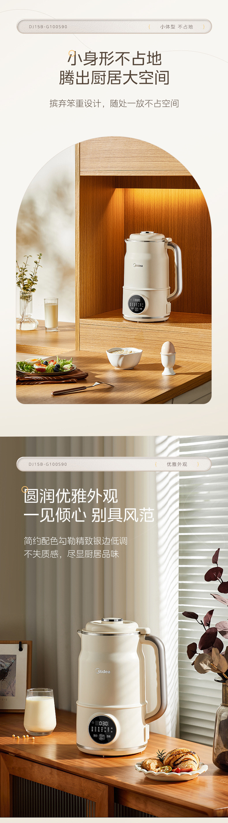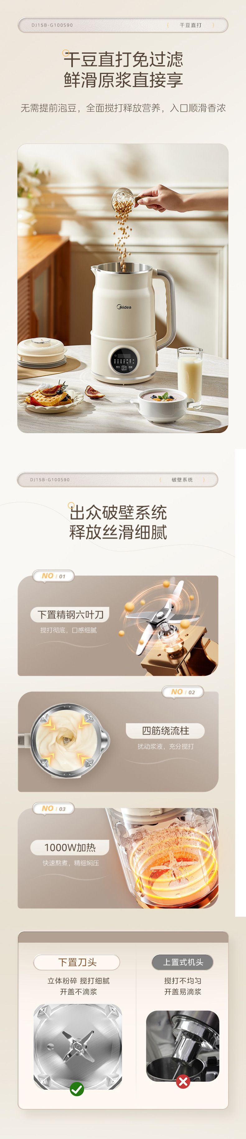Midea 두유 기계 가정용 완전 자동 소형 다기능 무조리 저음 대용량 DJ15B-G100S90