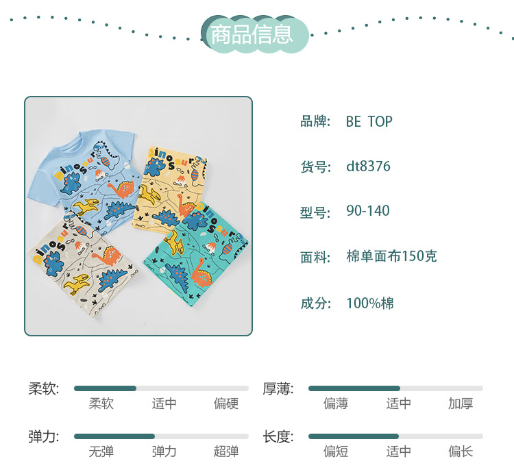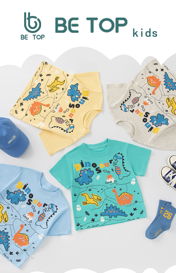 Betop 국경 아동복 어린이 한국 만화 아기 공룡 짧은 소매 티셔츠 소년 여름 둥근 목 머리카락 세대