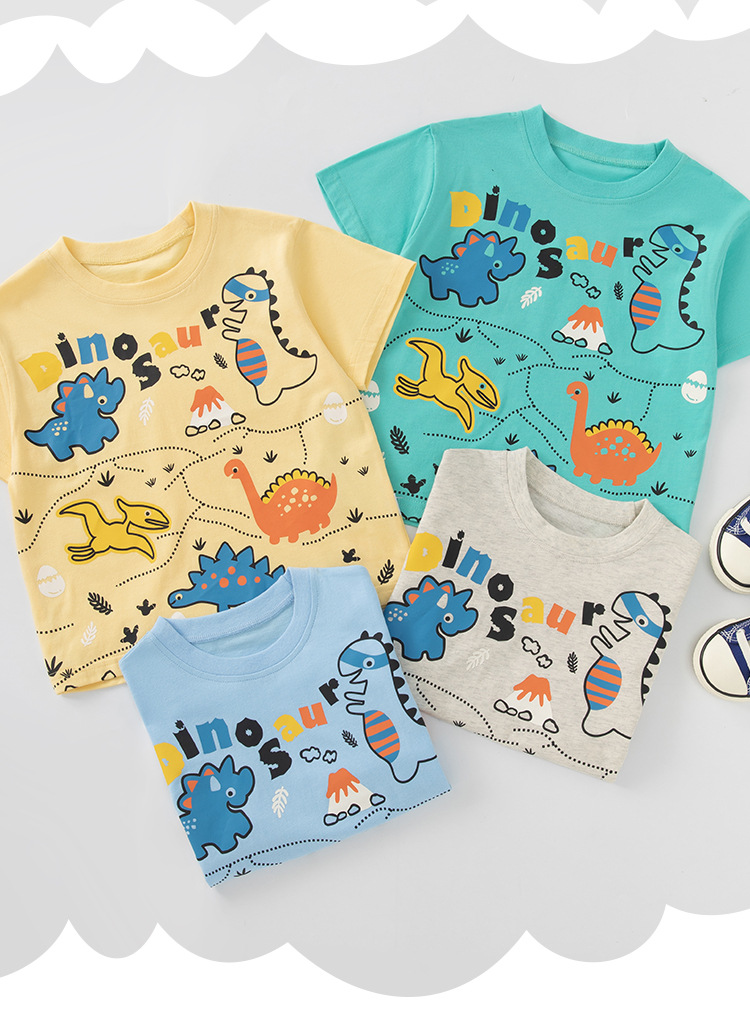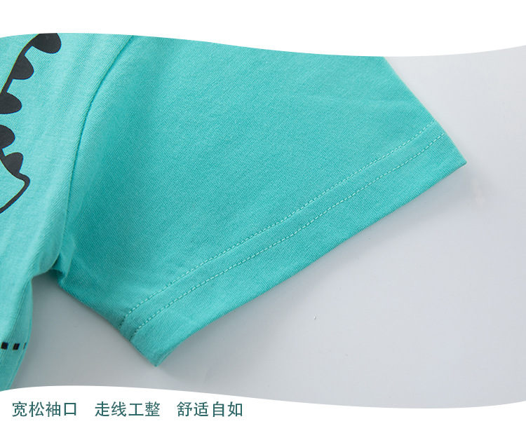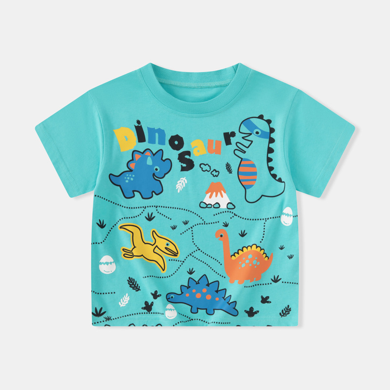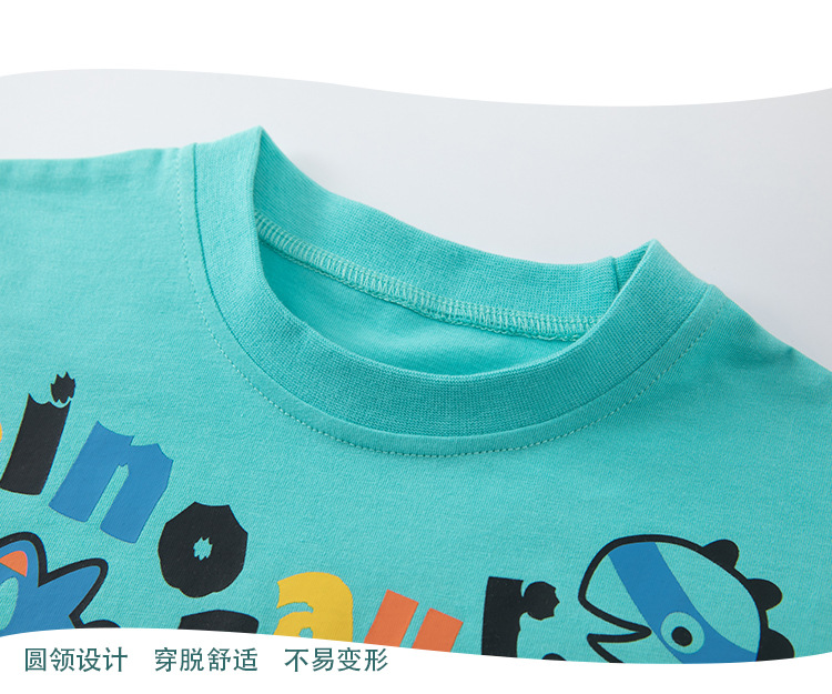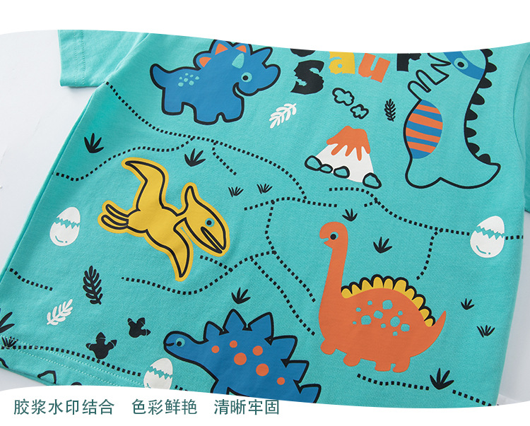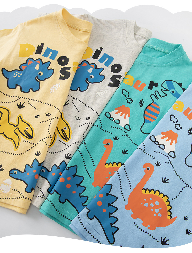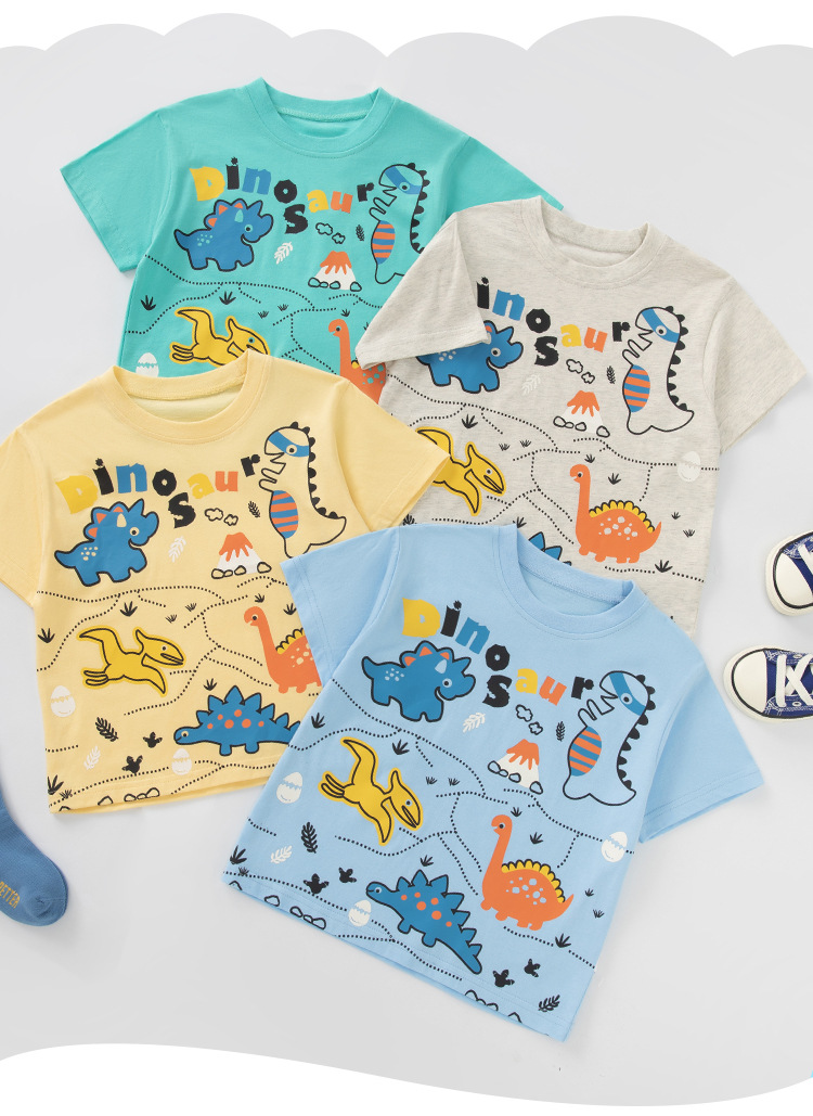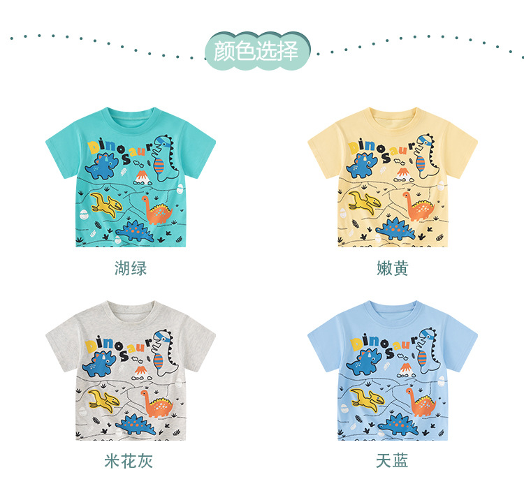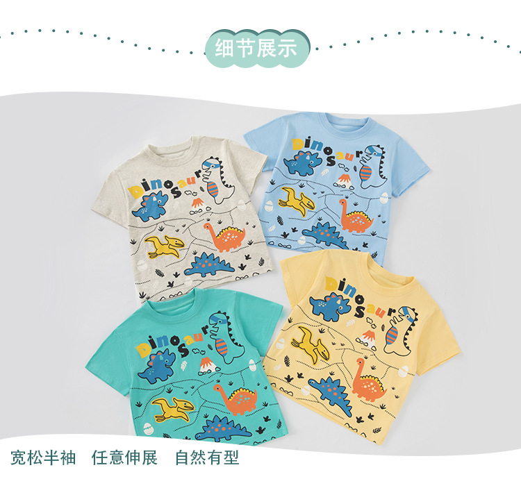 Betop 국경 아동복 어린이 한국 만화 아기 공룡 짧은 소매 티셔츠 소년 여름 둥근 목 머리카락 세대스토어 가기